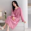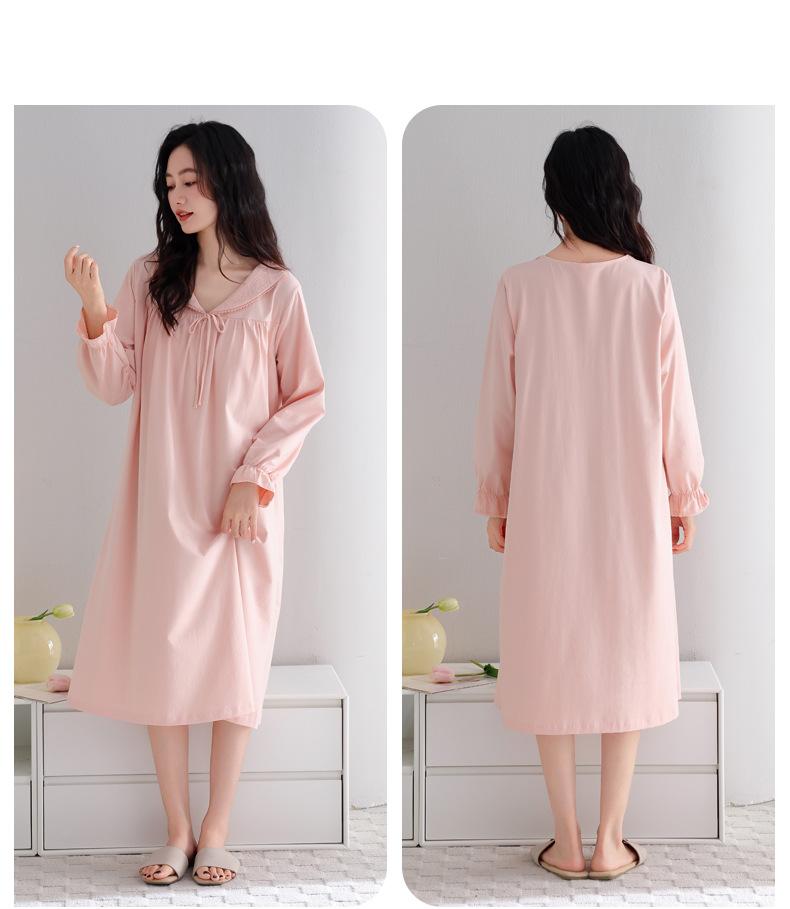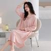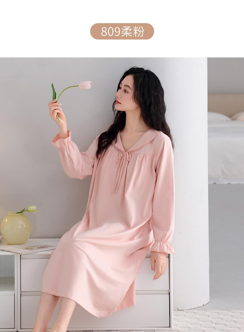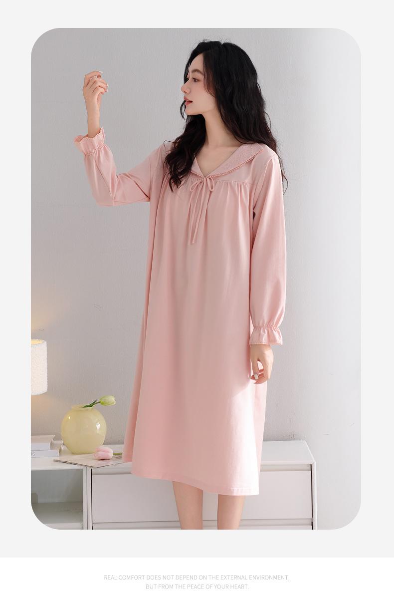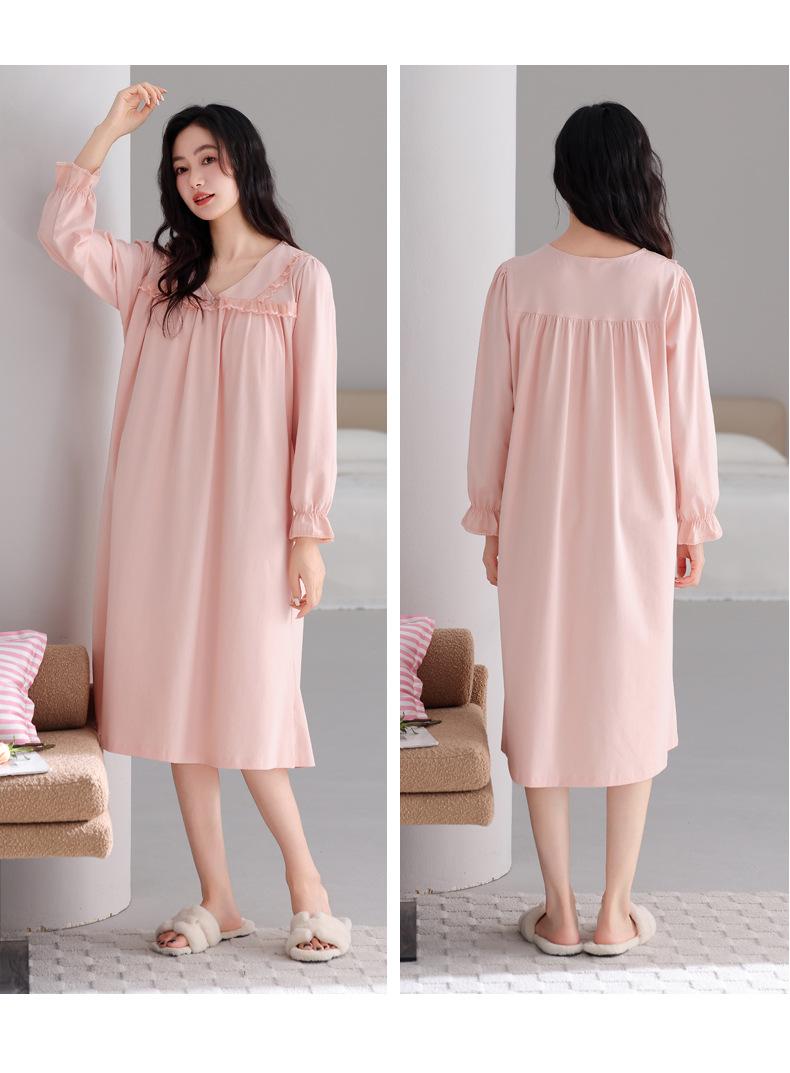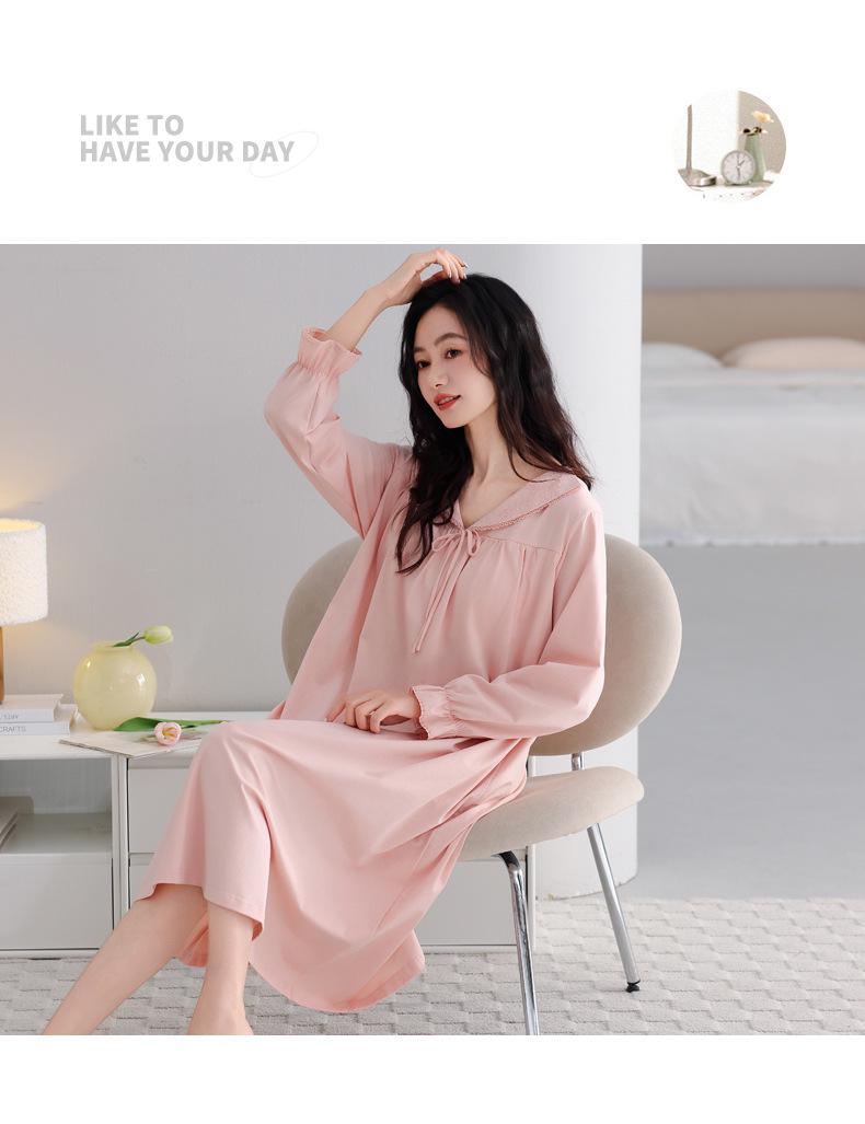 Pijama de Primavera y Otoño para Mujer Algodón Puro Manga Larga Otoño con Almohadilla en el Pecho 2025 Nuevo Casual Largo Medio Ropa para el Hogar