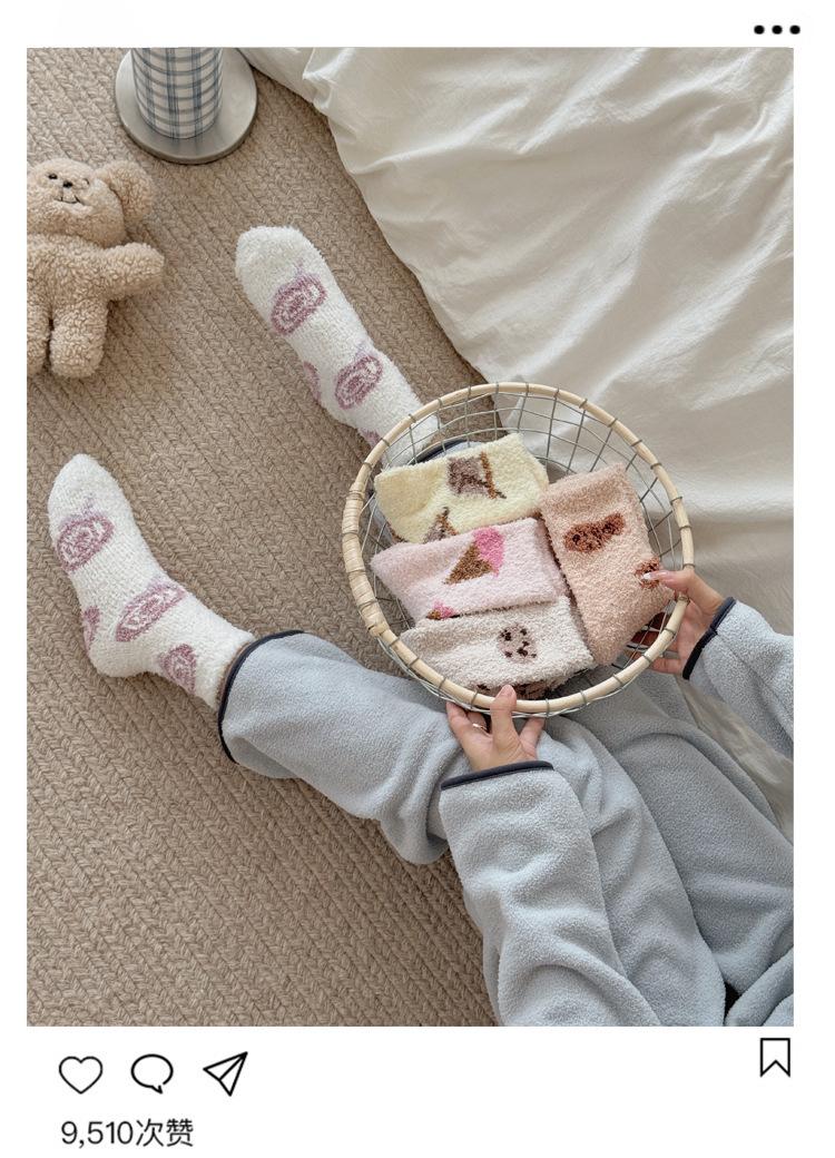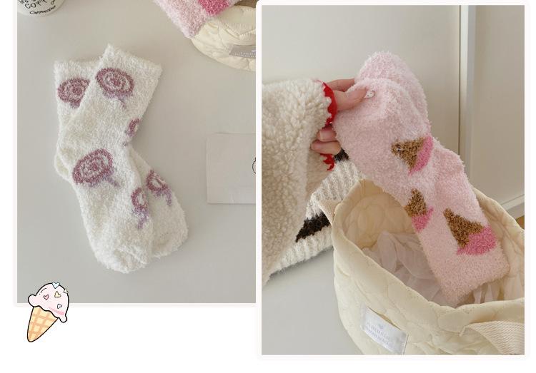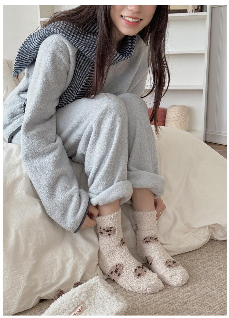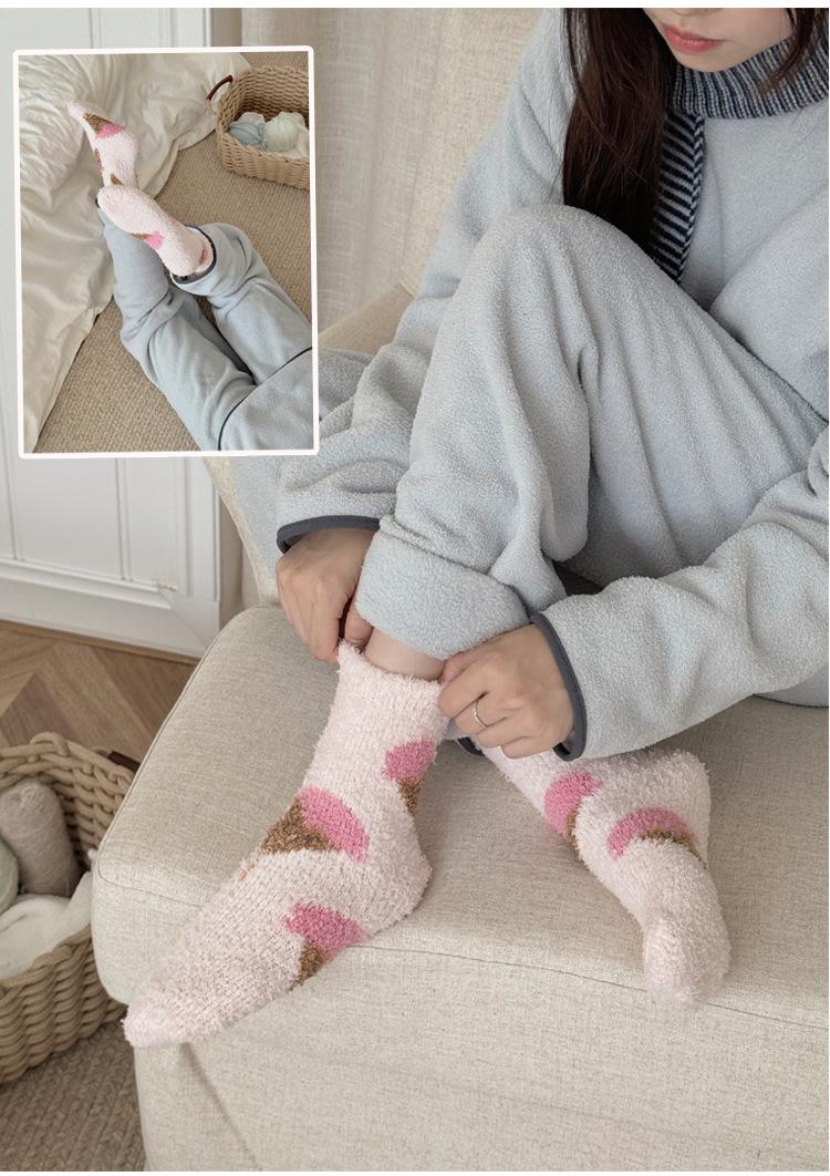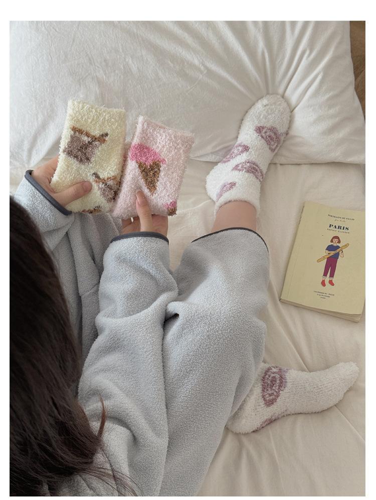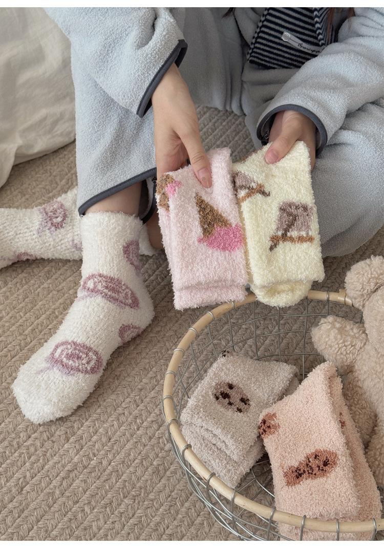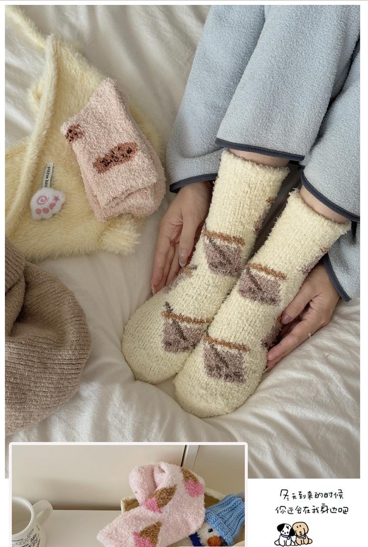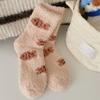 Calcetines de forro polar coral para mujer, lindos calcetines de tubo medio para mujer, otoño e invierno engrosados más terciopelo, calcetines para dormir en casa, calcetines para piso, calcetines posparto