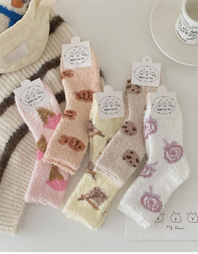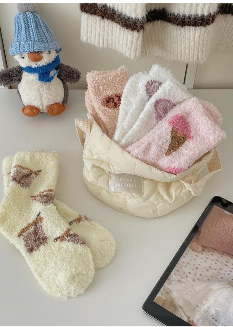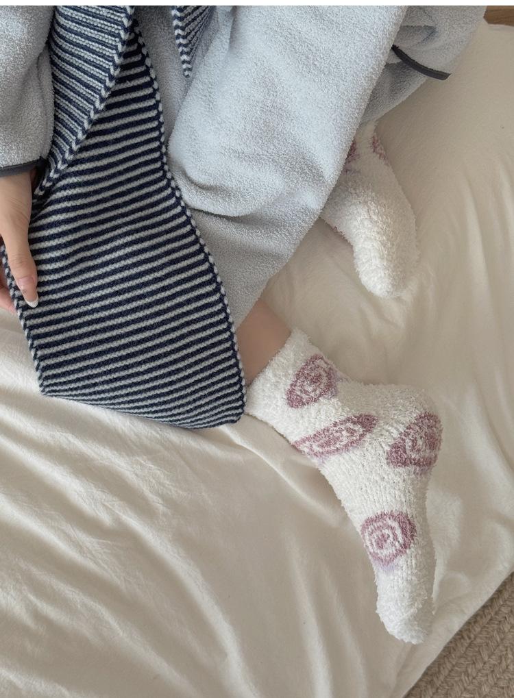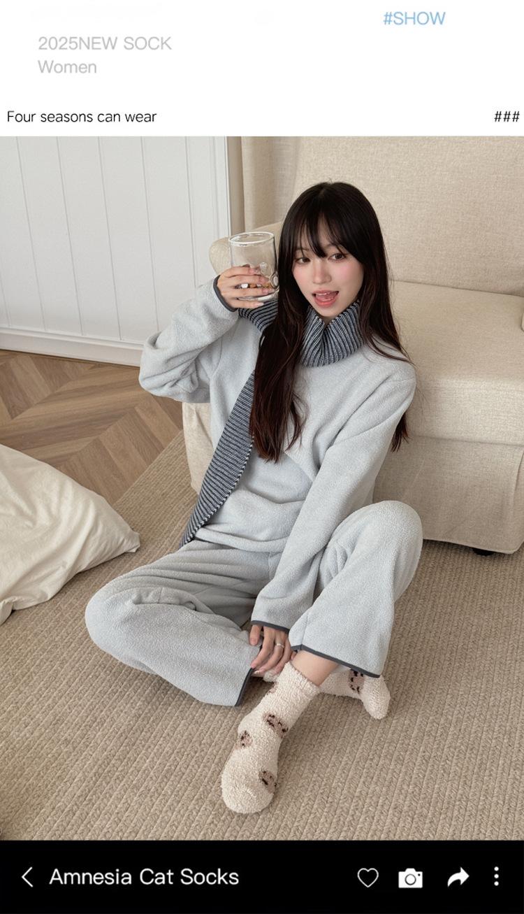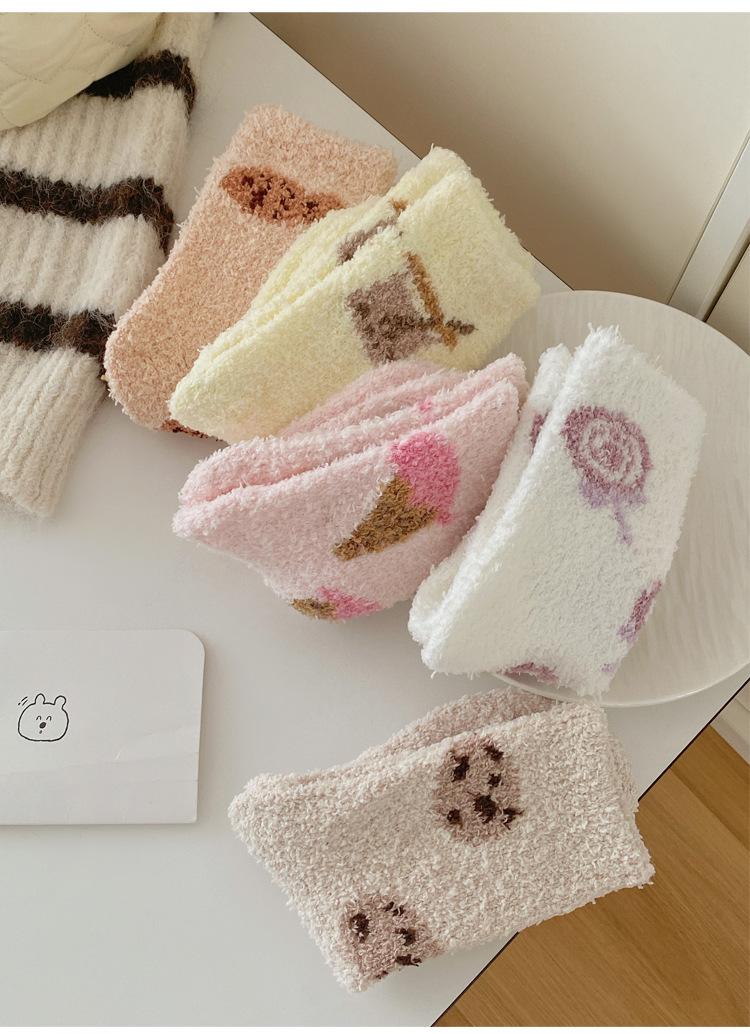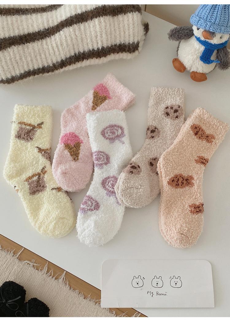Calcetines de forro polar coral para mujer, lindos calcetines de tubo medio para mujer, otoño e invierno engrosados más terciopelo, calcetines para dormir en casa, calcetines para piso, calcetines posparto