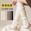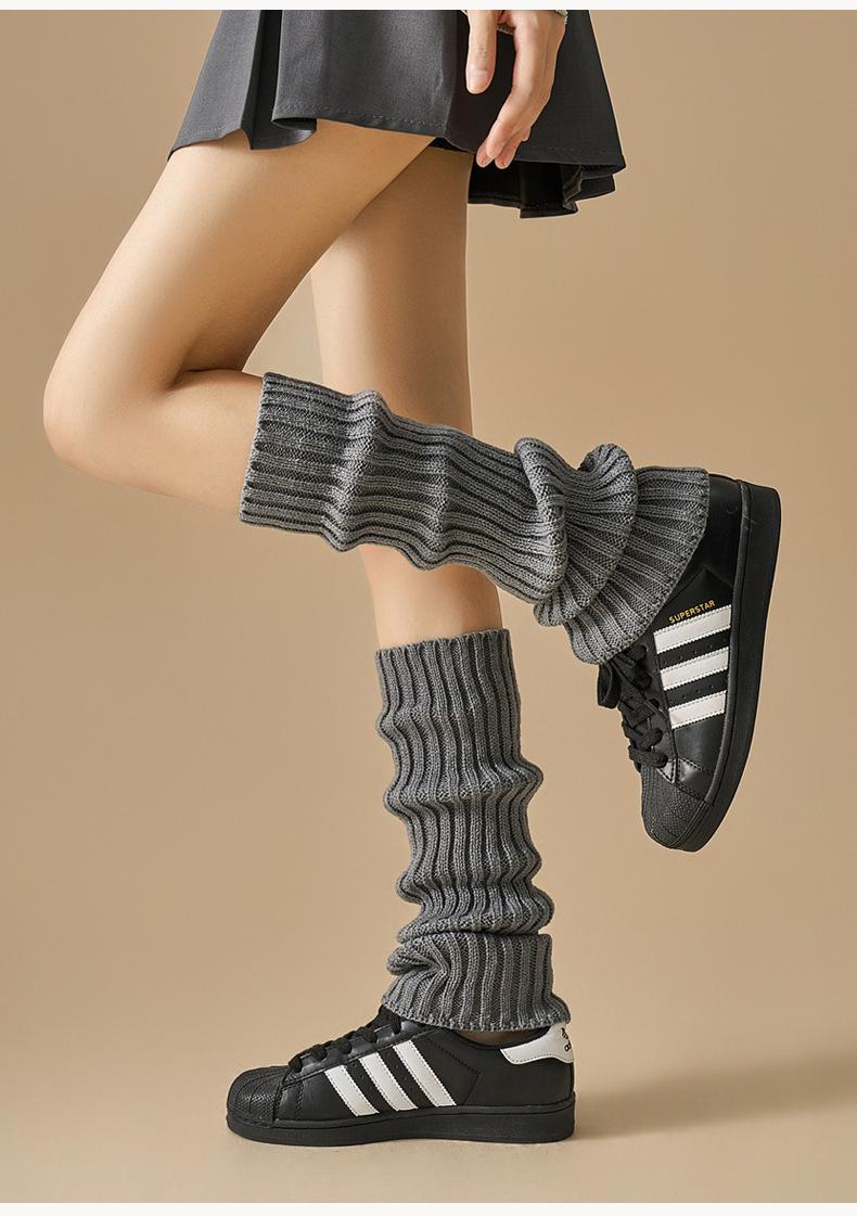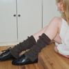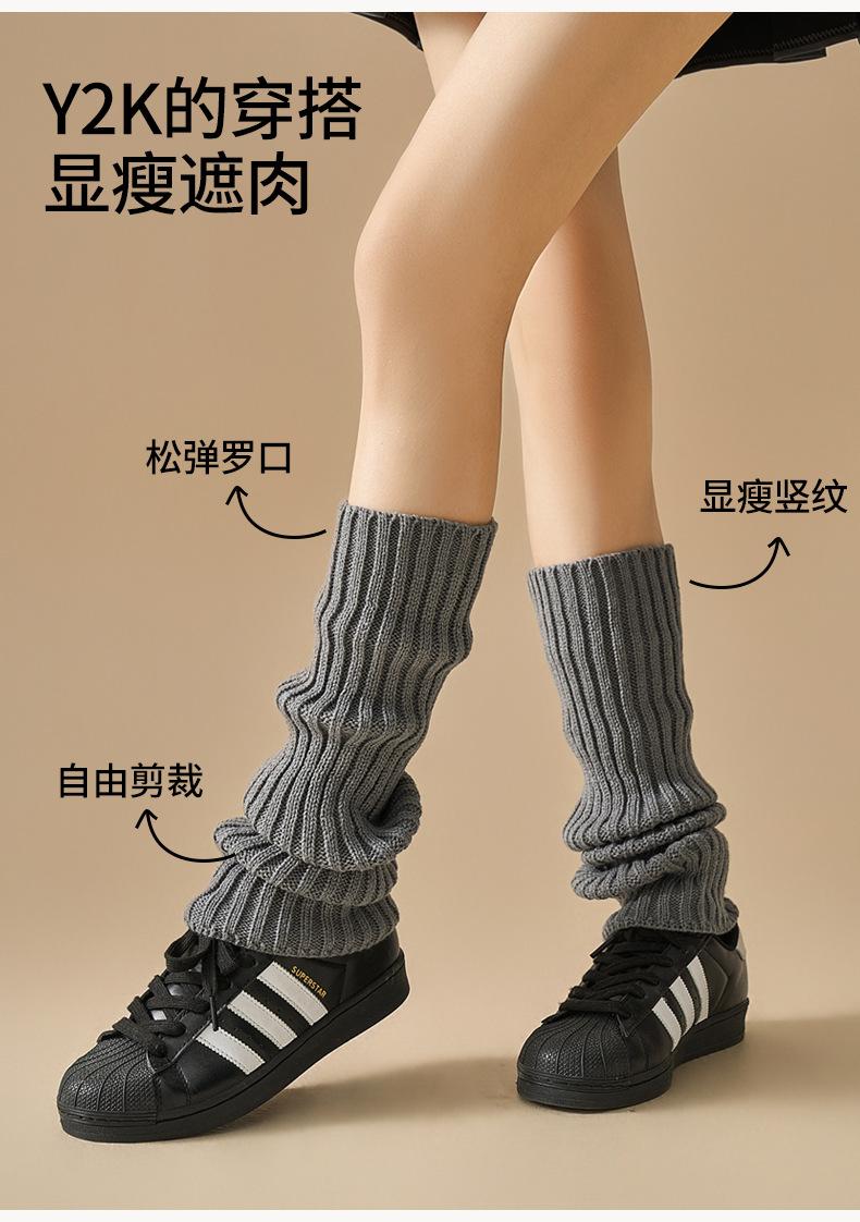 Calentadores de piernas caqui fruncidos para mujer, de rayas verticales, resistentes al desgaste, anti-pilling, tejidos, cálidos para otoño e invierno, calcetines de pantorrilla Y2K para chica hot