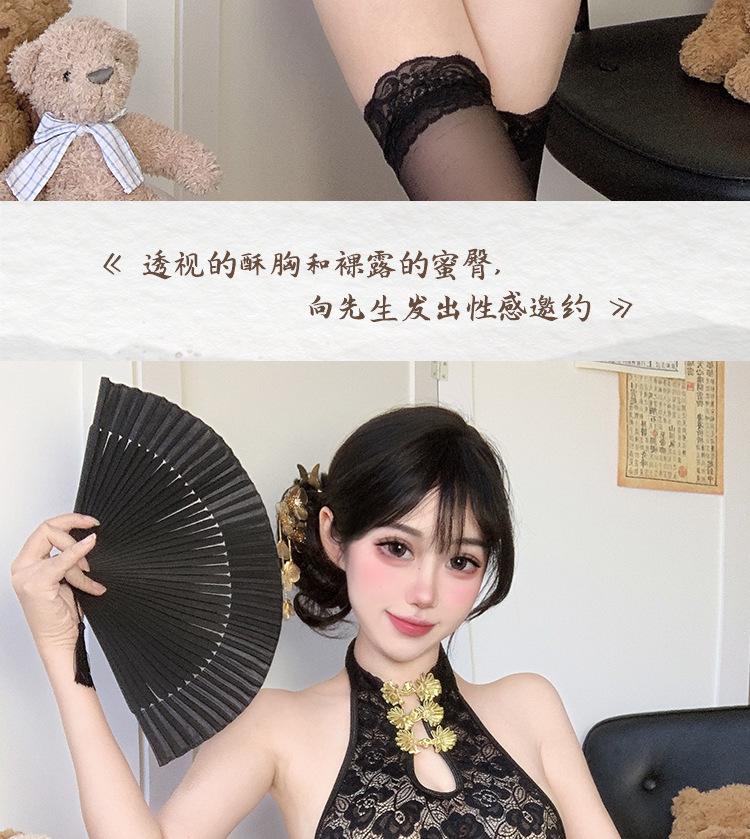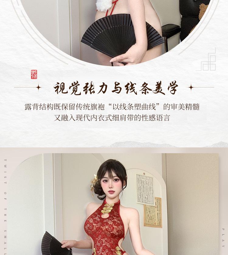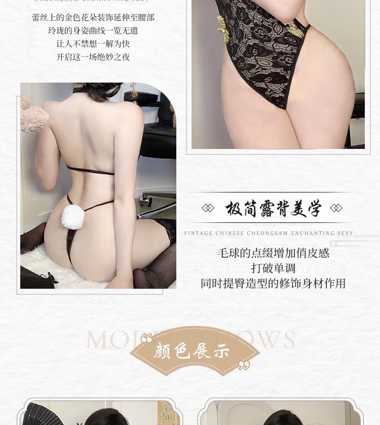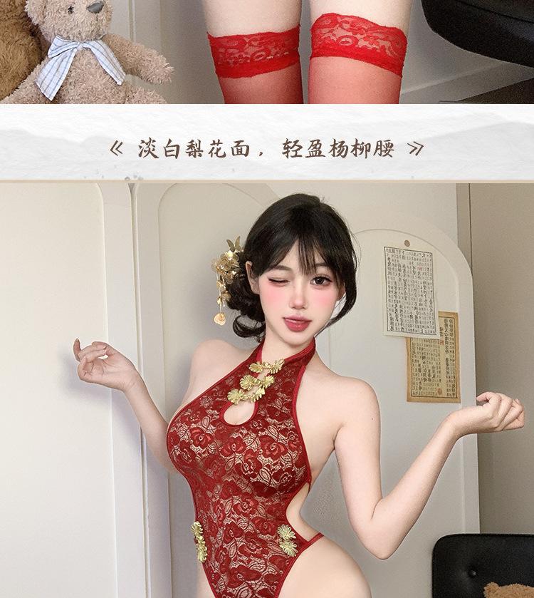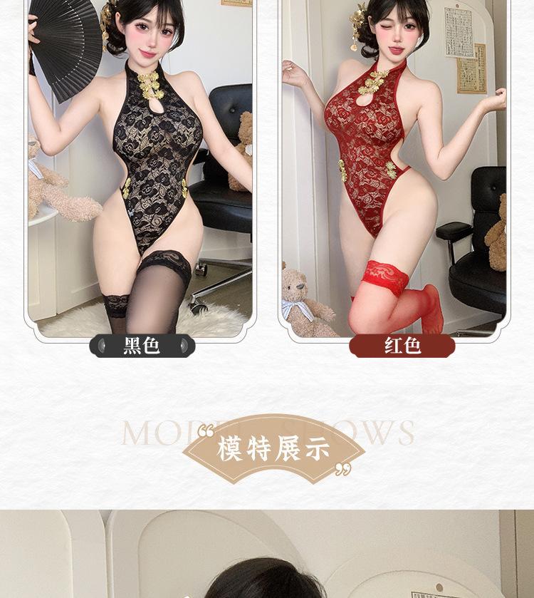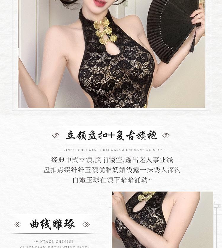 Lencería Sexy Encaje Calado Vintage Cheongsam Body Uniforme Tentación Transparente Remoción Libre Set Pasión 1329