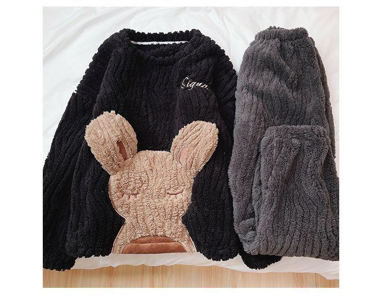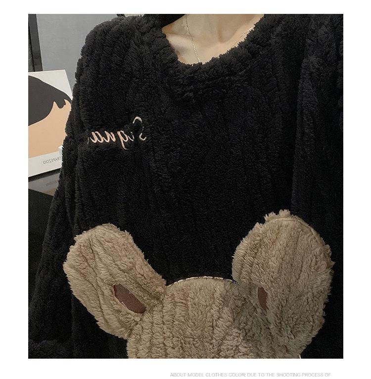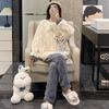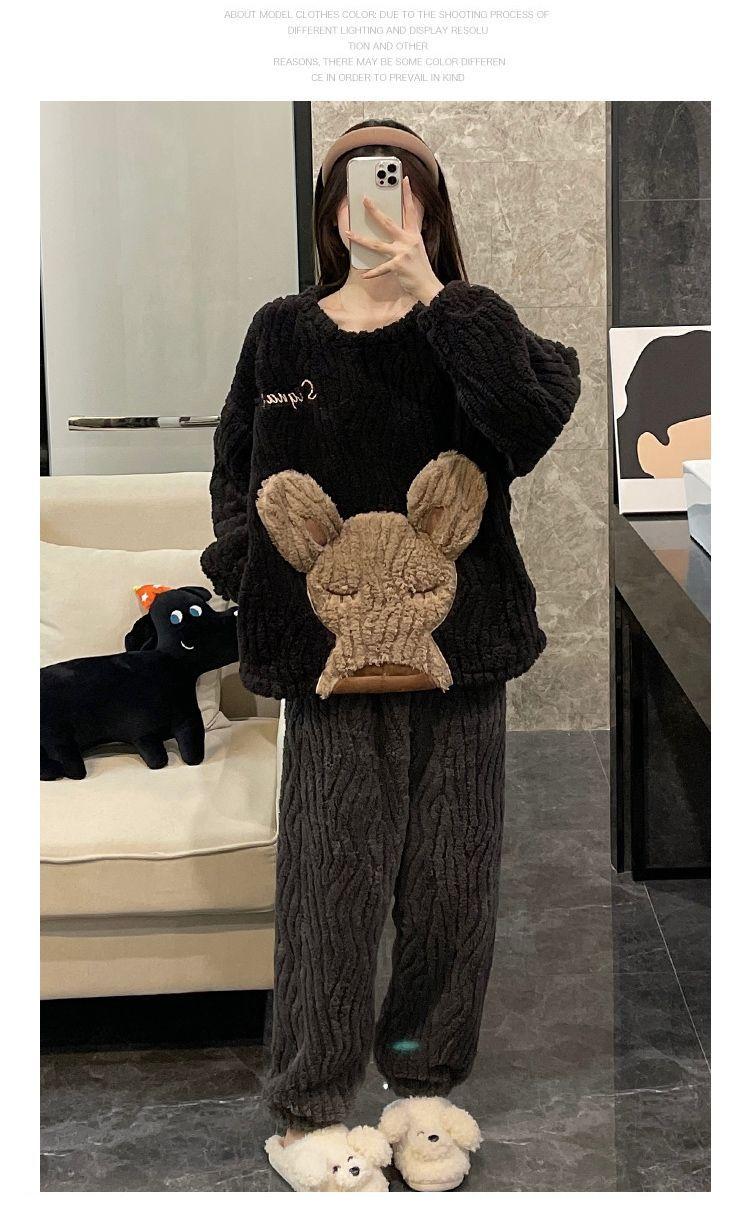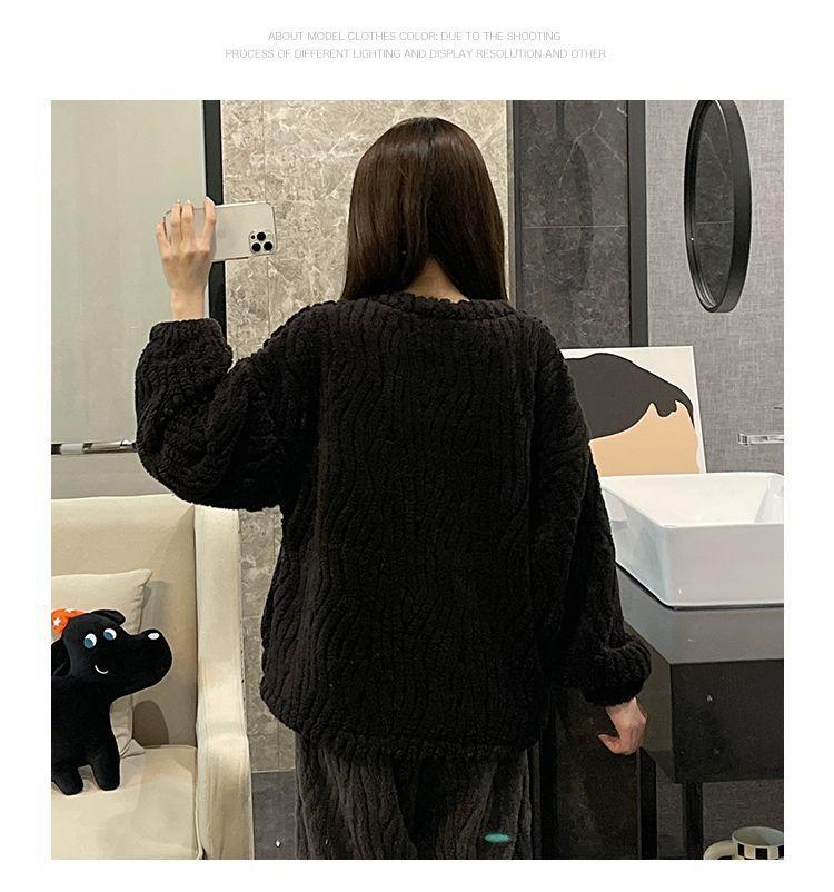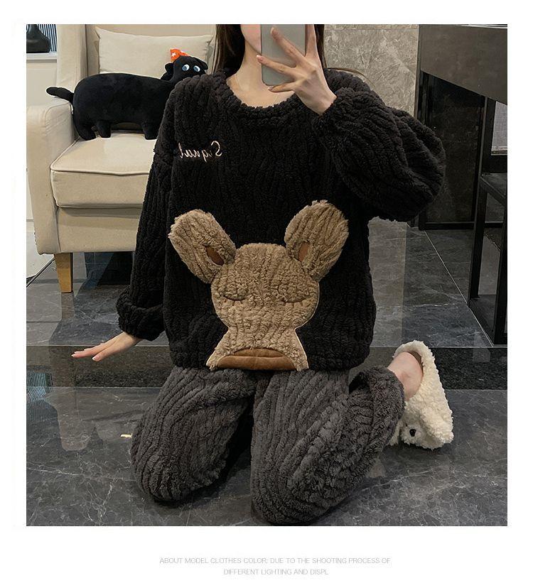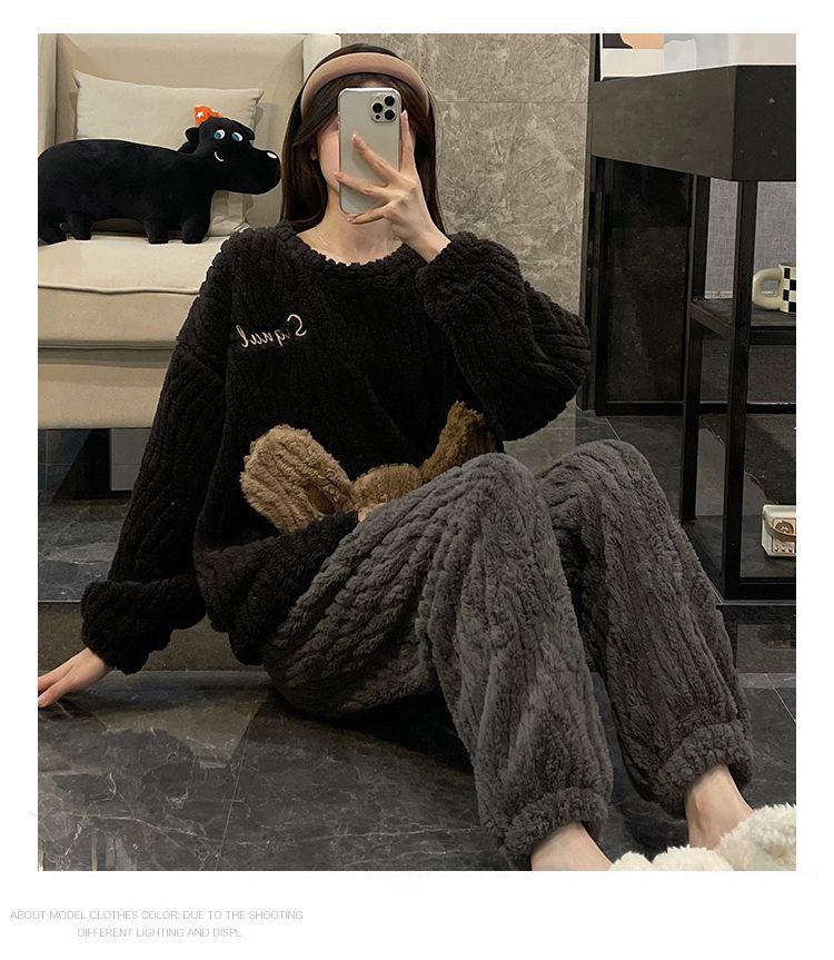 Pijama de forro polar de coral para mujer otoño e invierno nuevo estilo más terciopelo y engrosamiento se puede usar afuera para mantener caliente franela invierno traje de ropa para el hogar
