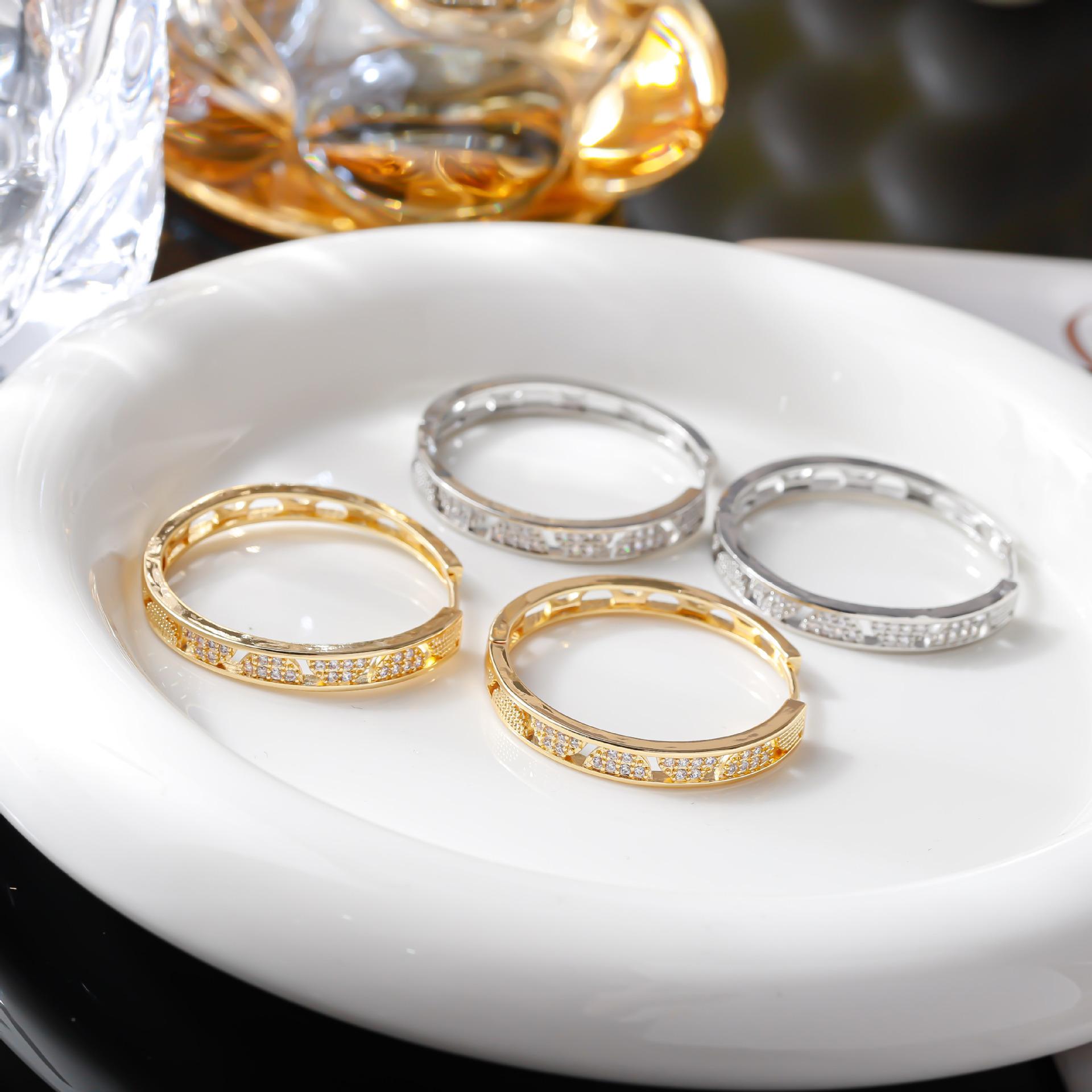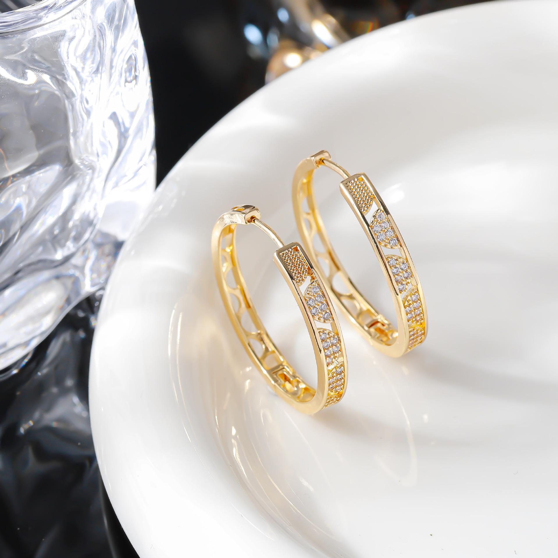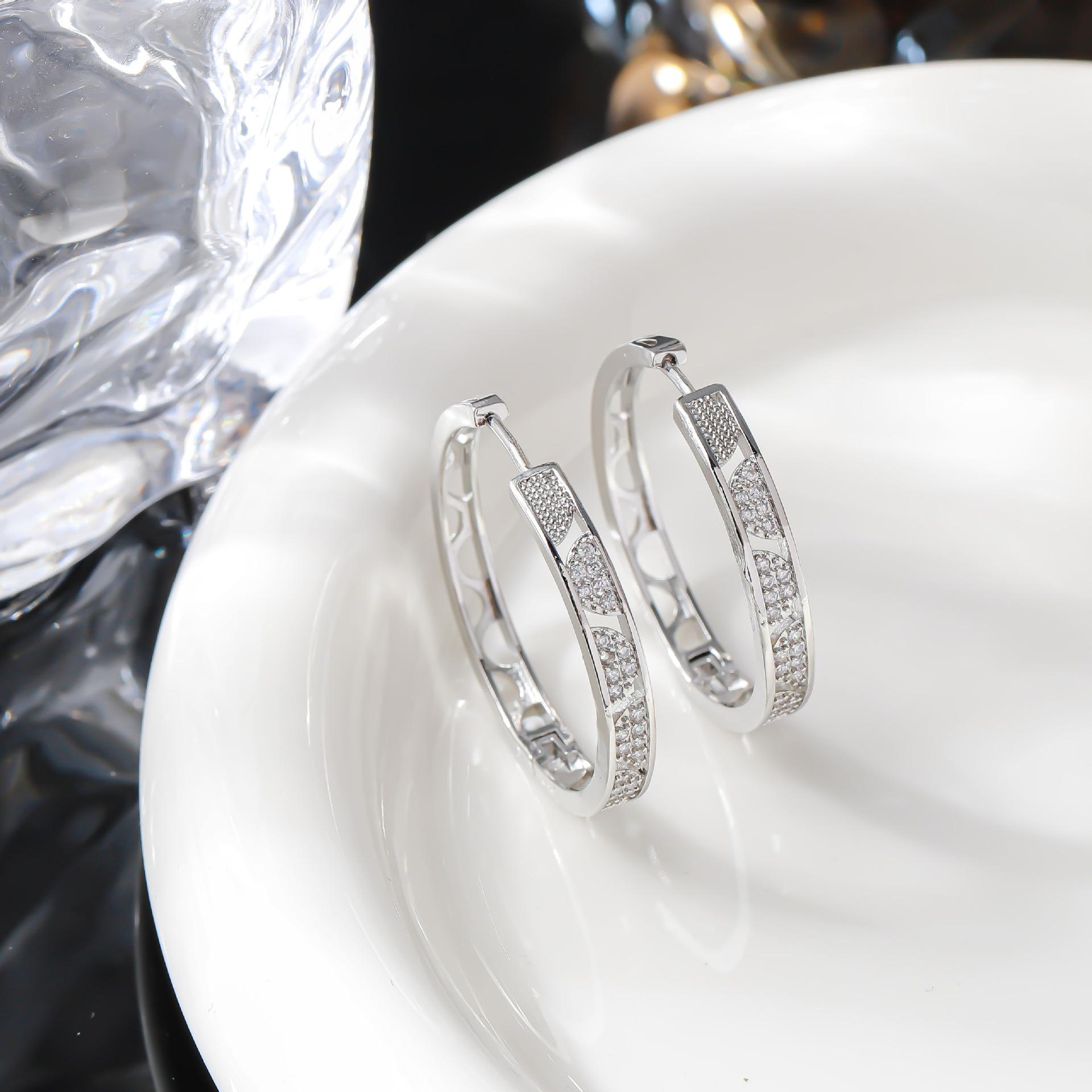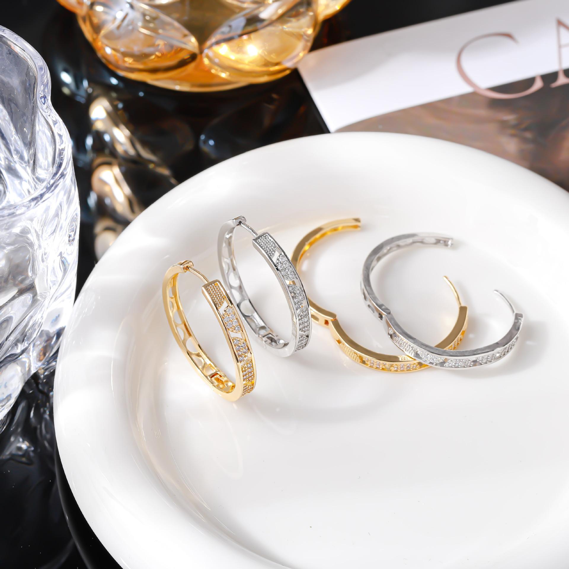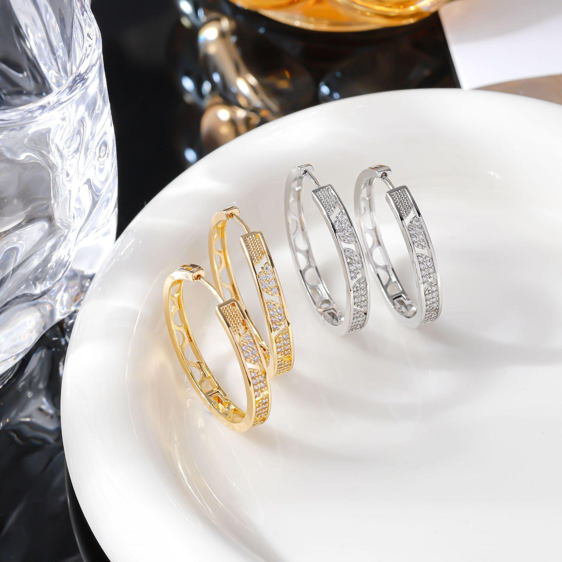 Aretes de Diamantes Completos Semirculares Calados Estilo Nuevo Ins 2024 Aretes de Moda Elegantes y Sofisticados de Alta Gama