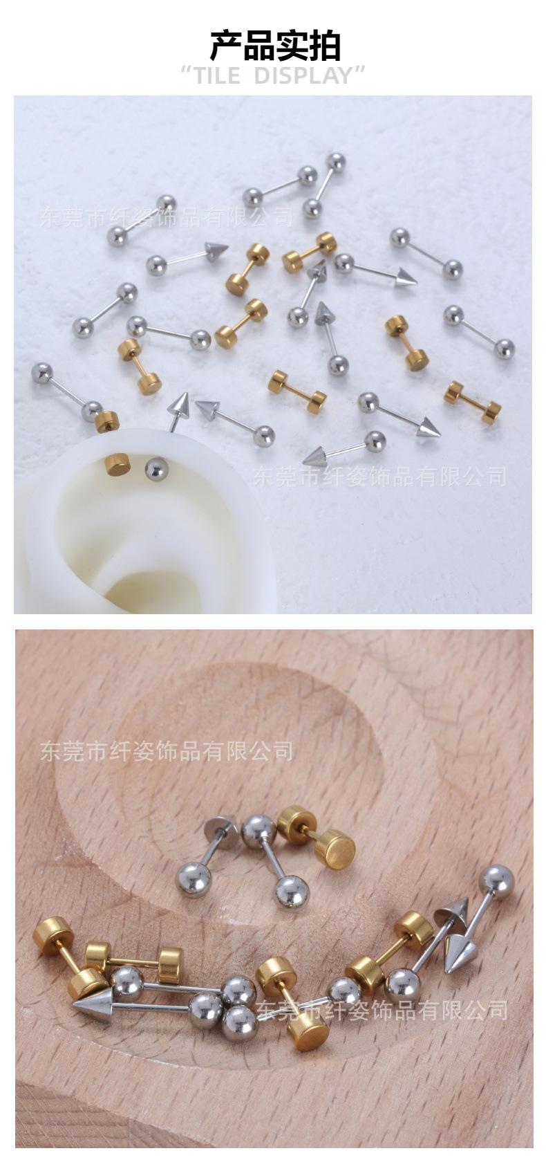 【nombre del producto】:Acero de titanio transfronterizo minimalista cono puntiagudo bola redonda cartílago de la oreja stud rosca externa moda hombres y mujeres fabricante europeo y americano en stock aretes piercing