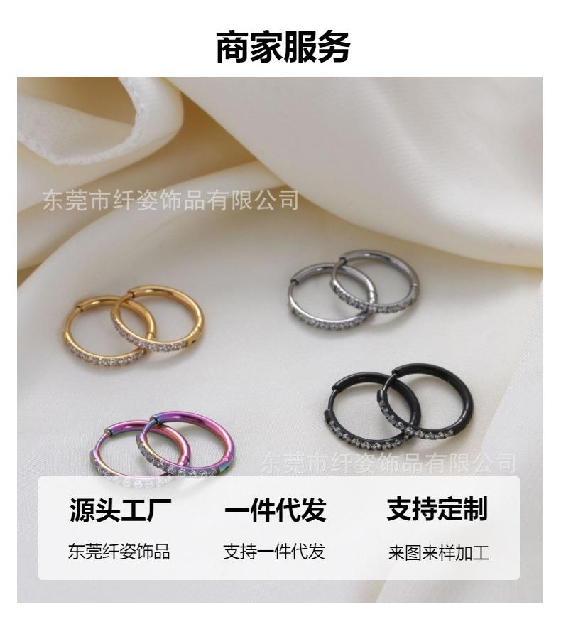 【nombre del producto】:Aretes de acero de titanio transfronterizos europeos y americanos ins de venta caliente joyería nicho lujo ligero circonita redonda puños para oreja aros para oreja