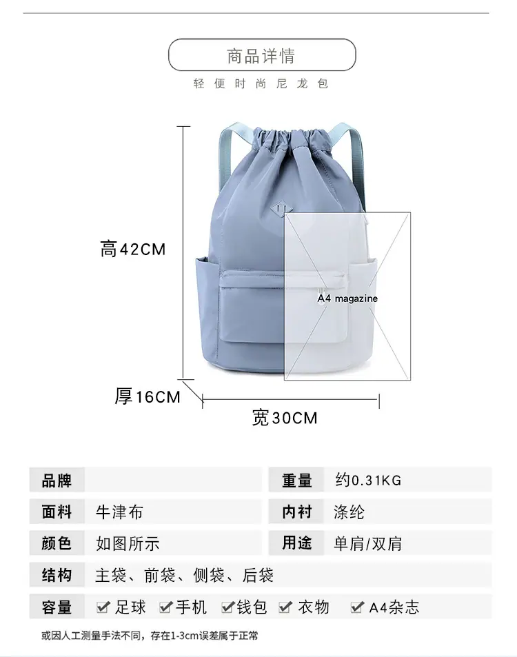 4. Otros problemas (como una ligera impresión offset, marcas de tiza, extremos de hilo, pequeños orificios, ligero óxido en las piezas metálicas) no son problemas de calidad.