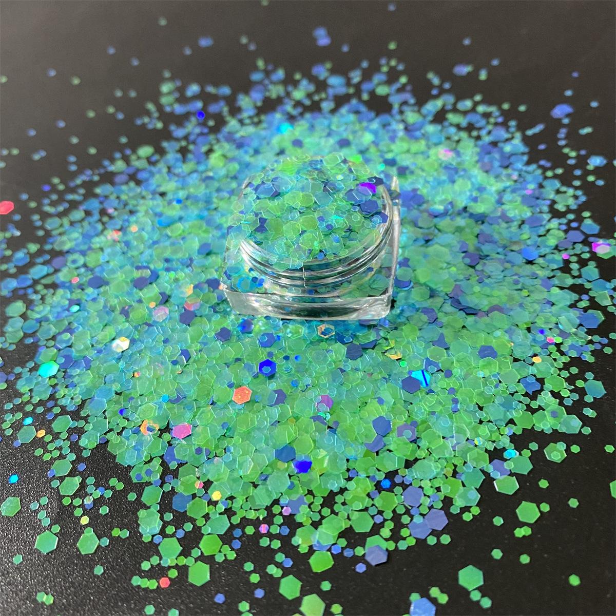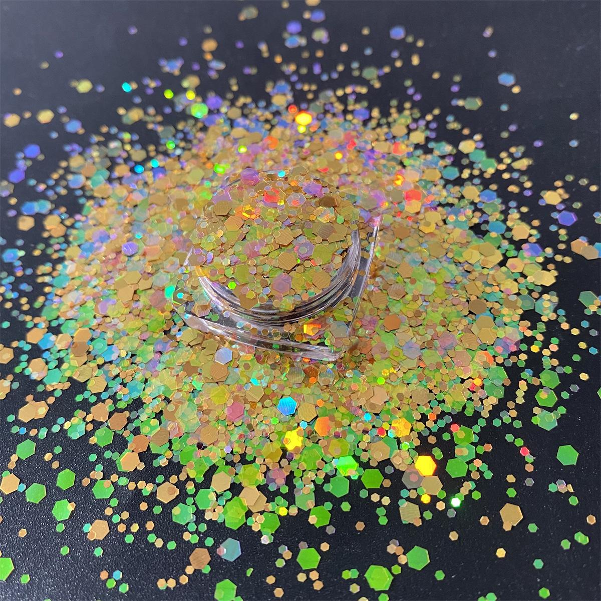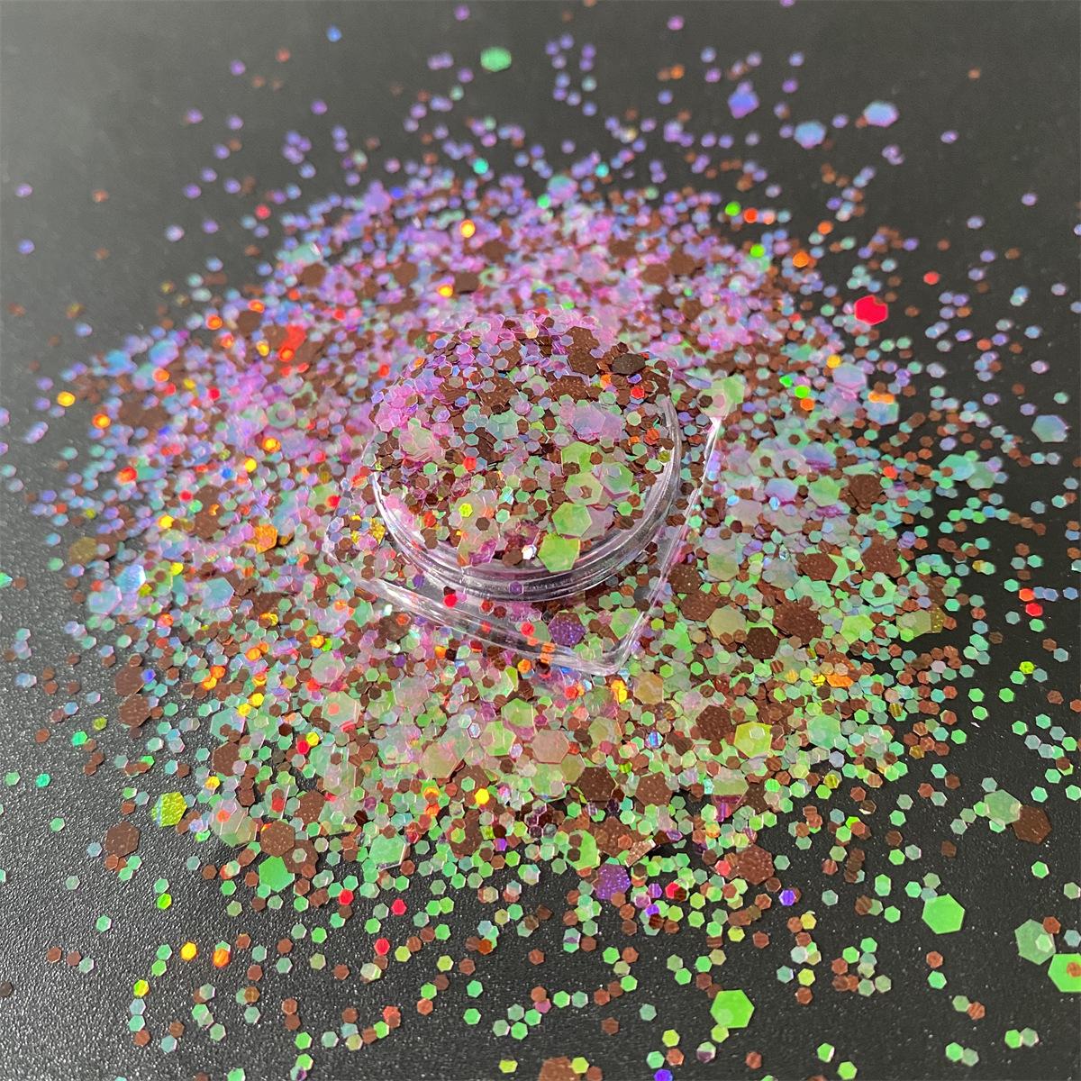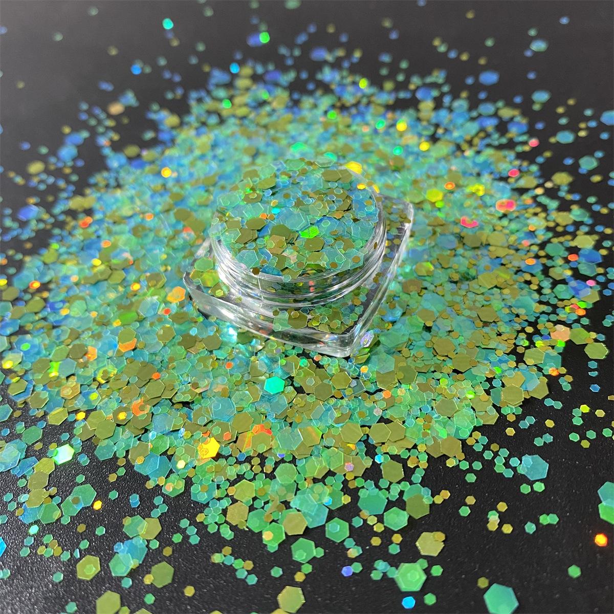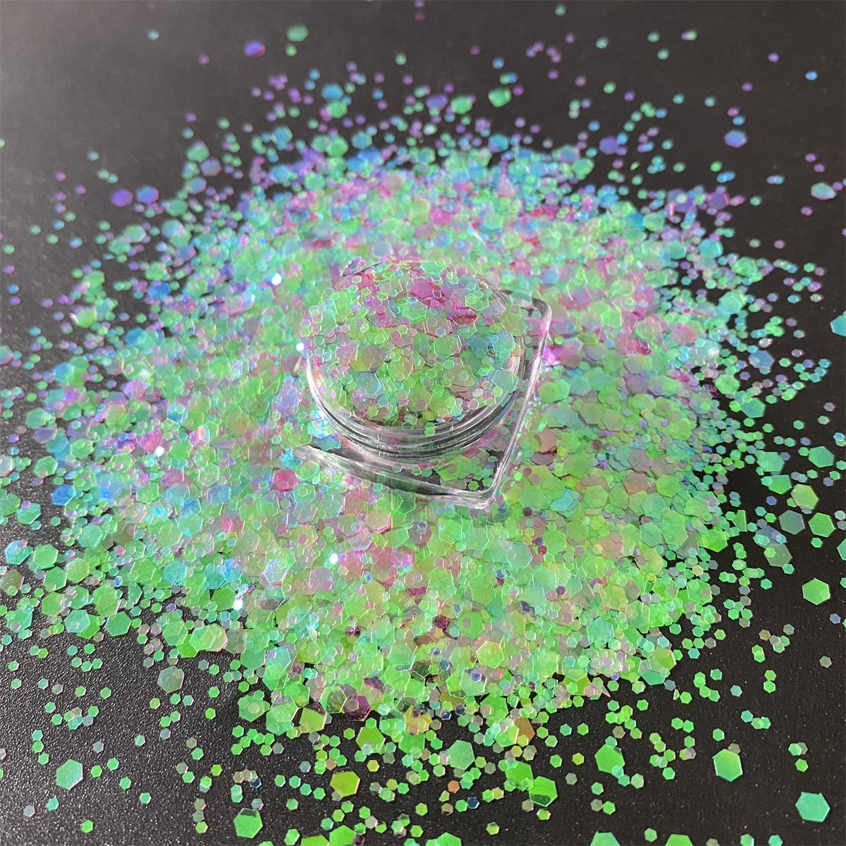 Uñas de Arte de Color Mágico Cristal Arena Movediza Material Brillo Lentejuelas Gotas de Pegamento Híbrido Láser Funda para Teléfono Polvo con Brillo Joyería Arte de Uñas