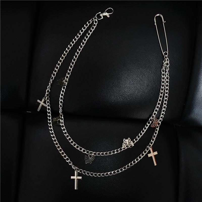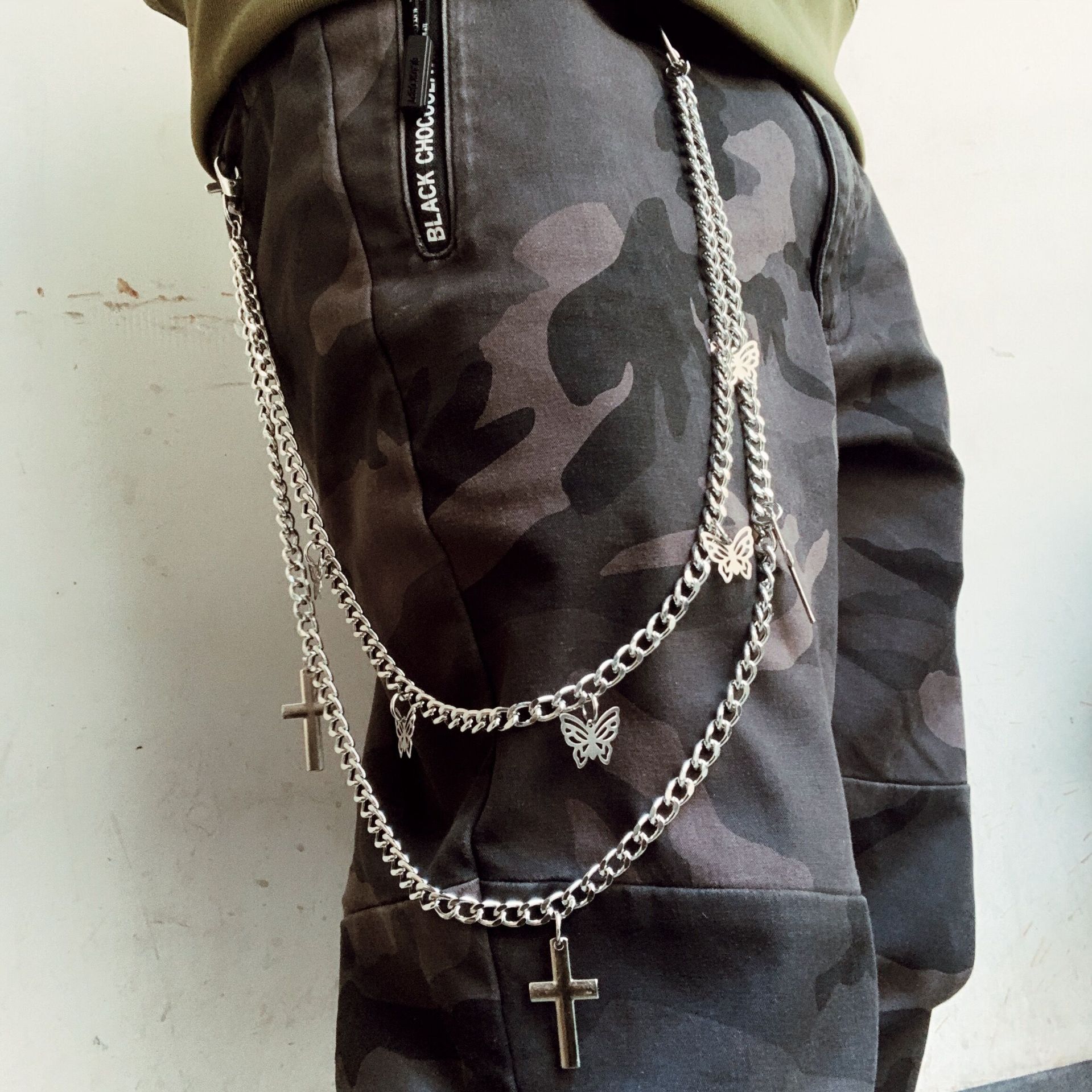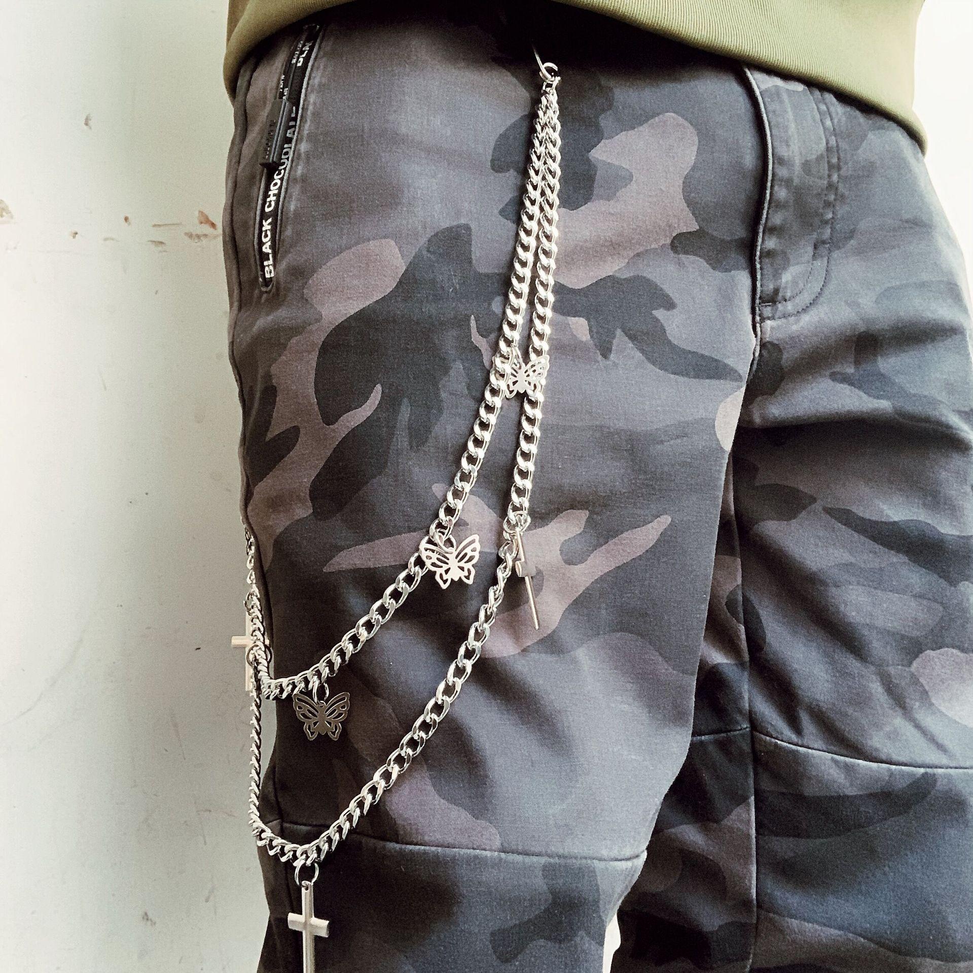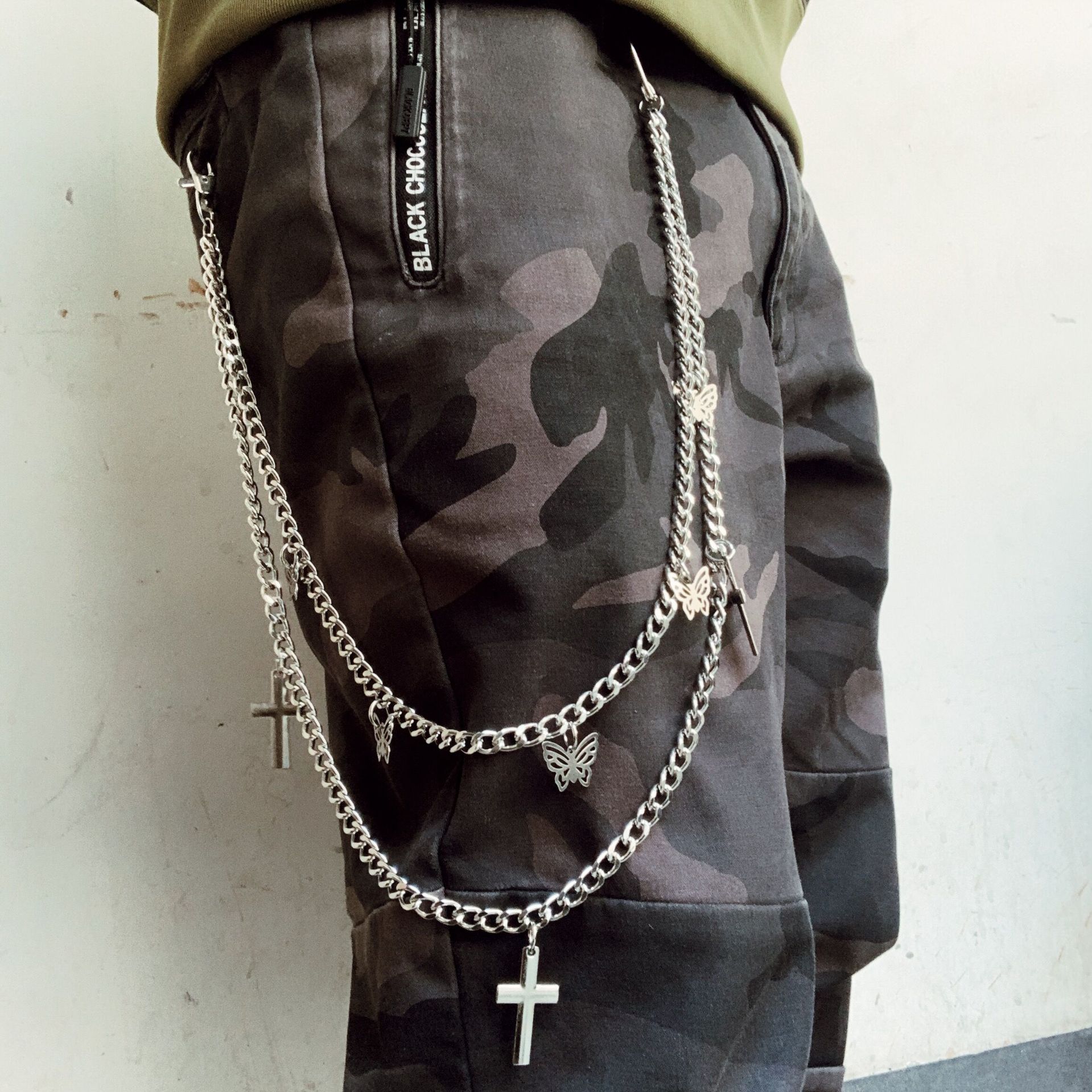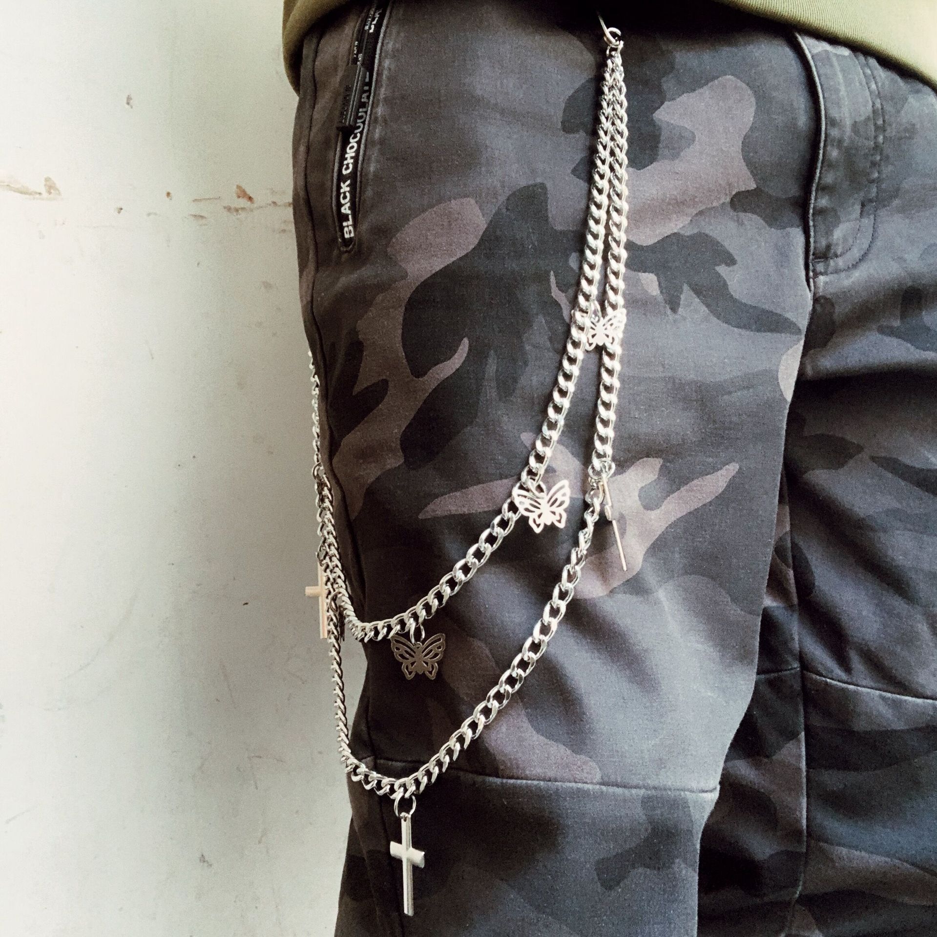 Una cadena para pantalones es un tipo de adorno que se cuelga en los vaqueros, popular entre las personas nacidas en los años 80 y 90, y que se introdujo desde Japón y Corea del Sur. Al principio, solo era popular entre quienes amaban Corea y Japón, pero con el tiempo se popularizó entre los jóvenes a la moda. Cadena para pantalones: una cadena que cuelga de los pantalones.