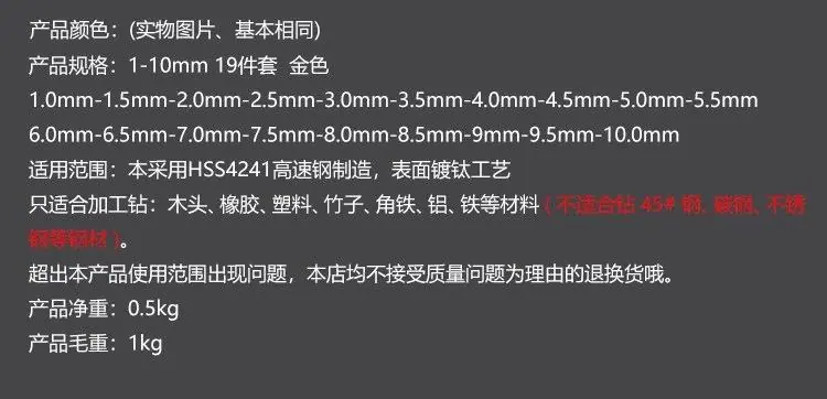 Juego de brocas recubiertas de titanio 1-10 broca helicoidal de vástago recto totalmente rectificada broca helicoidal recubierta de titanio