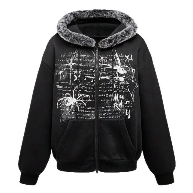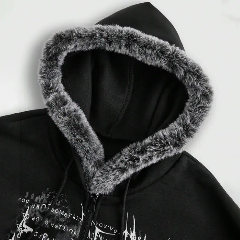 Sudadera con Capucha con Cierre y Estampado Nuevo Streetwear Vintage Forrada de Vellón Holgada Hip Hop High Street para Hombre Mujer Talla Europea Sudadera con Capucha