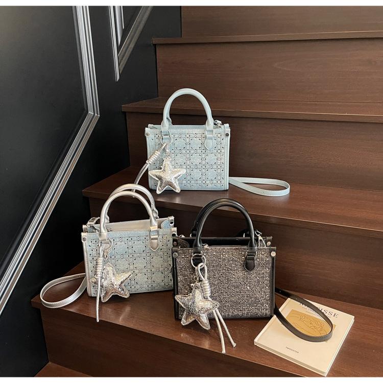 Compra Bolso Cuadrado Pequeño Casual y Elegante para Llevar en la Mano para Mujer 2025 Nuevo Otoño Bolso de Hombro Versátil Bolso Cruzado con Incrustaciones de Diamantes de Alto Valor al por mayor en Joom.pro