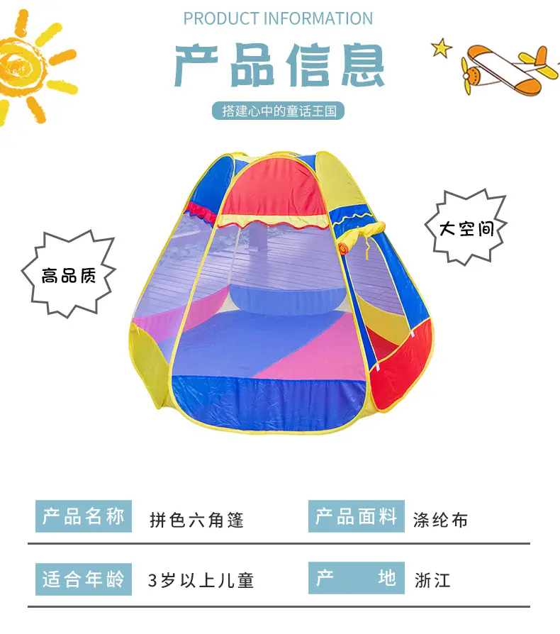 Suministro de fábrica tienda portátil para niños hexagonal de malla tienda de juegos para niños de dibujos animados tienda para niños se puede diseñar