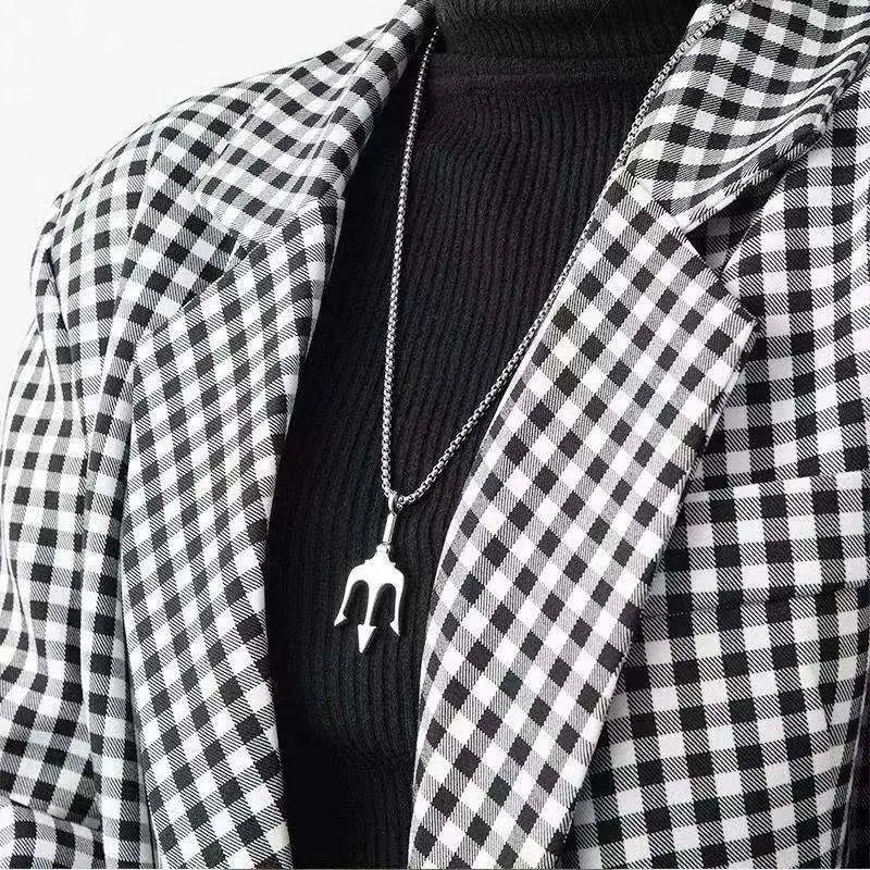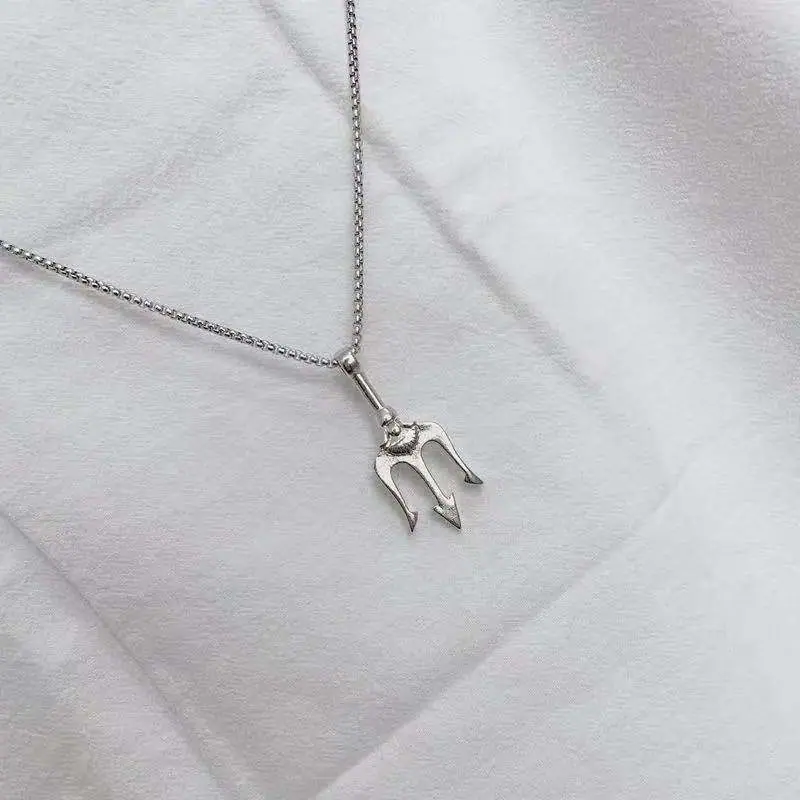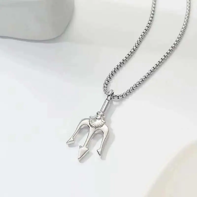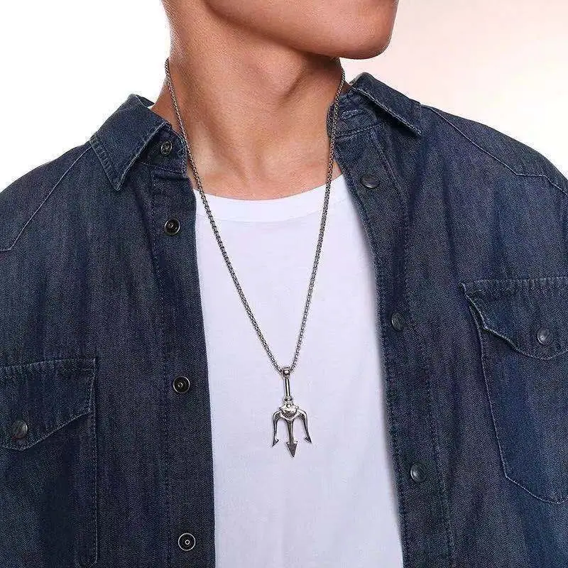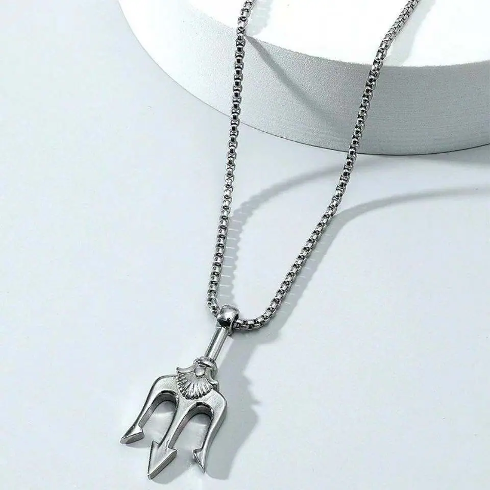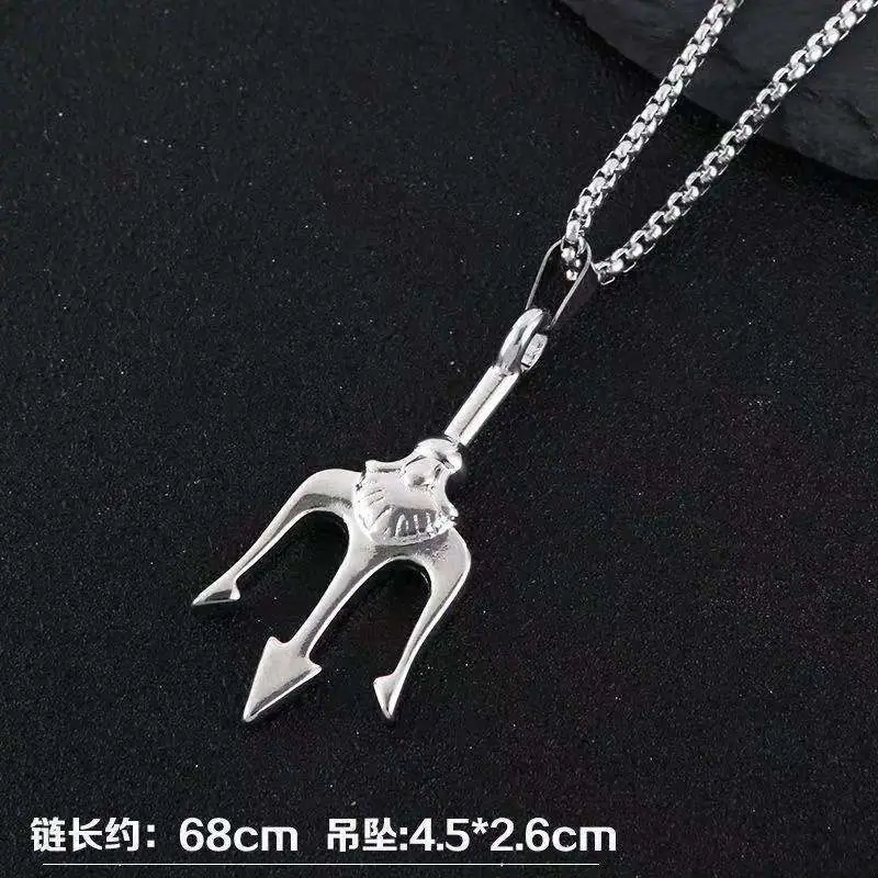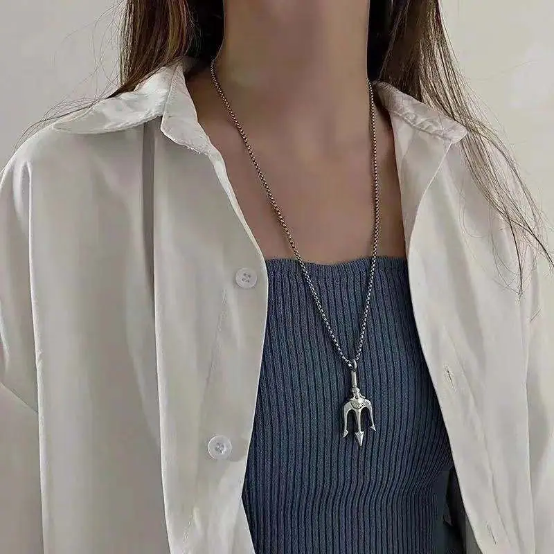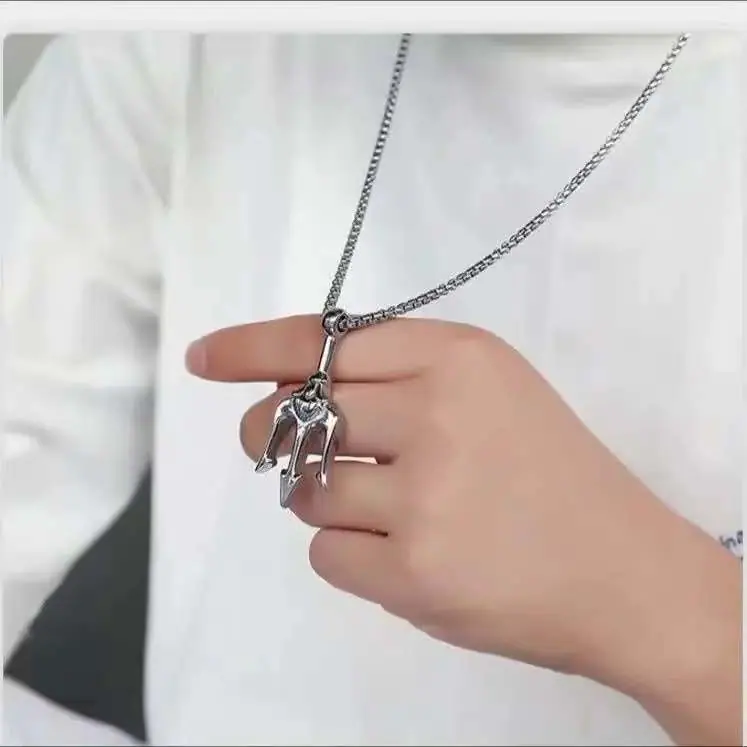 Collar con colgante de tridente de rey marino estilo hip hop, estilo europeo y americano, de acero y titanio, moderno y agresivo, personalizado para estudiantes, accesorios de cadena de lana.