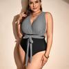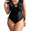Traje de Baño Enterizo Sexy sin Espalda Ajustado con Aberturas de Color Sólido para Mujer Talla Grande 2025 Comercio Exterior Europeo y Americano Transfronterizo