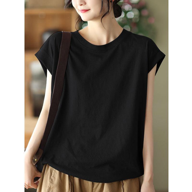 2025 Camiseta de Algodón de Manga Corta para Mujer Verano Nueva Camiseta de Manga Cuello Redondo Algodón Puro Antiexposición Versátil Top de Mujer