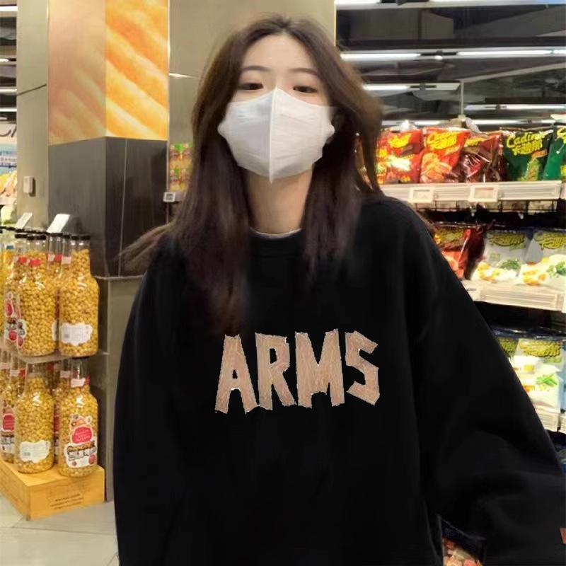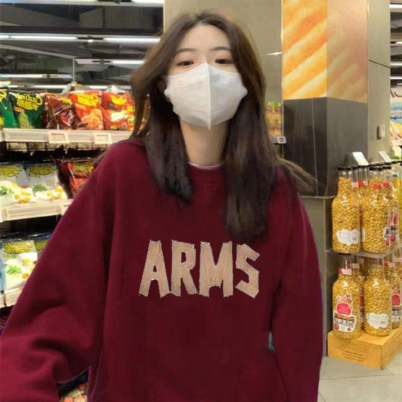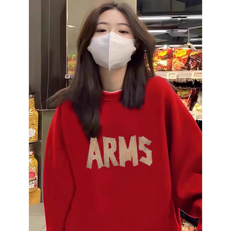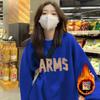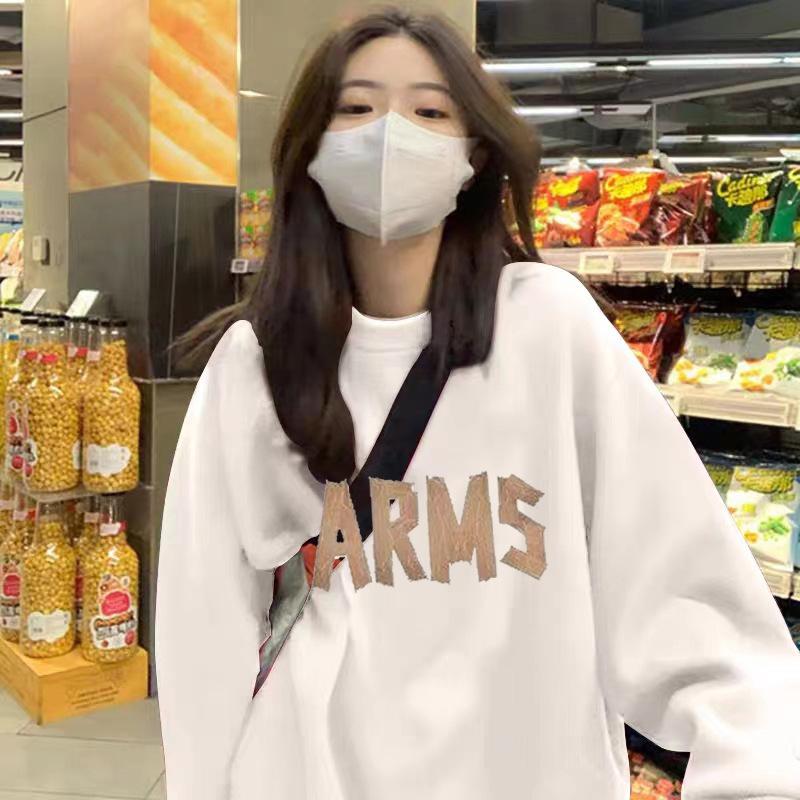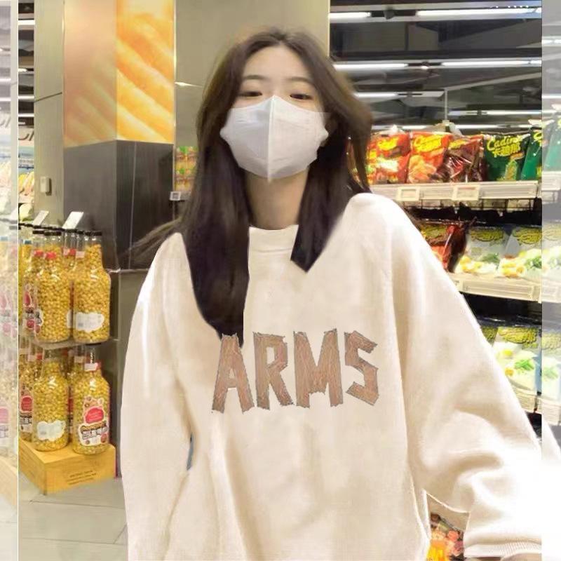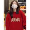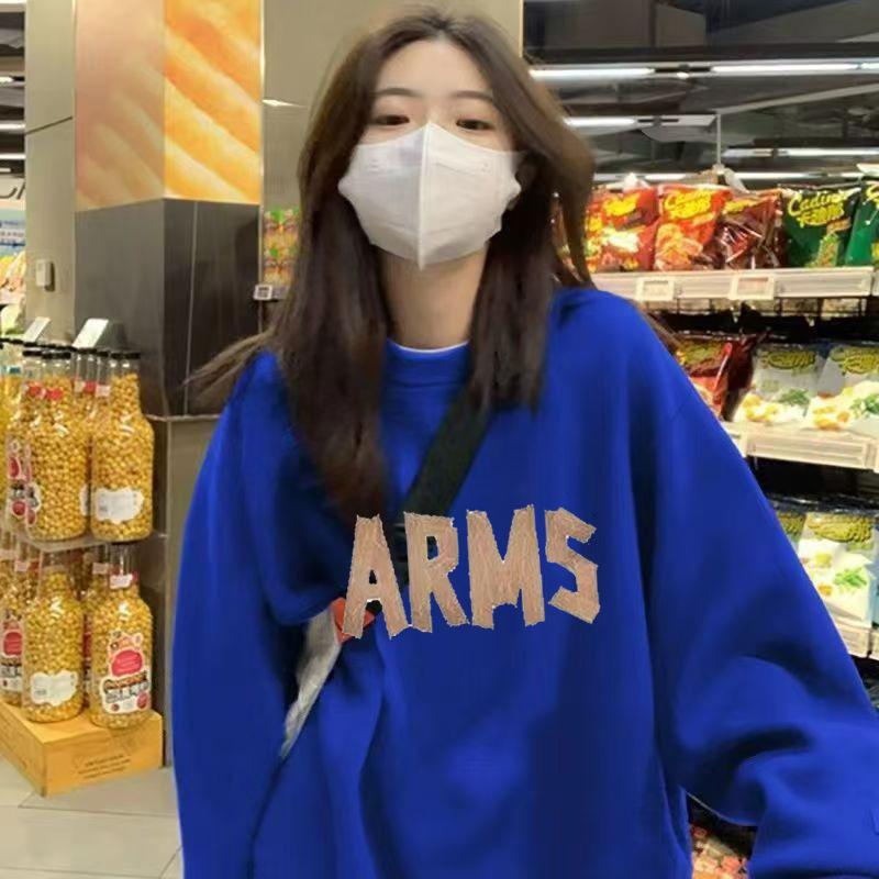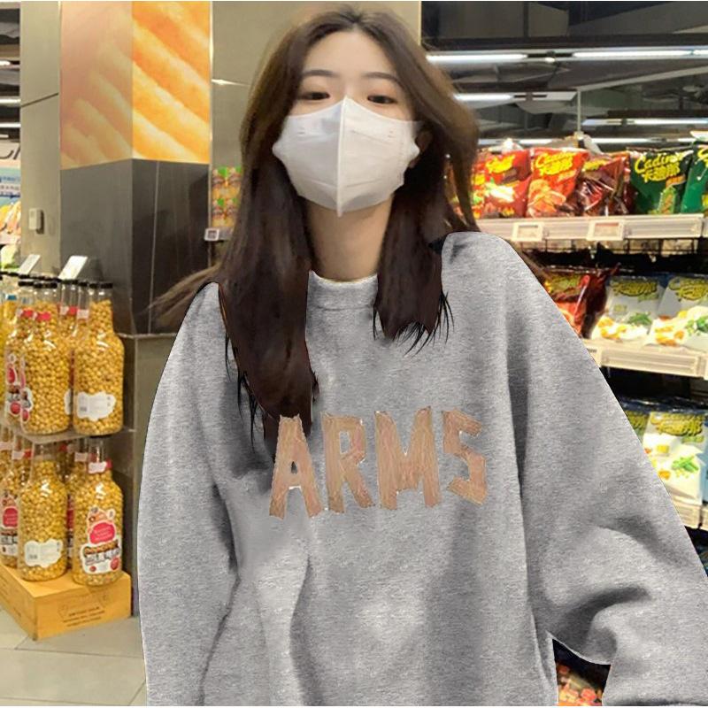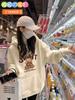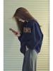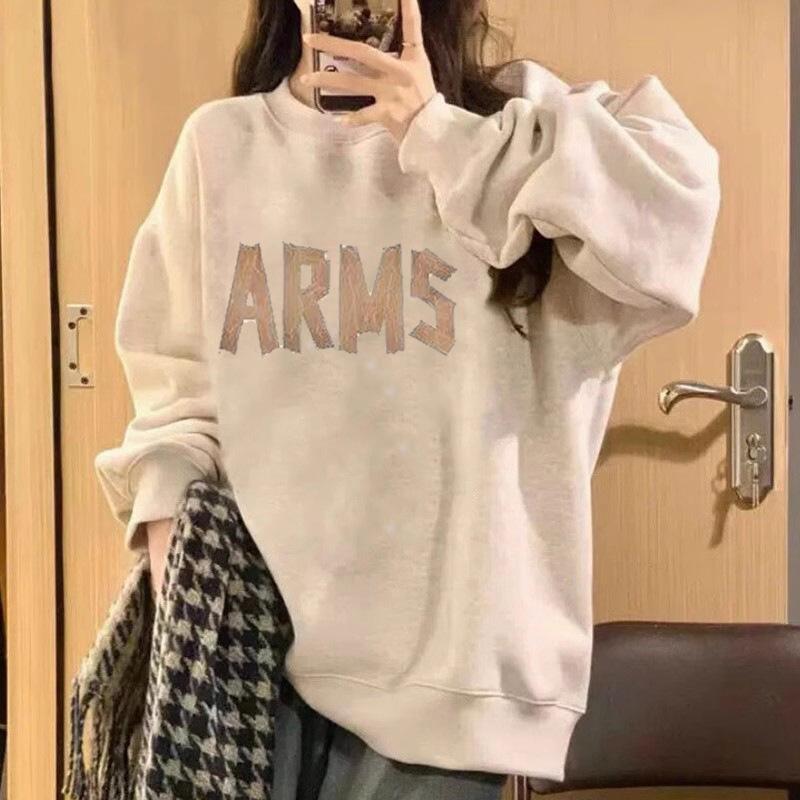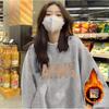 Sudadera de estilo americano holgada de cuello redondo para mujer, otoño e invierno, suelta, con felpa gruesa, versátil, estampada, para pareja, top, chaqueta