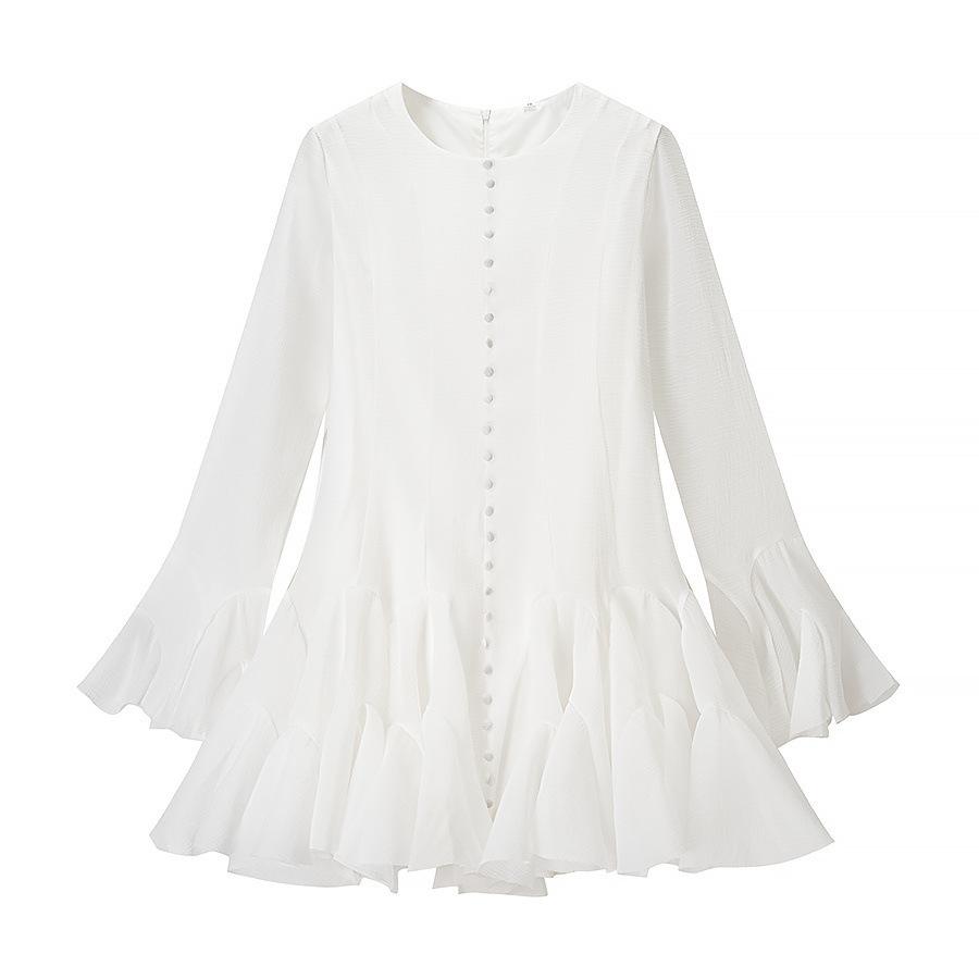 Vestido de Verano para Mujer 2025 Nuevo Diseño Nicho Francés Estilo Suave Manga Larga Cintura Ajustada Blanco