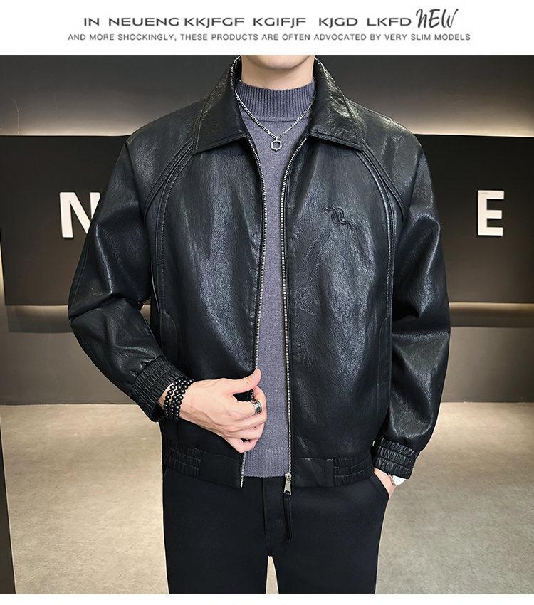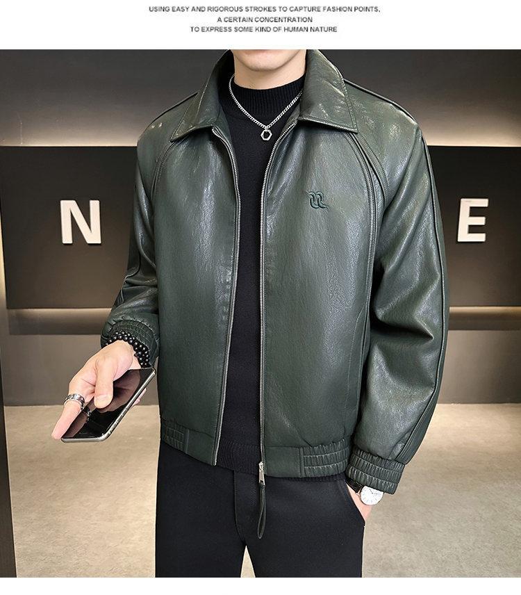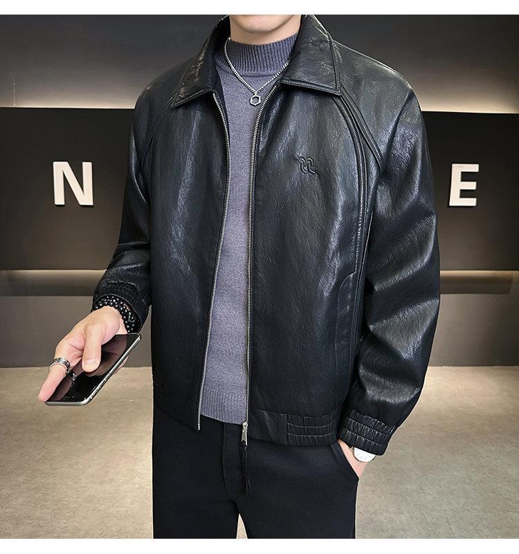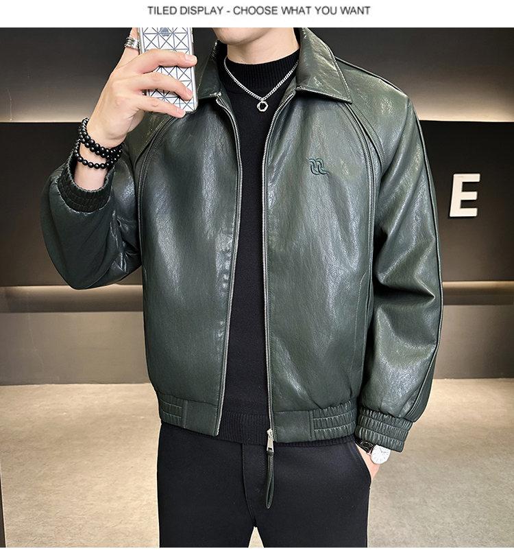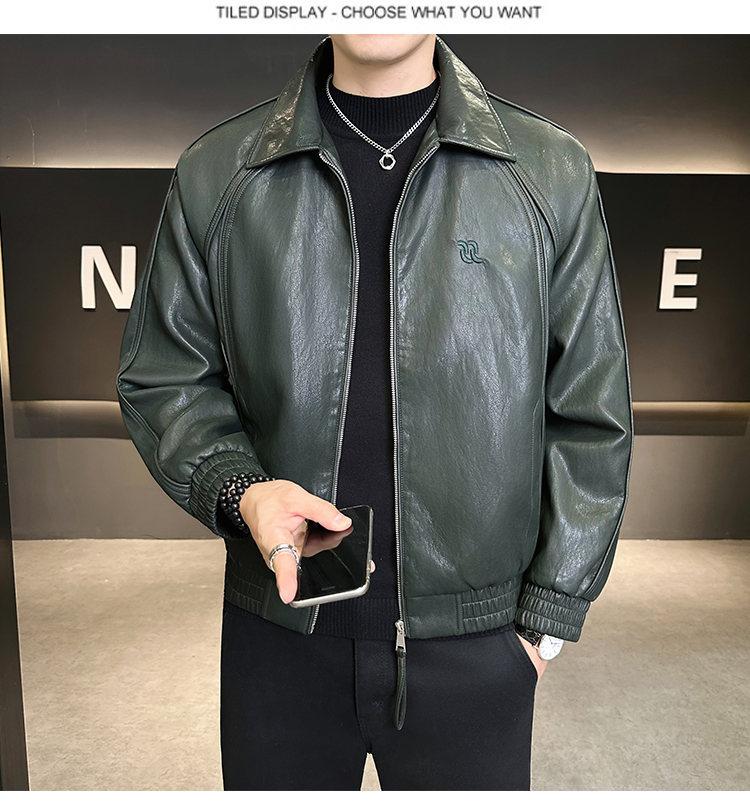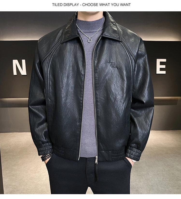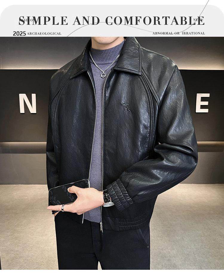 FW10778 2025 Nuevo Otoño Chaqueta de Cuero Abrigo Hombre Tendencia Retro Americana Chaqueta de Cuero para Motocicleta Ajustada