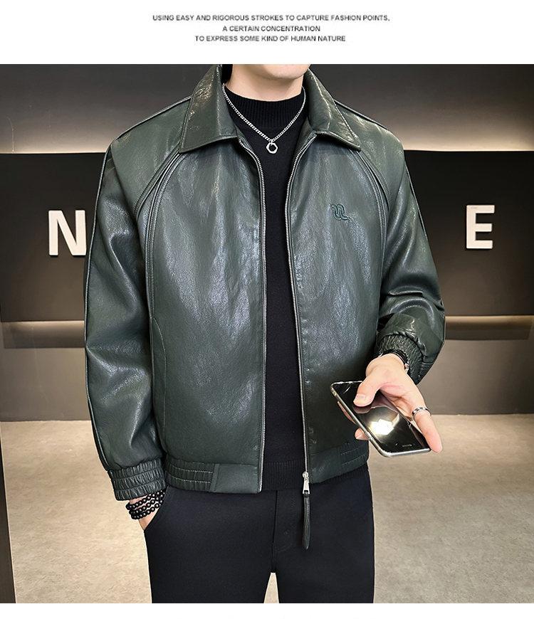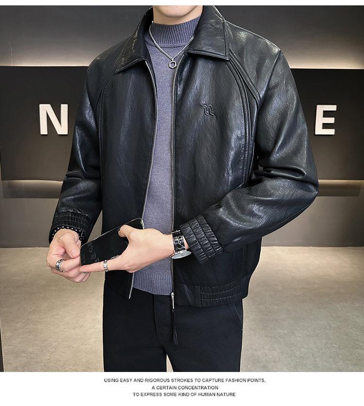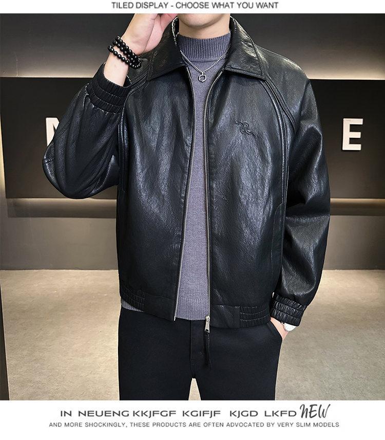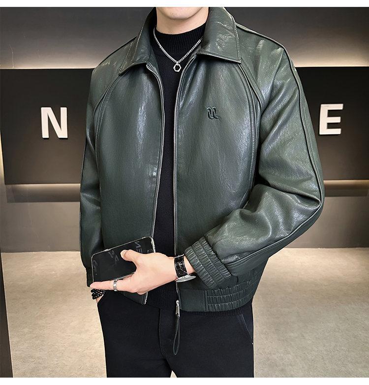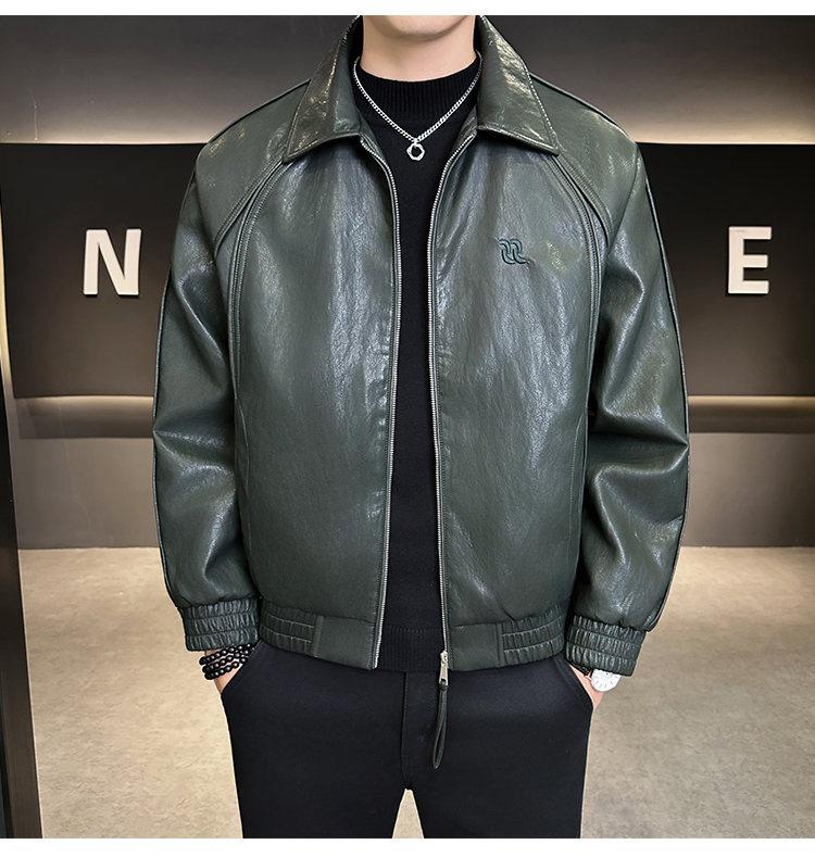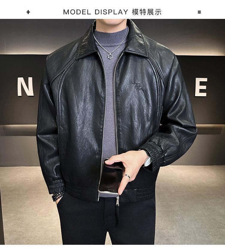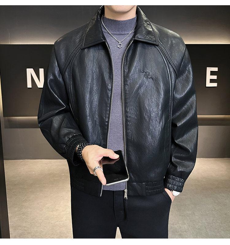 FW10778 2025 Nuevo Otoño Chaqueta de Cuero Abrigo Hombre Tendencia Retro Americana Chaqueta de Cuero para Motocicleta Ajustada