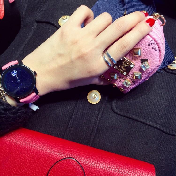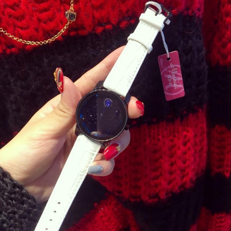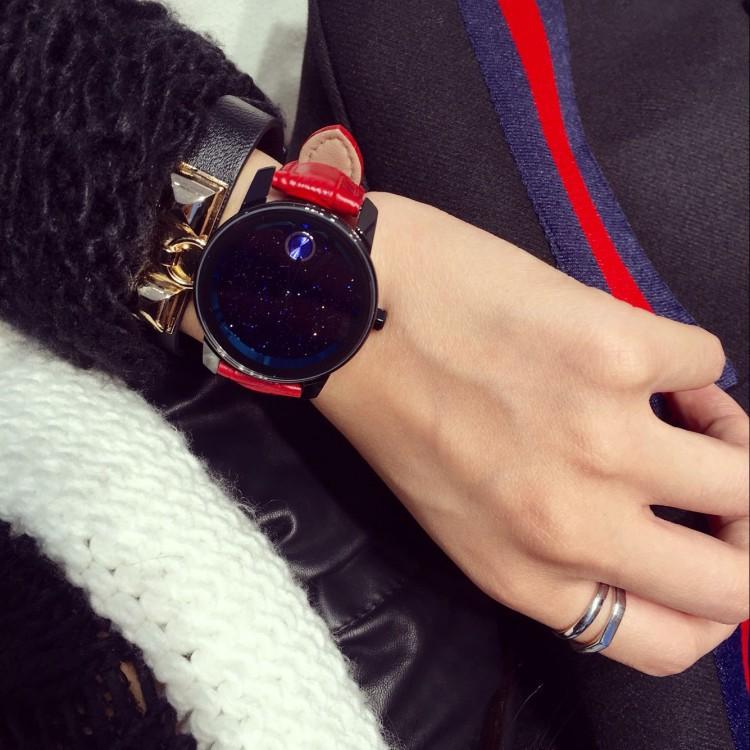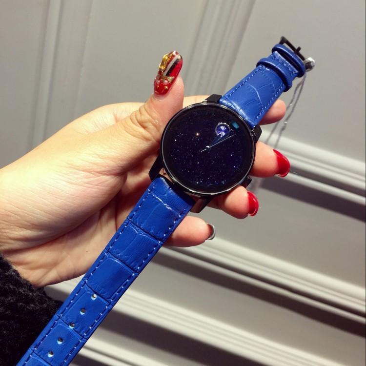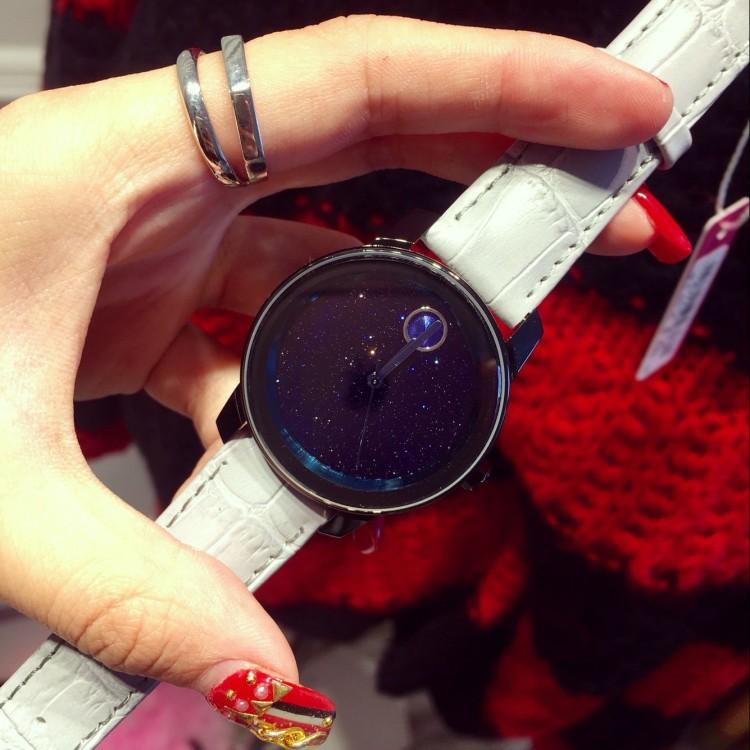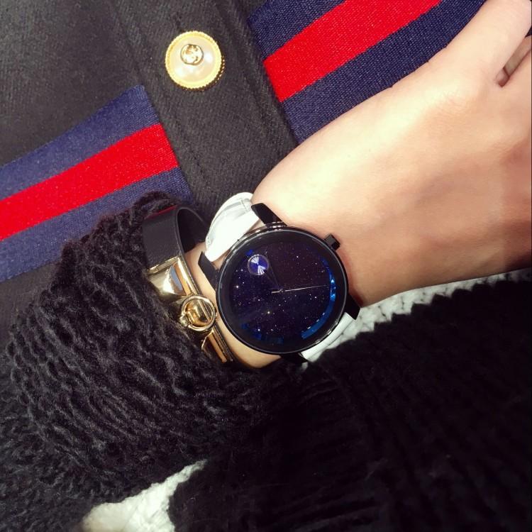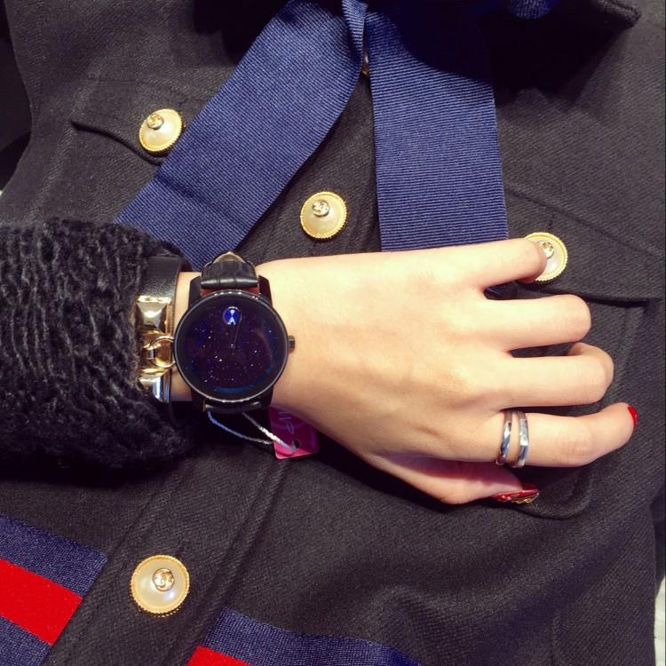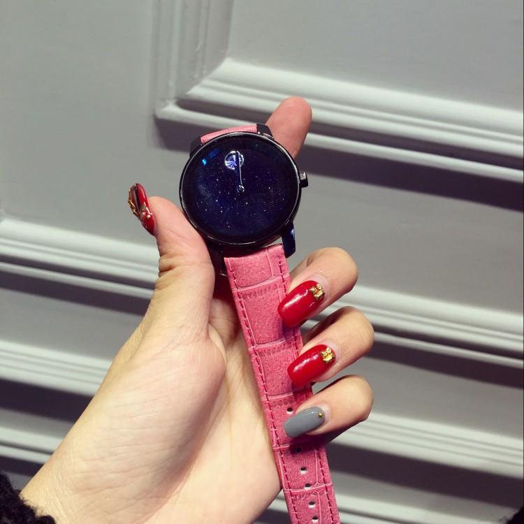 Reloj de mujer moderno con esfera de cielo estrellado, los diamantes brillan debido a la luz, ¡y la luz es más hermosa porque está adornada con diamantes!