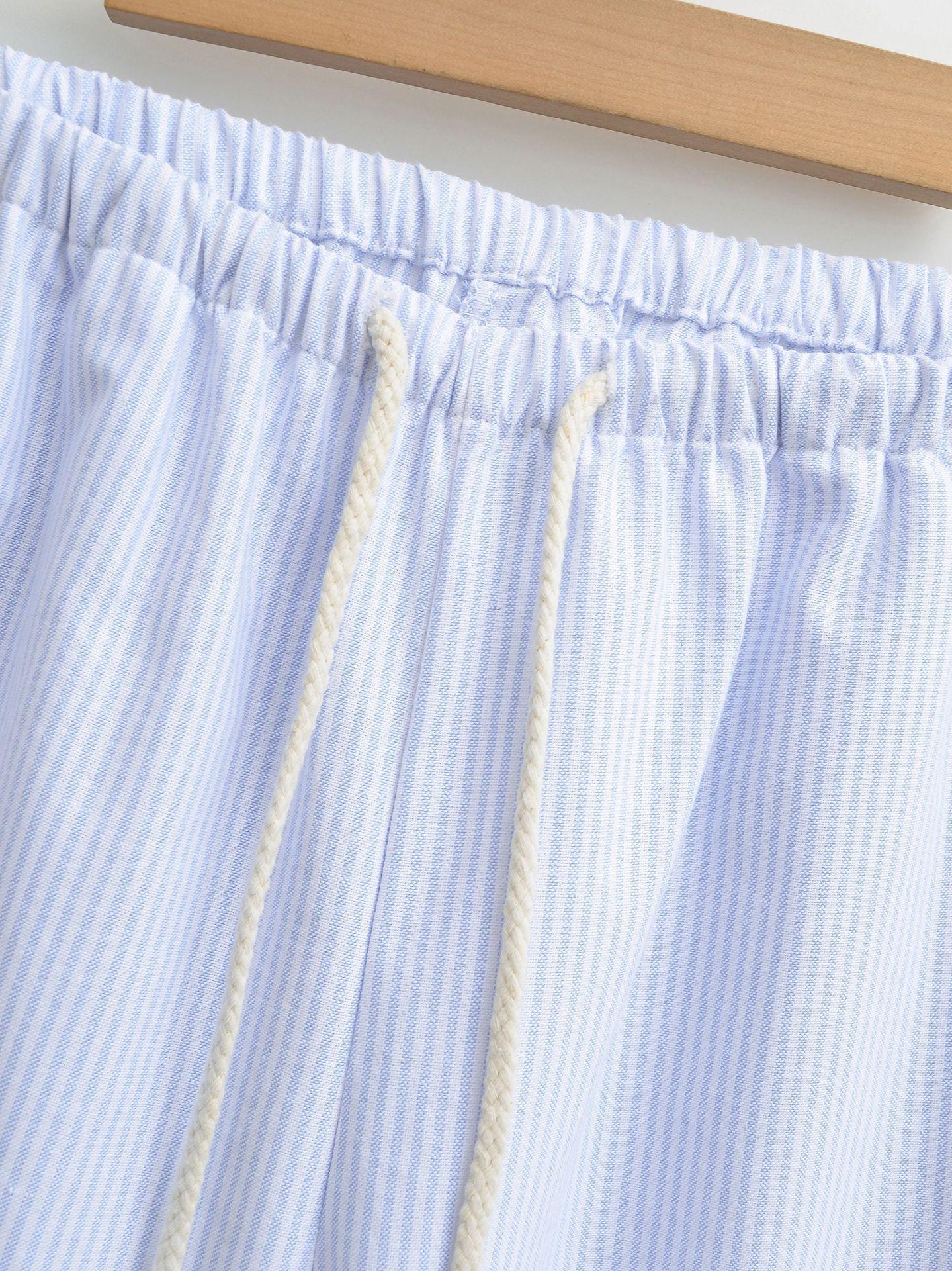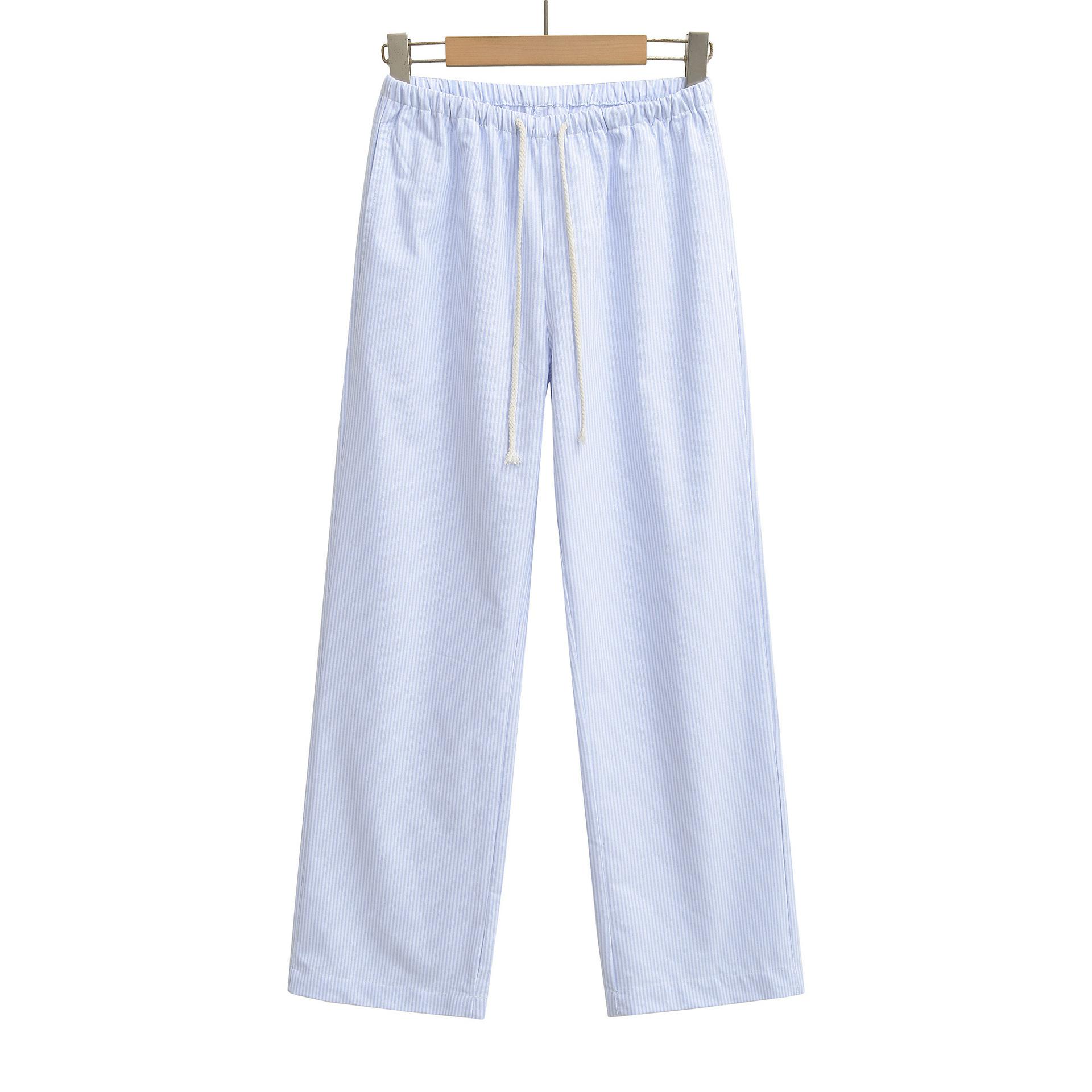 25 Otoño Nuevo Estilo Cordón Suelto Pierna Ancha Pantalones Largos Pantalones de Pierna Recta Pantalones Casuales Serie Rayas Rosas Europeas y Americanas