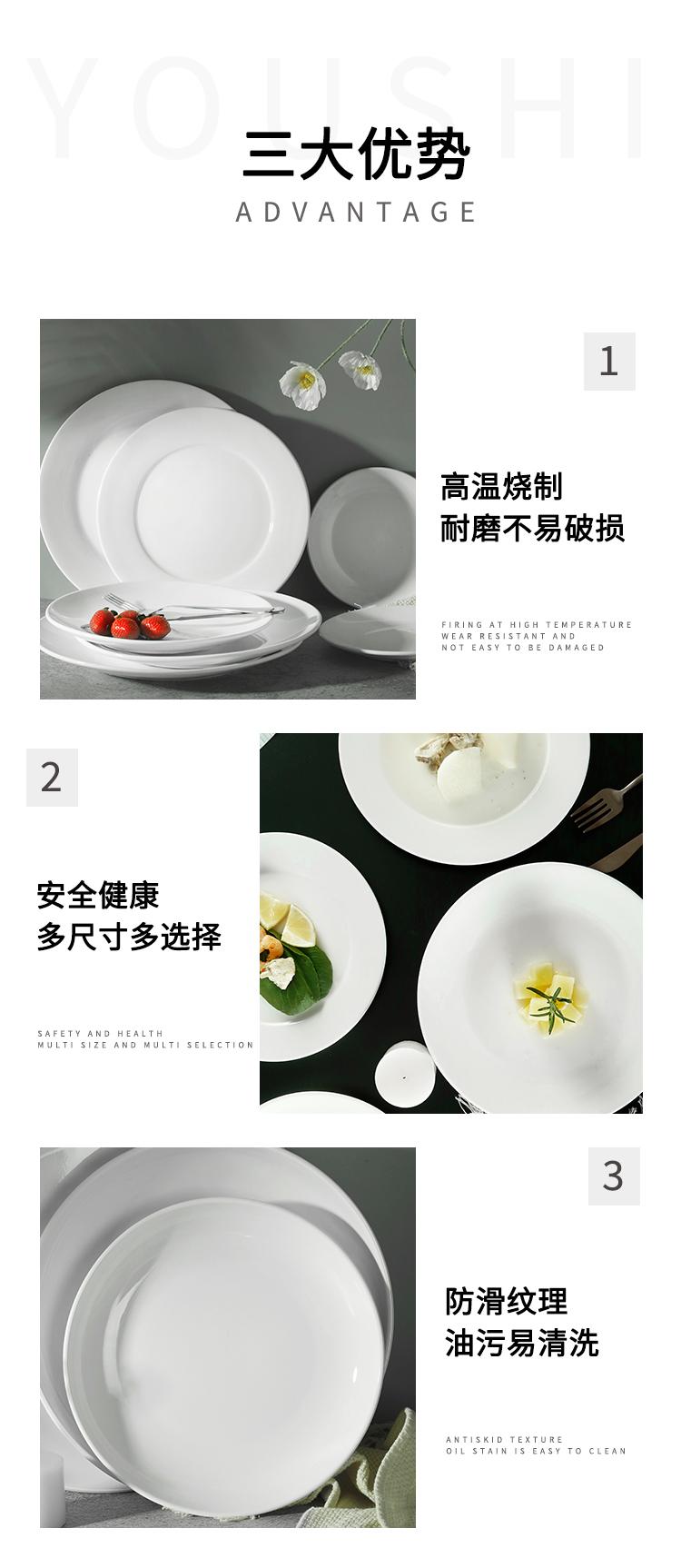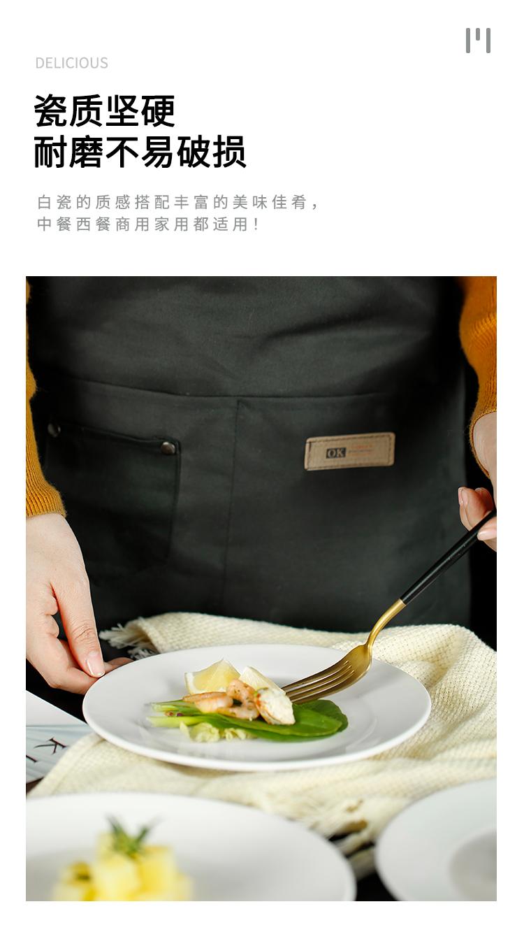 Plato Plano de Cerámica Plato Hondo Comida Occidental Plato Grande Bistec 9.0 pulgadas Blanco Vajilla Comercial Extra Grande Redondo Puro Vela Excelente