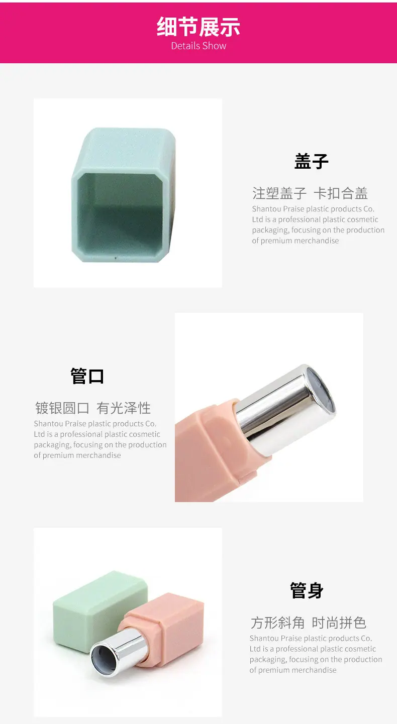 Tubo cuadrado de plástico plano para labial, tubo vacío, fábrica, venta al por mayor, material de concha para labial de maquillaje
