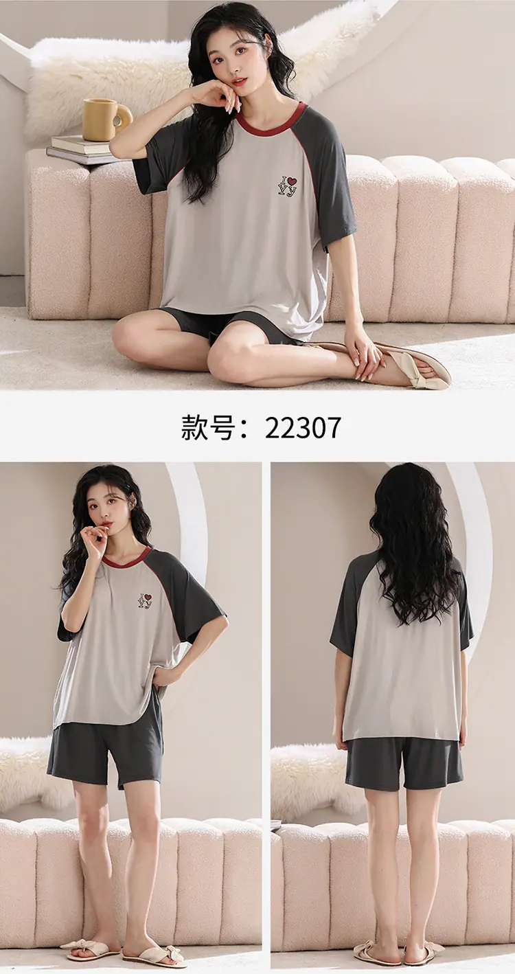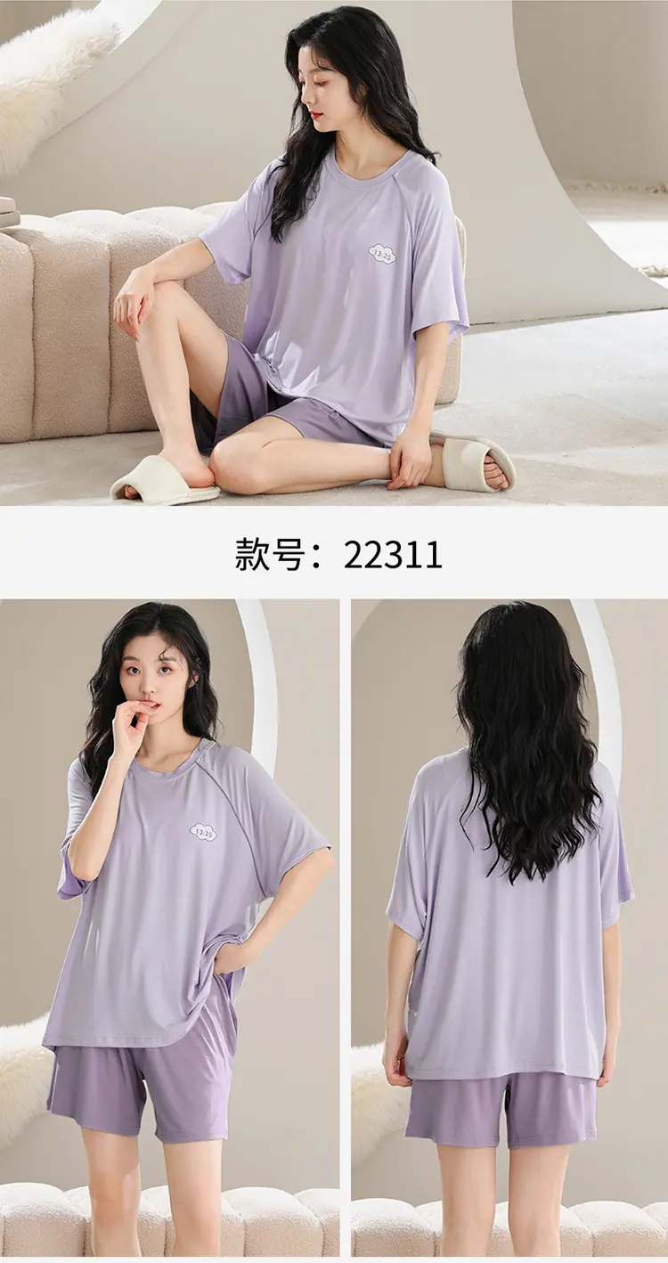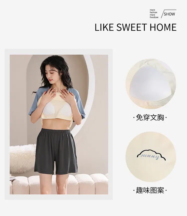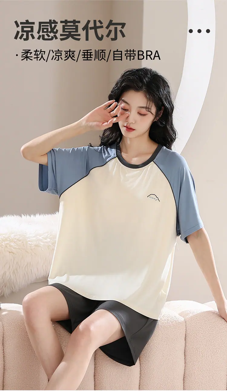 Pijama para mujer con almohadilla en el pecho primavera y verano modal manga corta color sólido verano delgado talla grande traje de ropa para el hogar