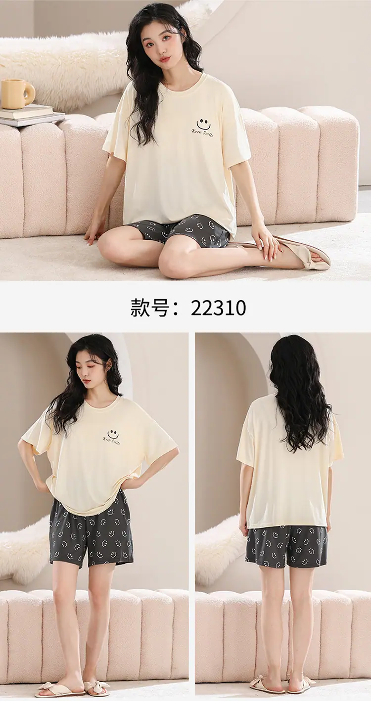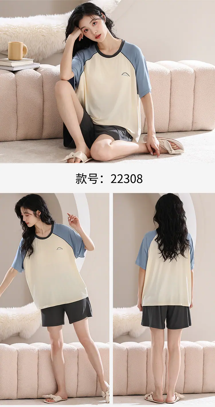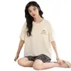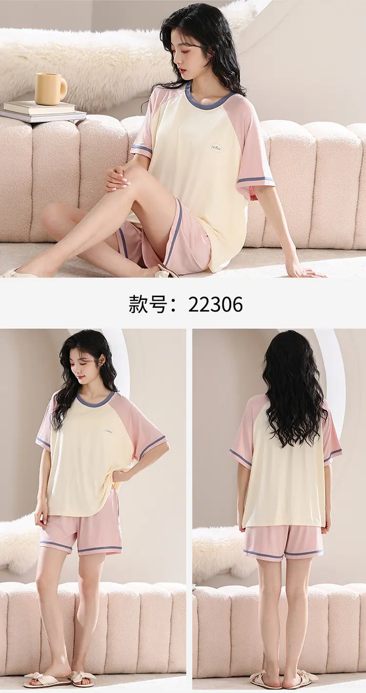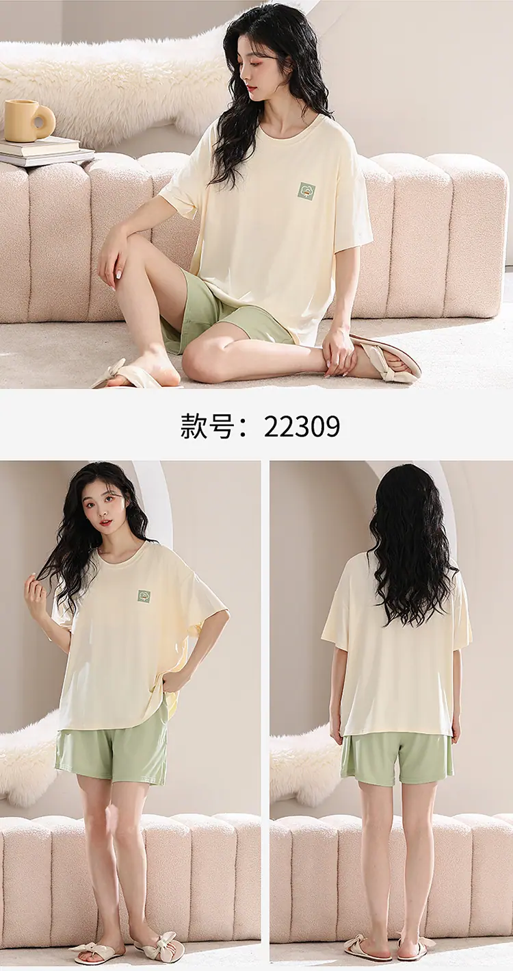 Pijama para mujer con almohadilla en el pecho primavera y verano modal manga corta color sólido verano delgado talla grande traje de ropa para el hogar