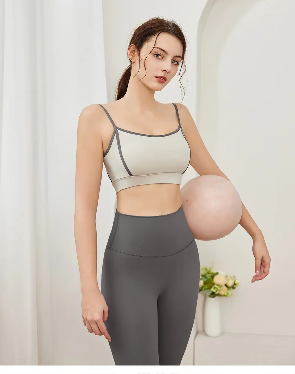 Ropa interior deportiva de una pieza con copa fija a prueba de golpes para mujer, sujetador de alta resistencia para correr y fitness, para uso exterior, espalda bonita, yoga, tirantes