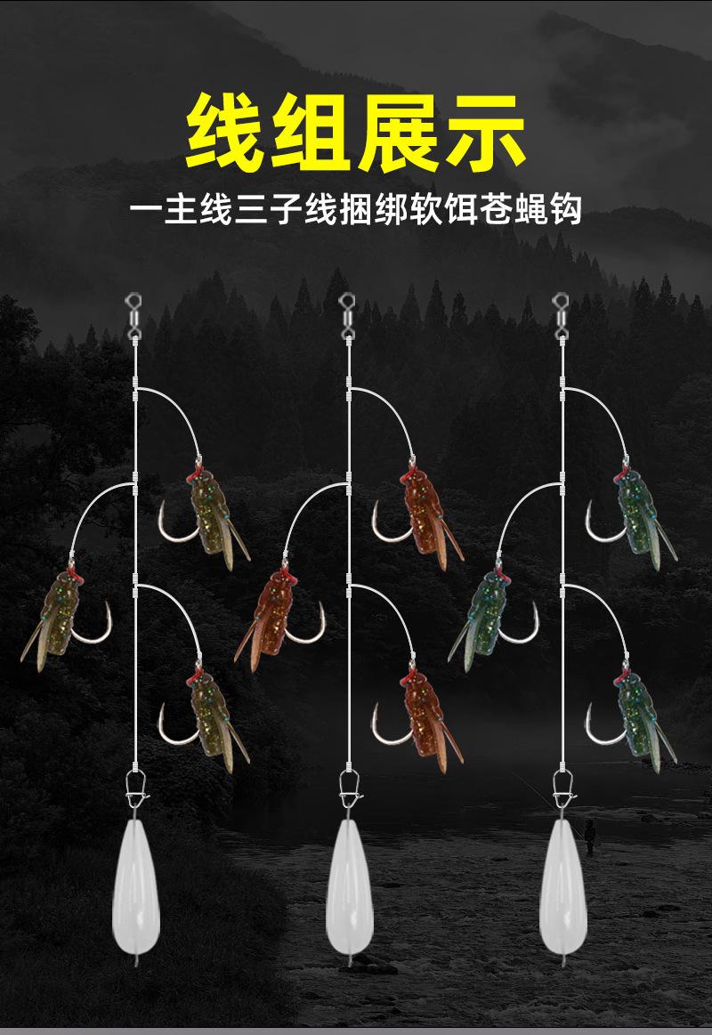 Set de Cebo para Pesca con Mosca con Montaje de Línea de Tres Anzuelos Anti-Enredos para Pesca con Mosca, Cebo Artificial para Pescar con una Técnica de Jigging