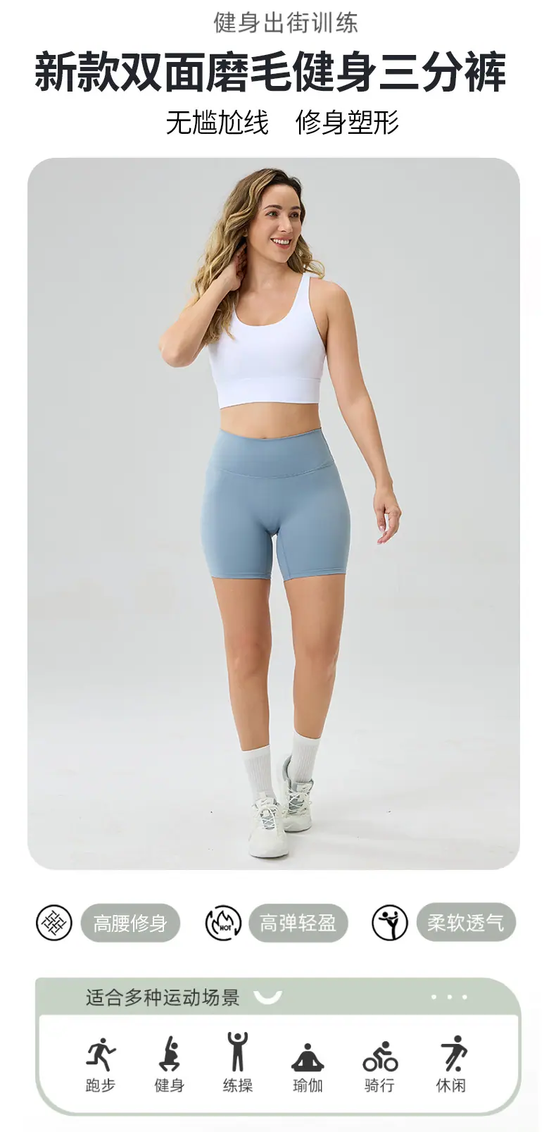 Nuevos Shorts de Yoga de Estilo para Mujer, Cintura Alta, Sin Costuras, Ajustados, Largo Tres Cuartos, Ropa de Yoga Fitness de Verano de Manga Corta