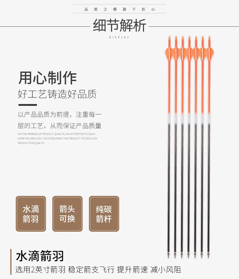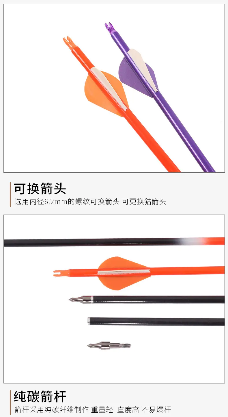 Arco y Flecha Tiro con Arco Diámetro Interno 6.2mm Flecha de Carbono Puro Eje Arco Recurvo Compuesto Arco de Caza Americano Punta de Flecha Universal Reemplazable En Stock