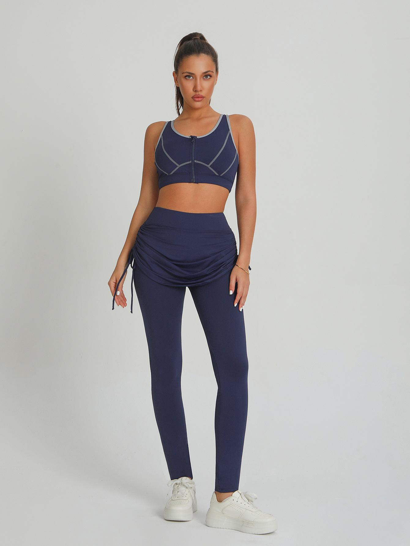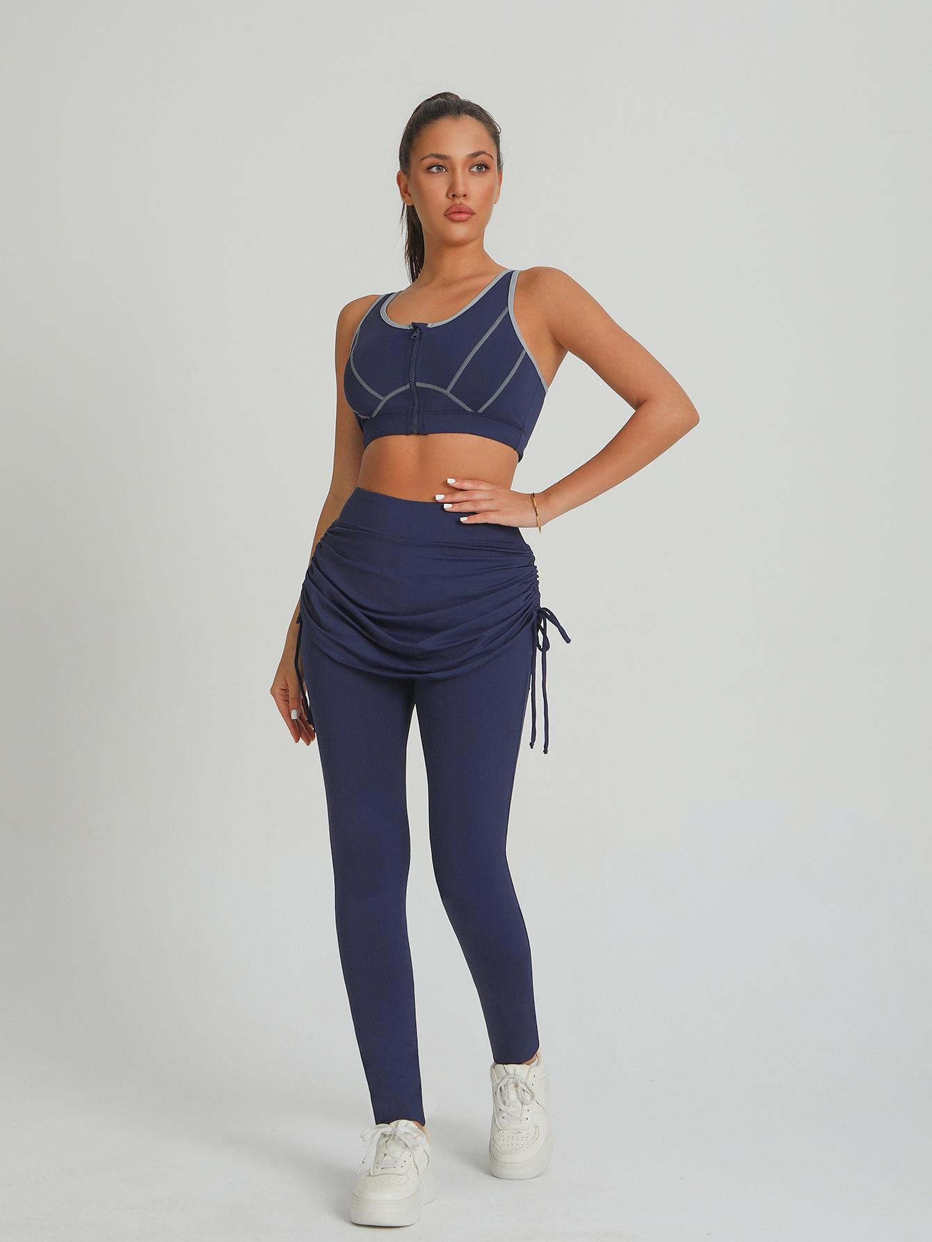 Ropa de Yoga Nueva Europea y Americana Traje de Fitness Deportivo Espalda Hermosa Casual Sujetador Falso de Dos Piezas Pantalones de Yoga Ajustados para Mujer