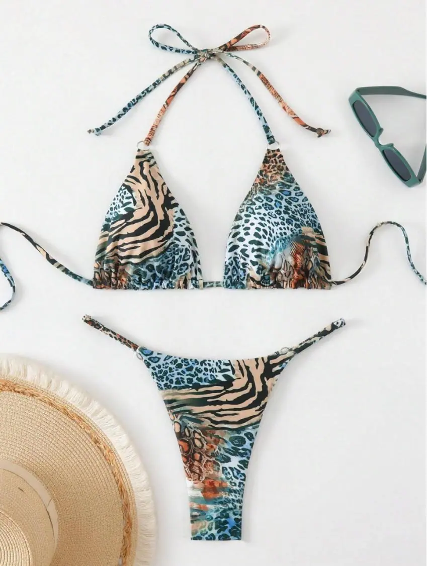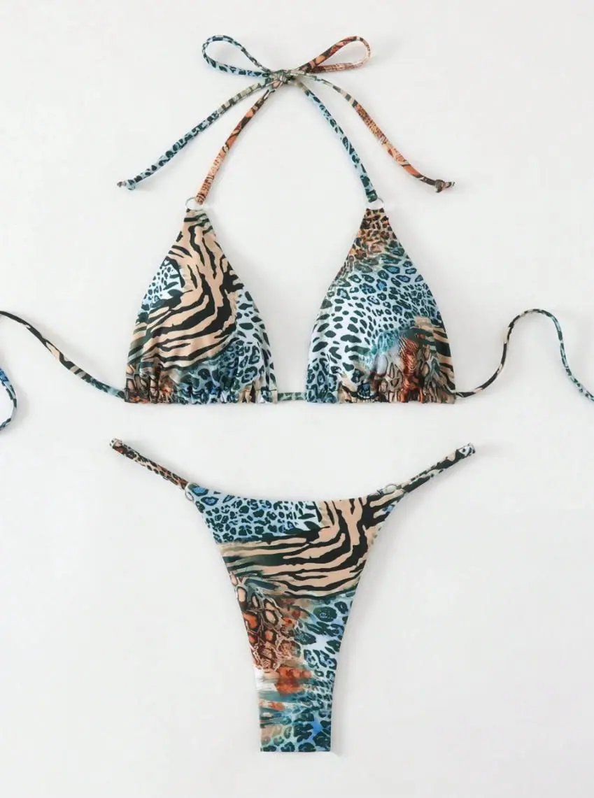 25 Nuevo Bikini Sexy Deseo Puro Estampado Chica Caliente Vacaciones Playa Traje de Baño Mujer