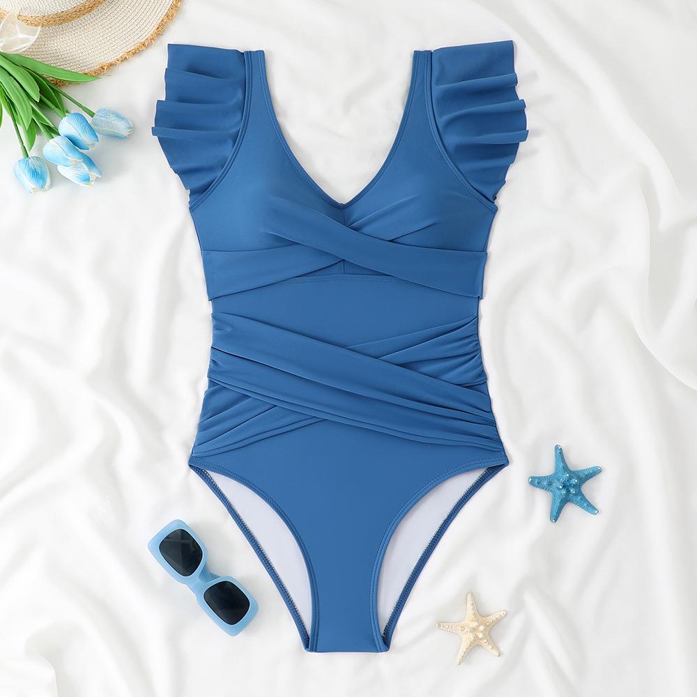 Traje de Baño Entero Sexy Nuevo 2025 Amazon para Mujer Europeo y Americano Transfronterizo con Volantes Adelgazante de Alta Gama