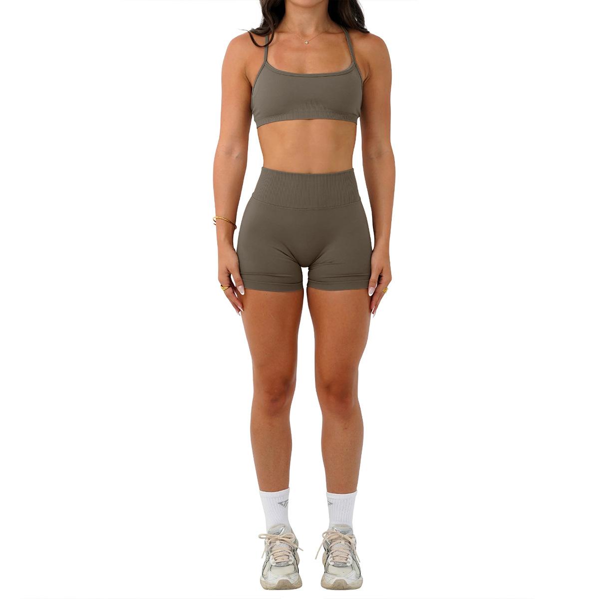 Traje de Yoga Ajustado Sin Costuras Europeo y Americano Transfronterizo con Cintura en V, Aspecto Adelgazante y Traje de Fitness de Secado Rápido, Traje Deportivo para Correr al Aire Libre
