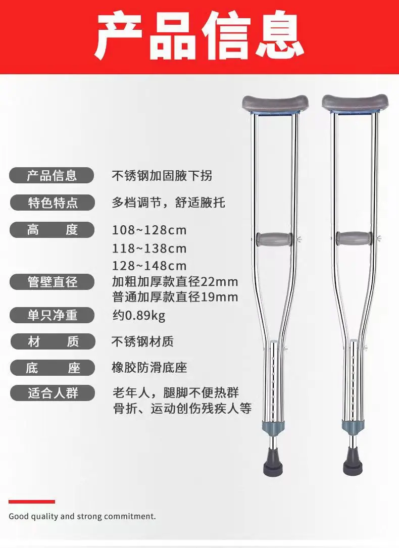 Bastón Axilar de Acero Inoxidable para Ancianos y Discapacitados, Altura Ajustable, Bastón de Rehabilitación, Fabricante Mayorista