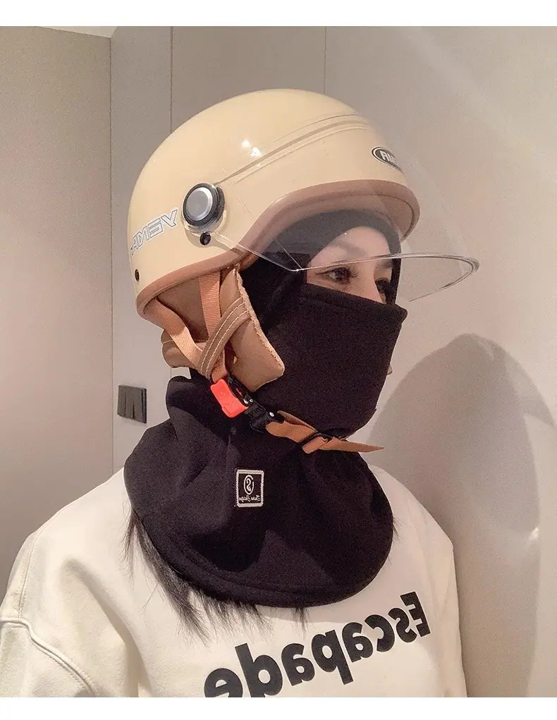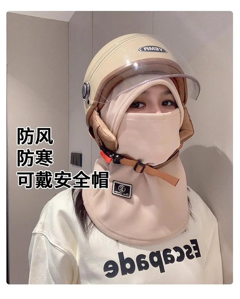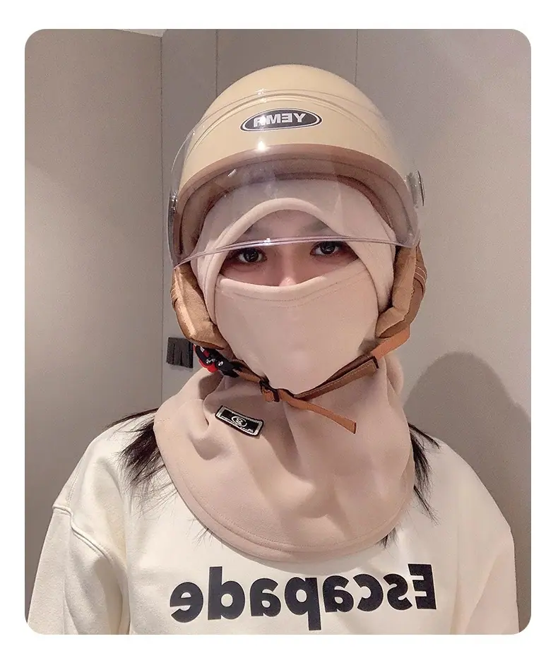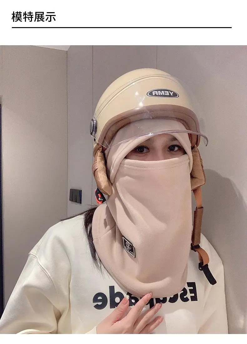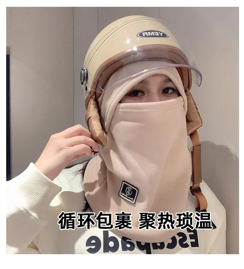 Invierno Cálido Gorro Ciclismo Vehículo Eléctrico A Prueba de Frío A Prueba de Viento Máscara Facial Protector de Cuello Forrado de Polar Bufanda Sombrero Integrado para Mujer Esquí