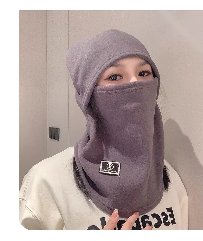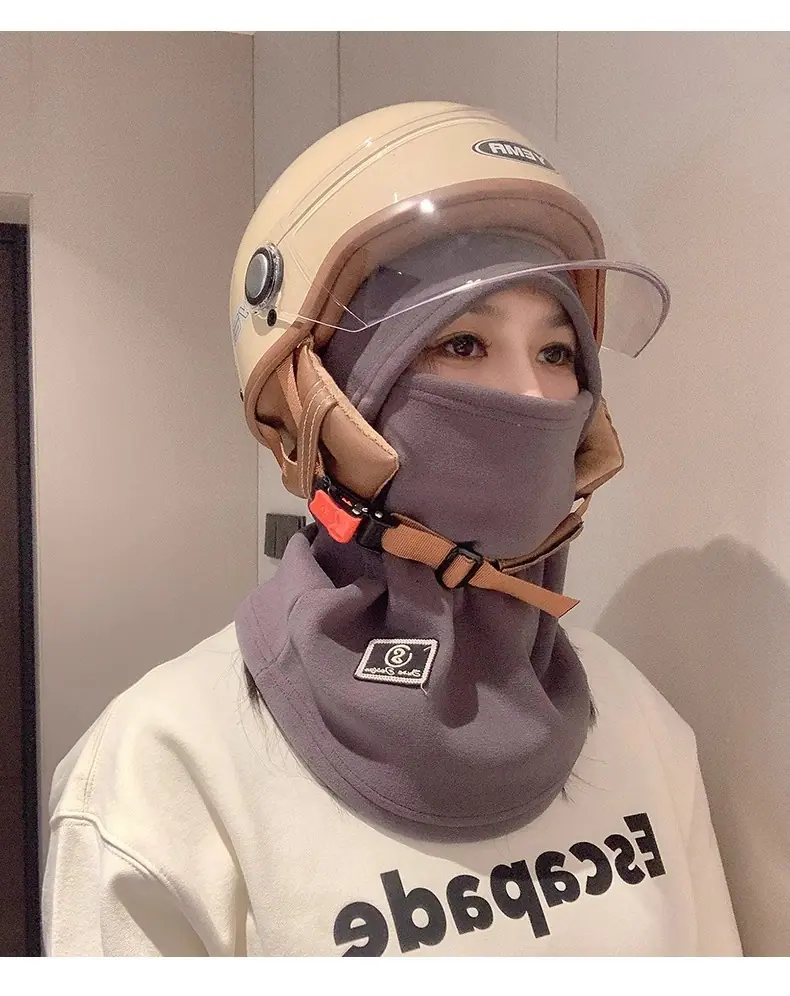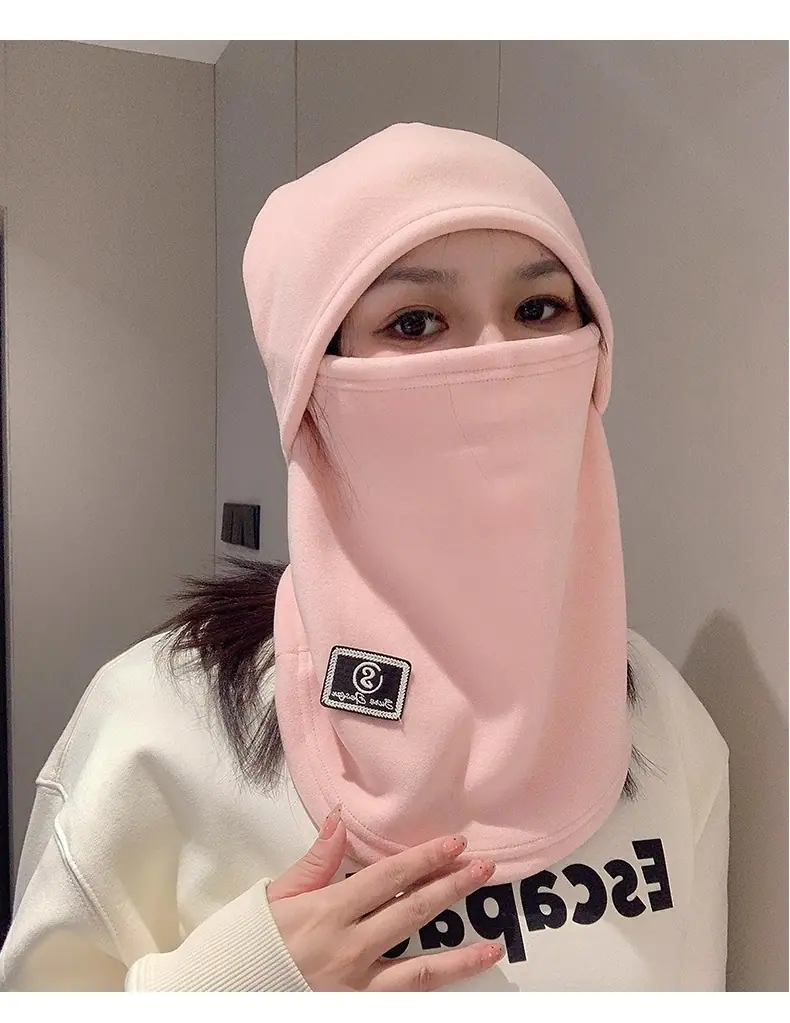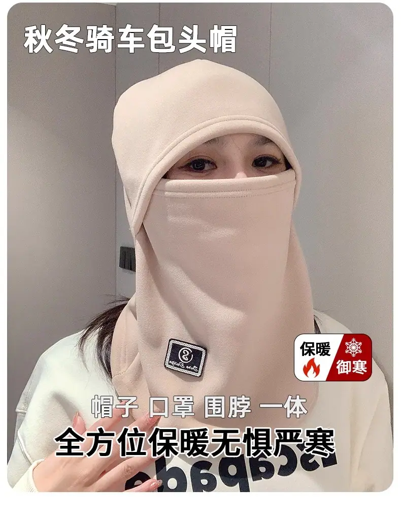 Invierno Cálido Gorro Ciclismo Vehículo Eléctrico A Prueba de Frío A Prueba de Viento Máscara Facial Protector de Cuello Forrado de Polar Bufanda Sombrero Integrado para Mujer Esquí