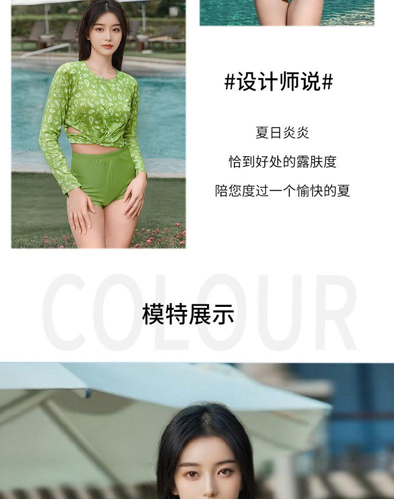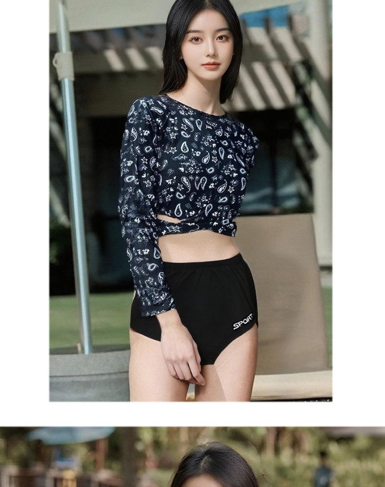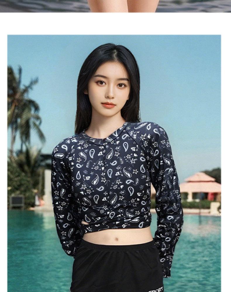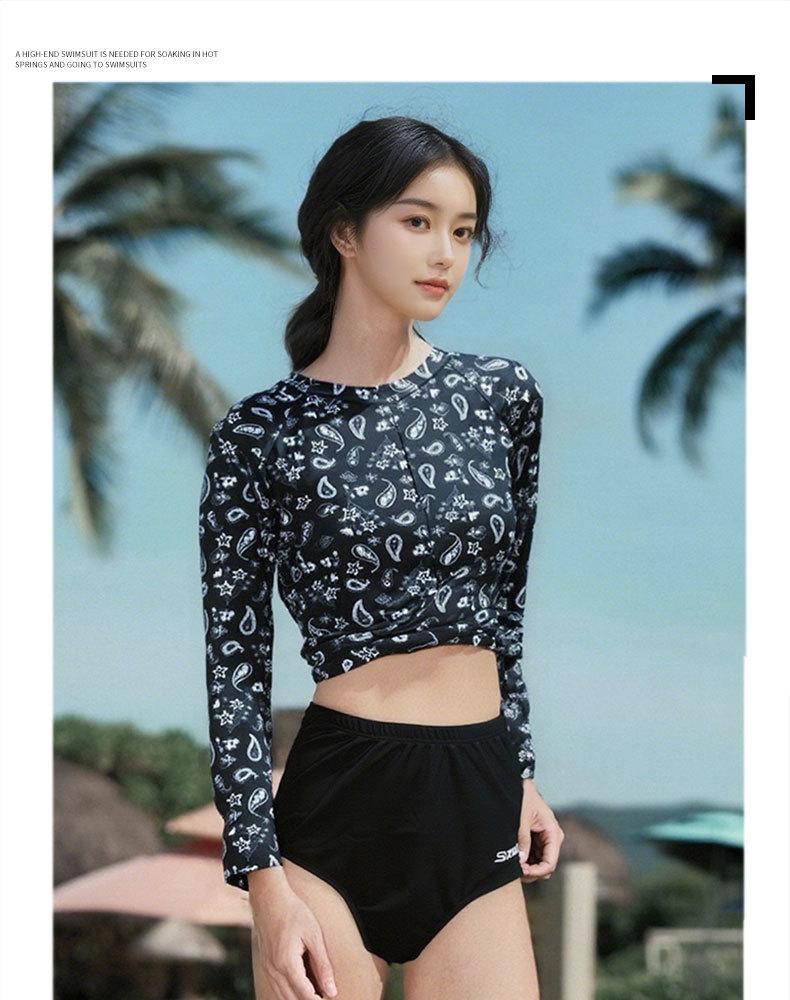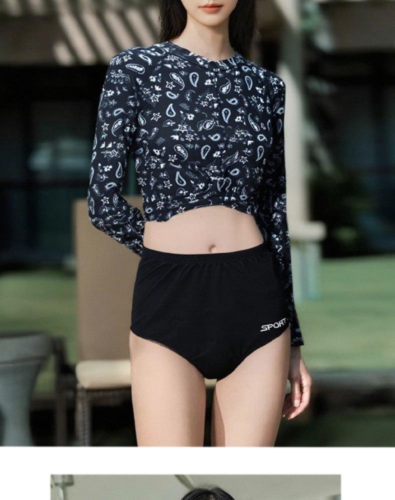 Compra Traje de Baño Conservador de Dos Piezas para Mujer 2025 Nuevo Manga Larga Protección Solar Estampado Adelgazante Deportivo Aguas Termales al por mayor en Joom.pro