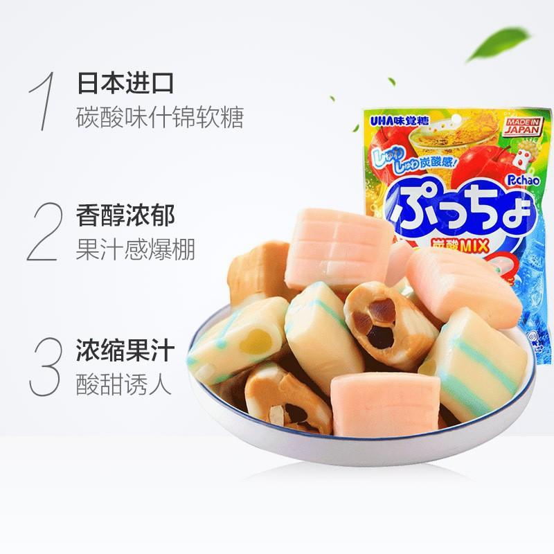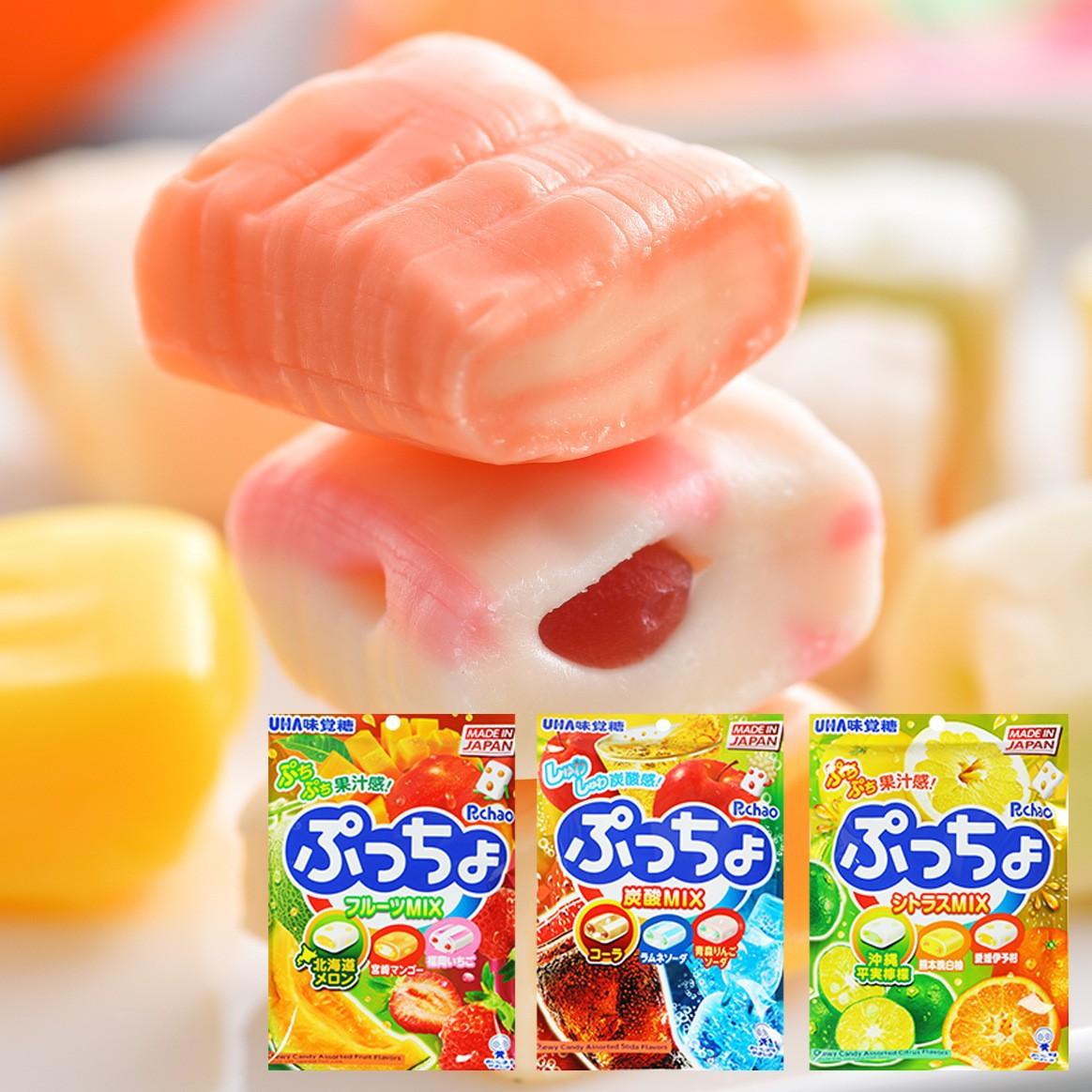 Uha Sabor Caramelo Importado de Japón Uha 3 Bolsas Puchao Carbonatado Jugo de Frutas Cítricas Surtido Caramelo Gominola Relleno