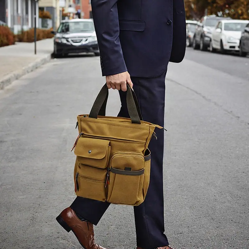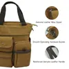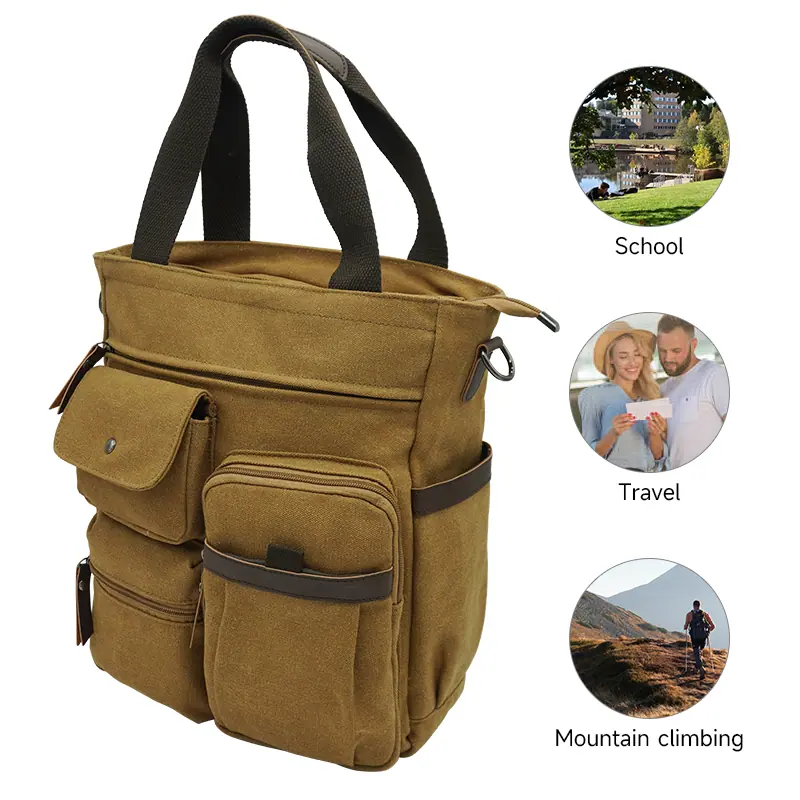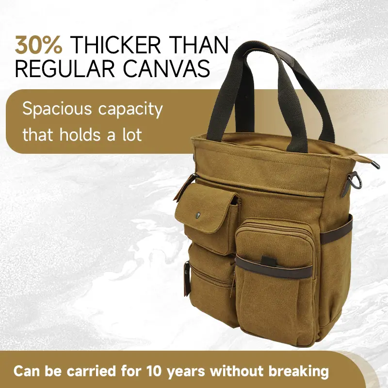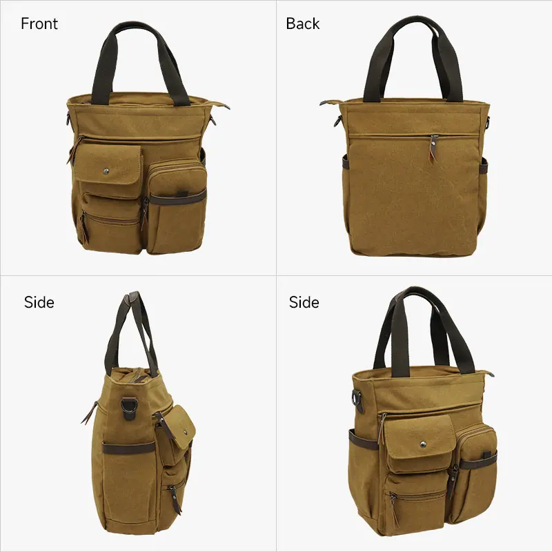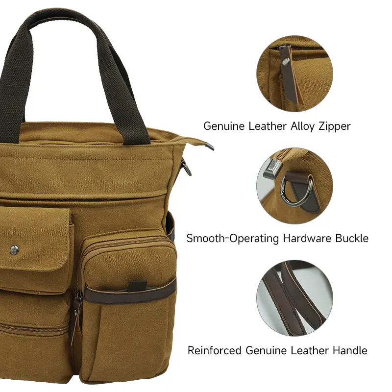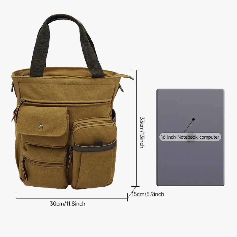 MATERIAL: Lona de Alta Calidad CIERRE: Cierre superior con cremallera DIMENSIONES: 14.96''(An) x 6.30''(An) x 11.42''(Al); asas dobles con caída de 7"; correa de hombro ajustable con caída de 35" a 58". BOLSILLOS: 1 Bolsillos principales generosos, 1 Bolsillos para tabletas(se adapta a laptops de hasta 14"), 1 bolsillo interior con cremallera. 1 Bolsillo exterior trasero con cremallera, 2 Bolsillos delanteros, 2 Bolsillos laterales. CARACTERÍSTICAS: Herrajes decorativos en tono dorado, Bolsillos con cremallera en el medio y en la parte trasera, lleva fácilmente tu teléfono móvil, billetera, cosméticos, IPAD, paraguas y otras cosas diarias.