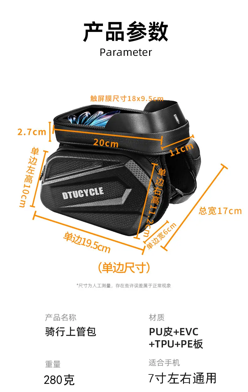 Equipo de Ciclismo Bolsa para Bicicleta Bicicleta de Montaña Bicicleta de Carretera Bolsa de Viga Delantera Carcasa Dura Impermeable Gran Capacidad Almacenamiento para Teléfono Móvil Bolsa Colgante