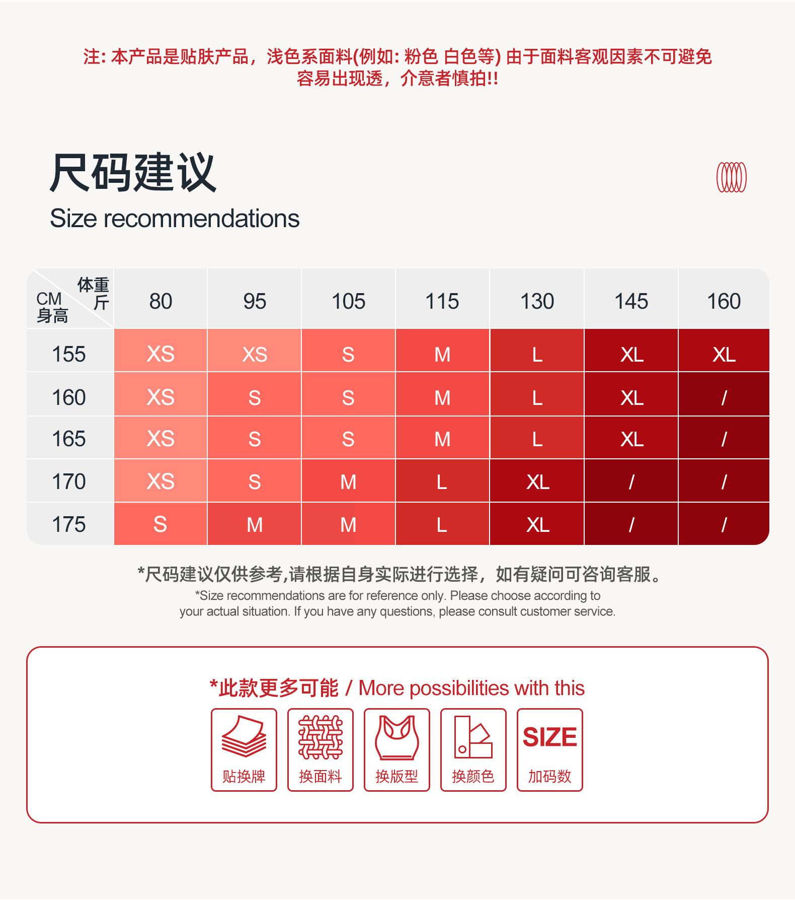 XS, S, M, L, XL