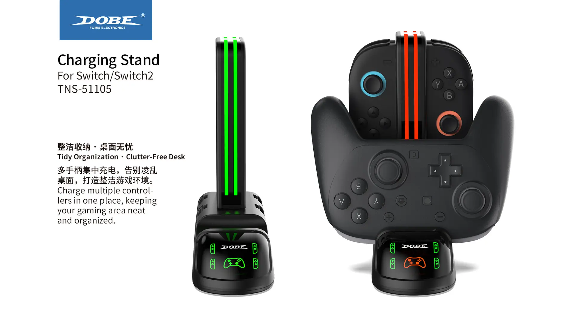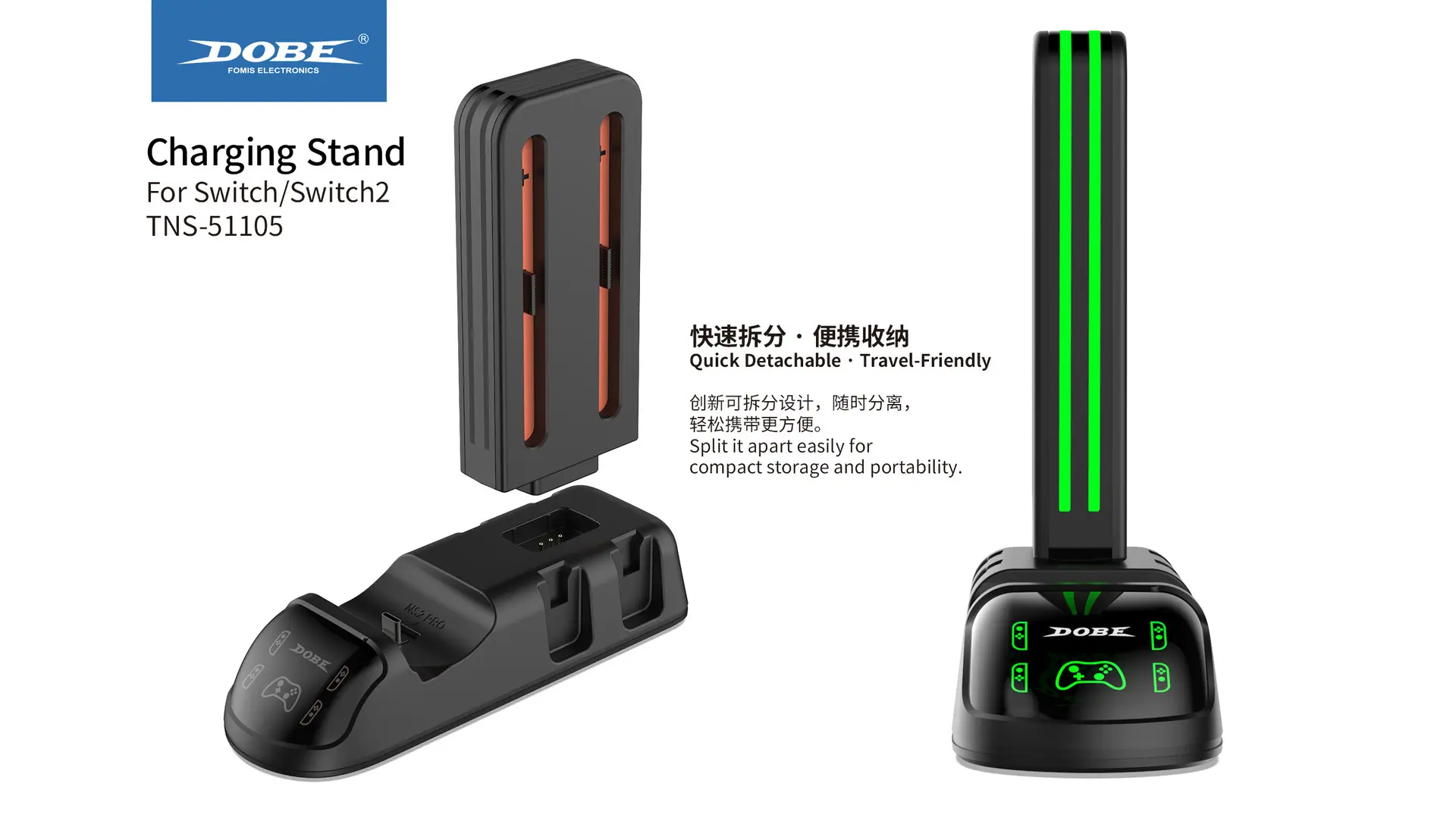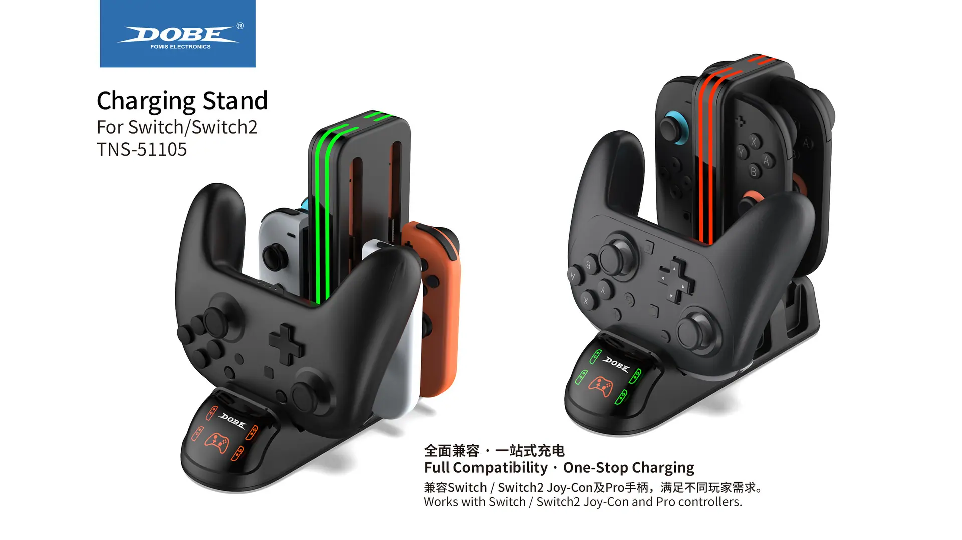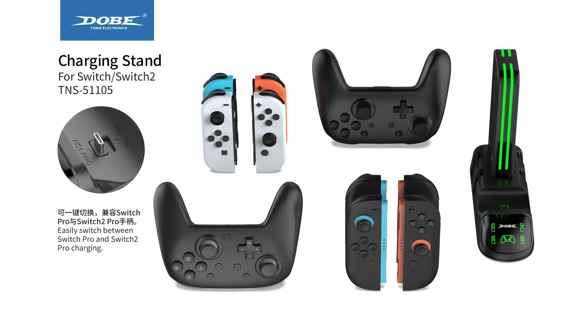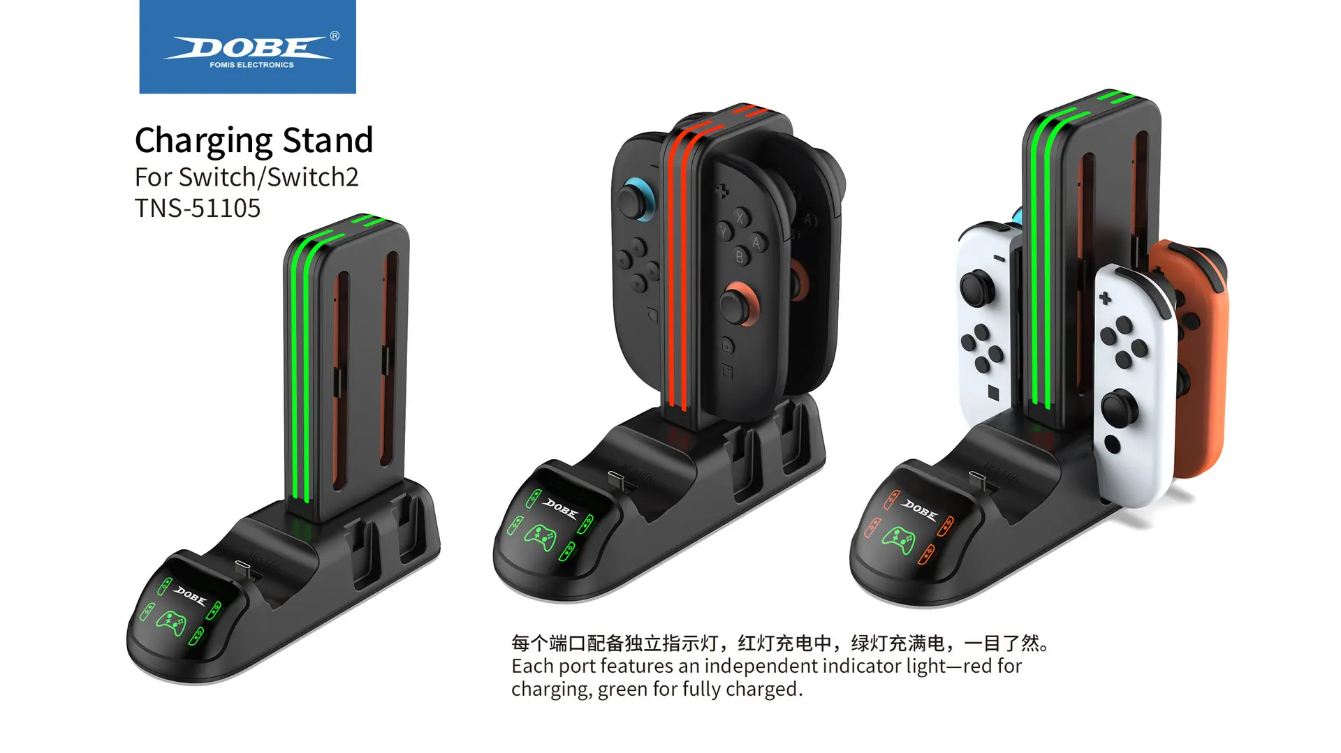 Este producto es una base de carga diseñada para los controles izquierdo y derecho N-S1/N-S2 y los controles N-S 1 Pro/N-S 2 Pro. La carga es más estable, y colocar y quitar los controles es más conveniente. El frente de la base de carga está equipado con luces indicadoras independientes para mostrar instantáneamente el estado de carga de cada control, haciéndolo claro de un vistazo. La apariencia general es simple y elegante, no solo altamente práctica sino que también añade conveniencia y estética a tu experiencia de juego, convirtiéndola en un accesorio indispensable y considerado para los jugadores de N-S.