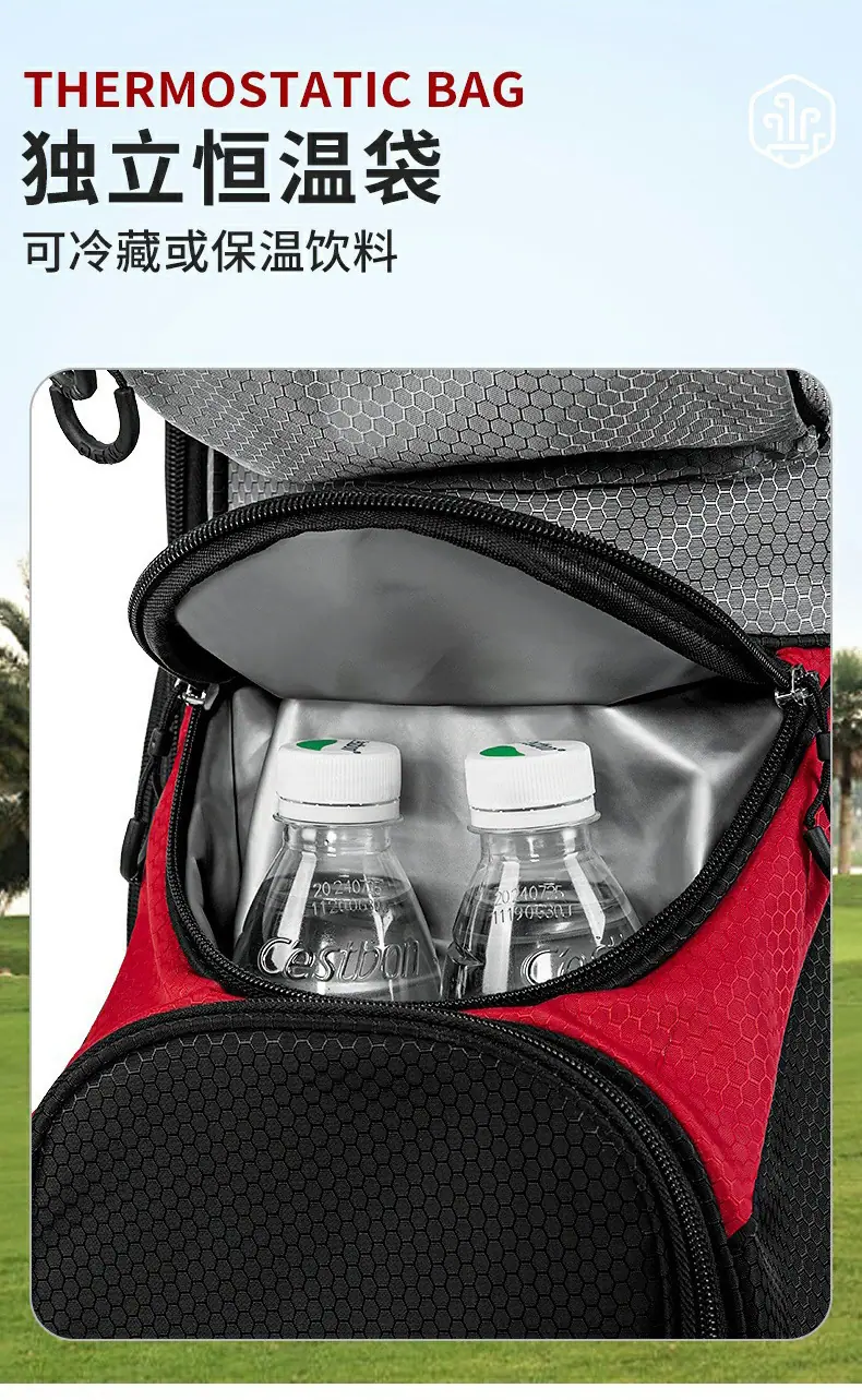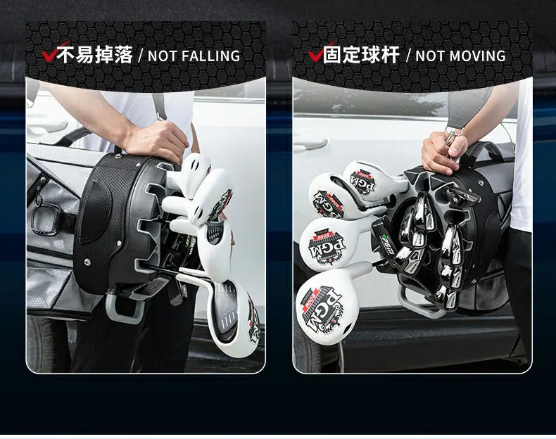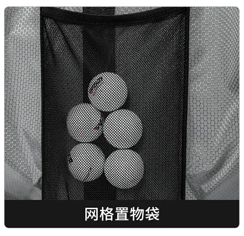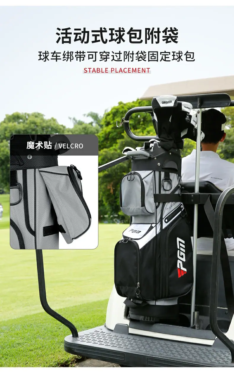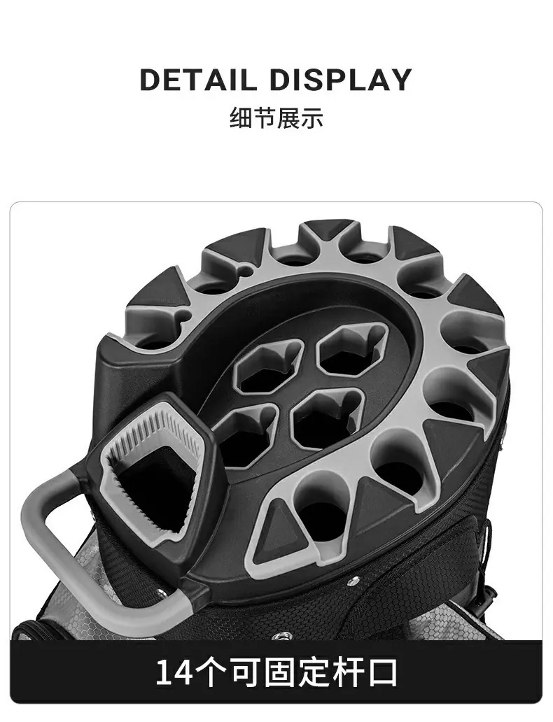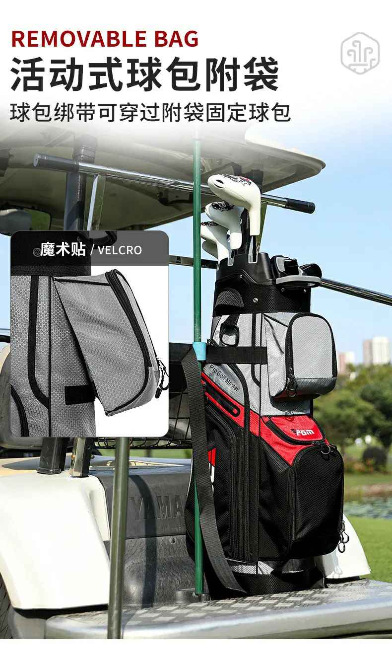| 3 | Bolsa de golf móvil con bolsa adjunta, las correas del carrito de golf se pueden pasar a través de la bolsa adjunta para fijar la bolsa de golf | |||