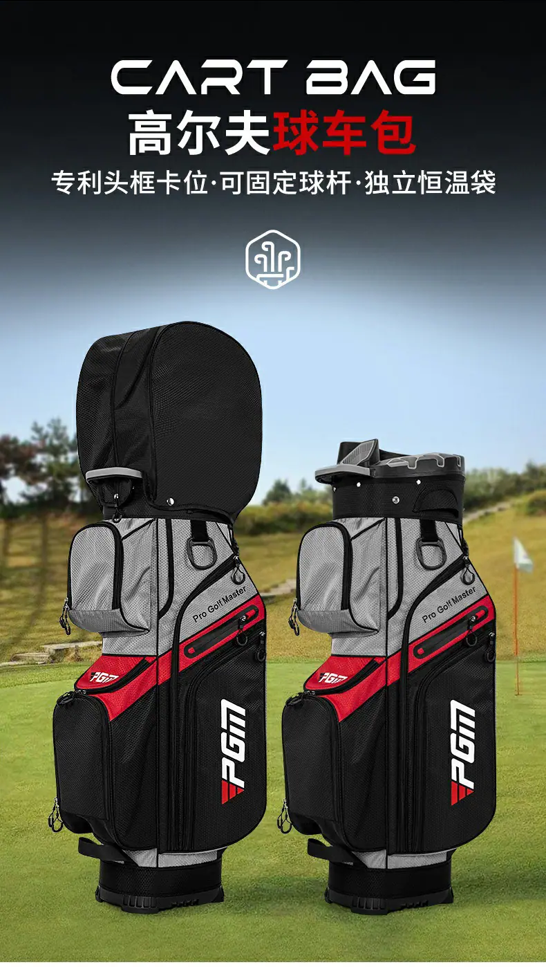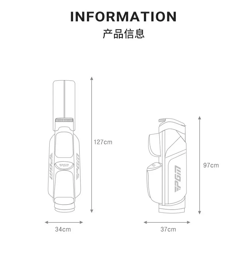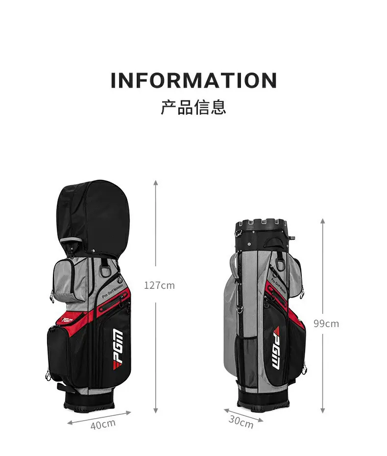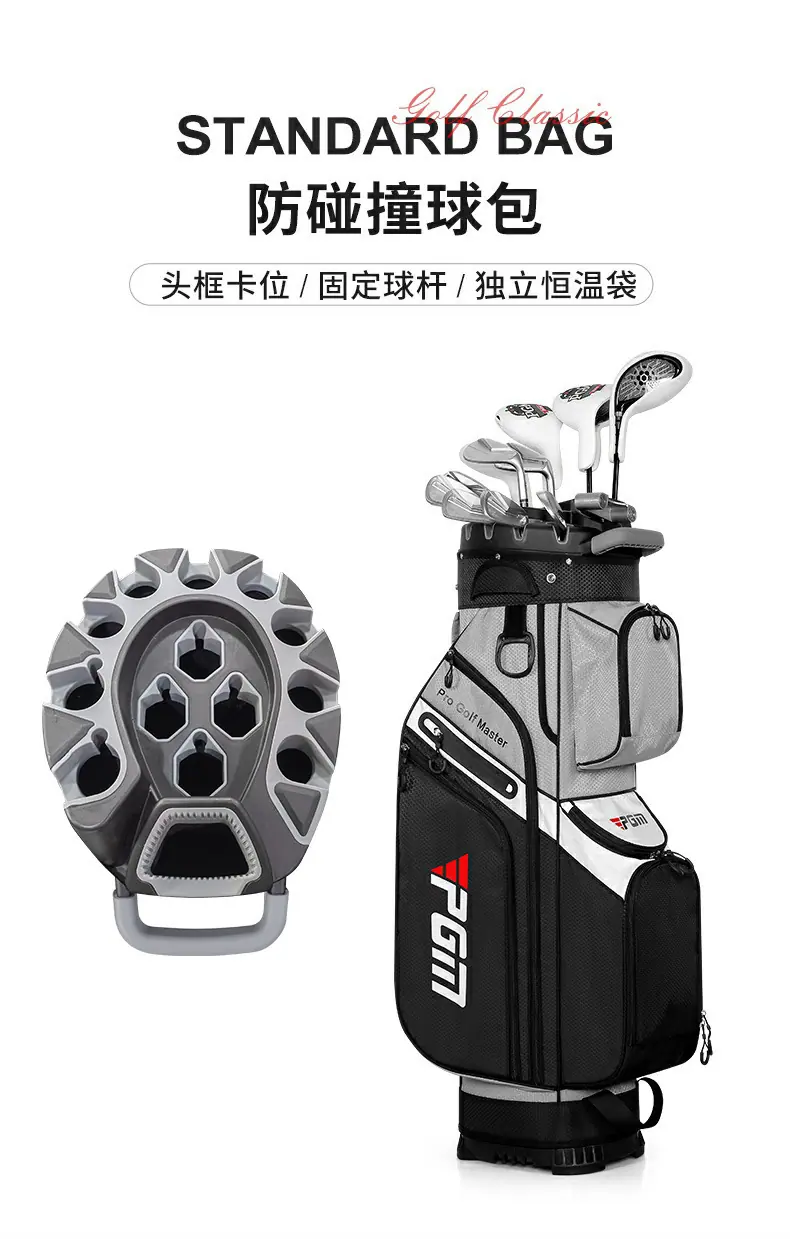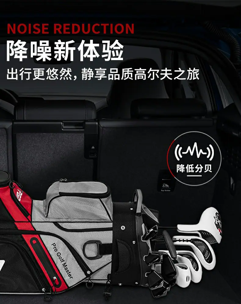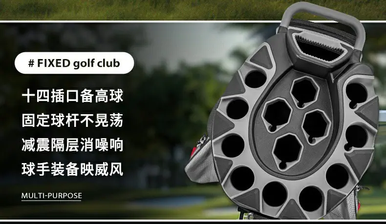 | 3 | Bolsa de golf móvil con bolsa adjunta, las correas del carrito de golf se pueden pasar a través de la bolsa adjunta para fijar la bolsa de golf | |||