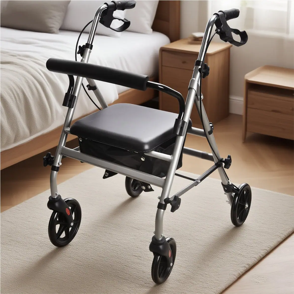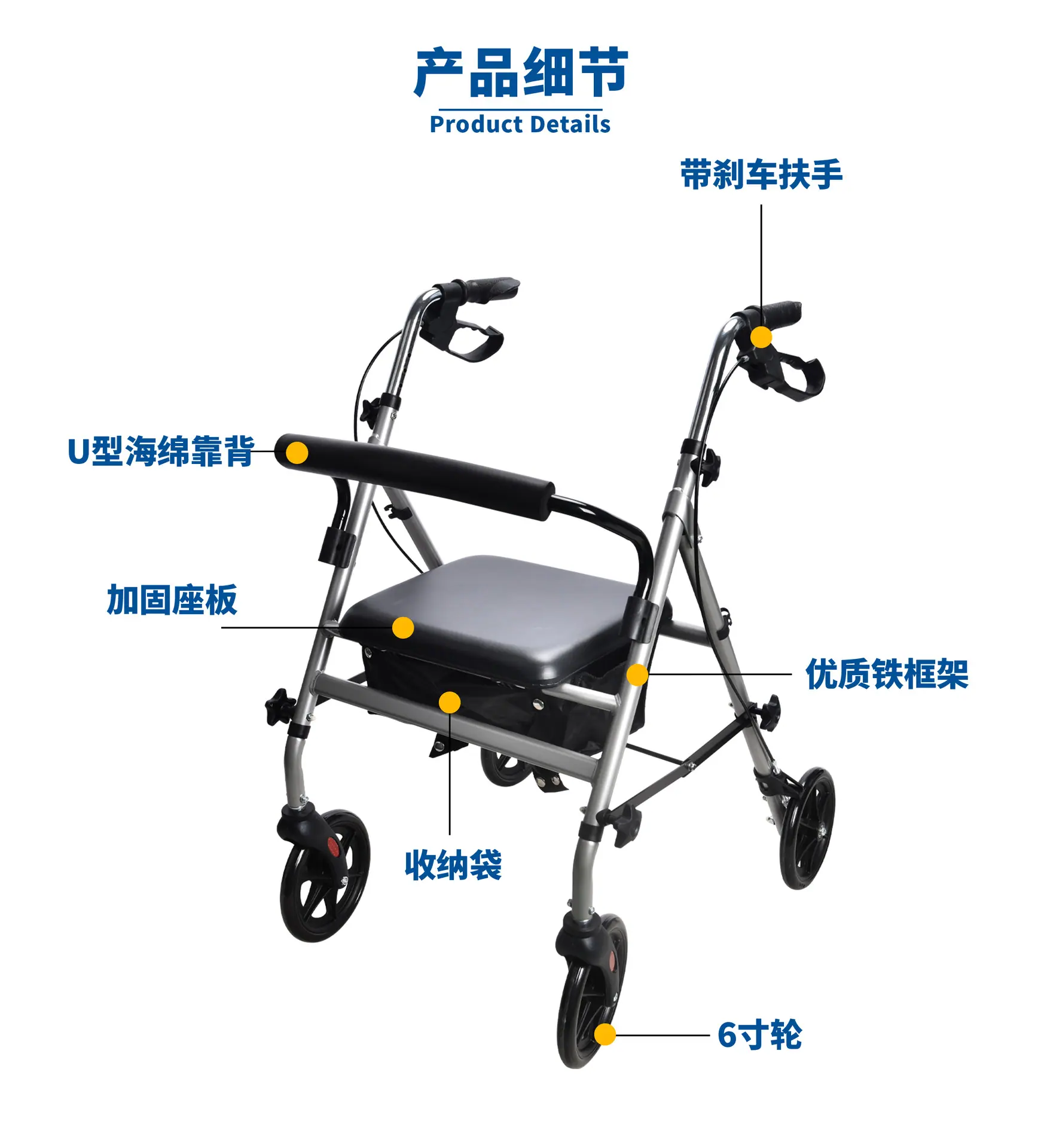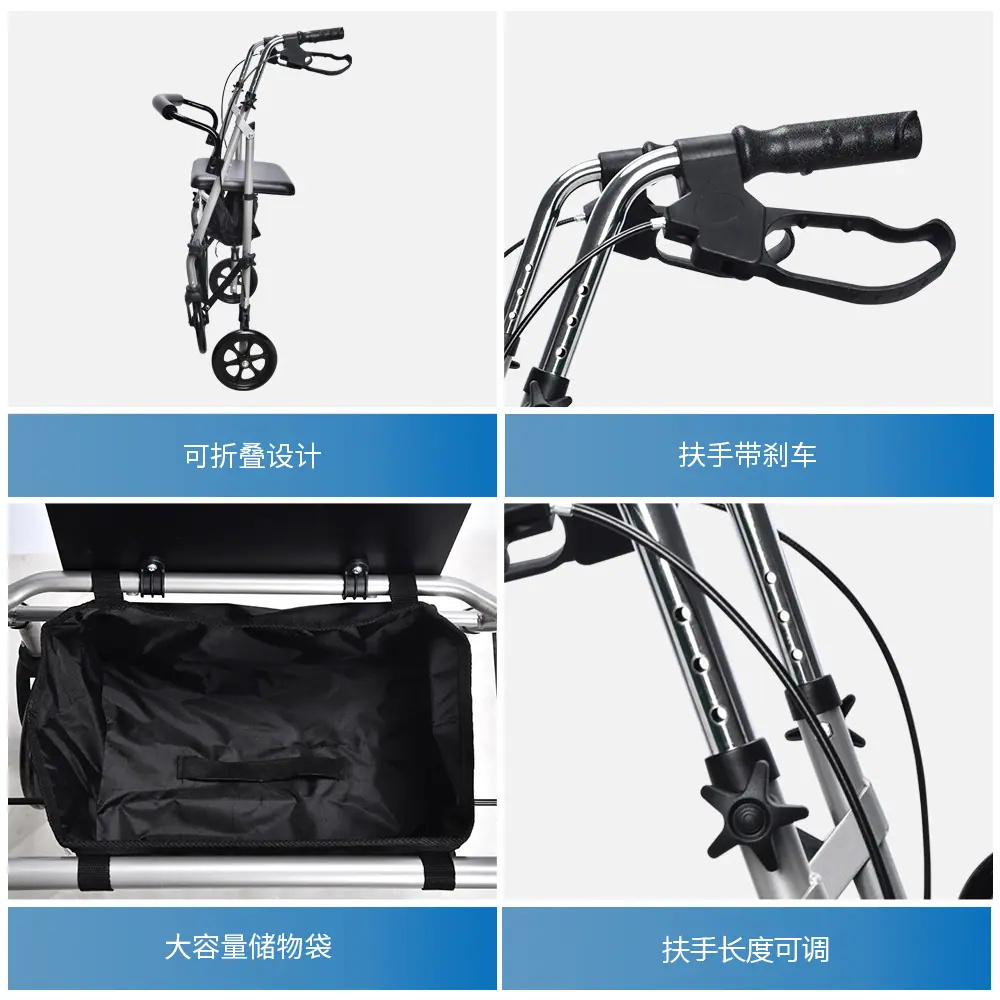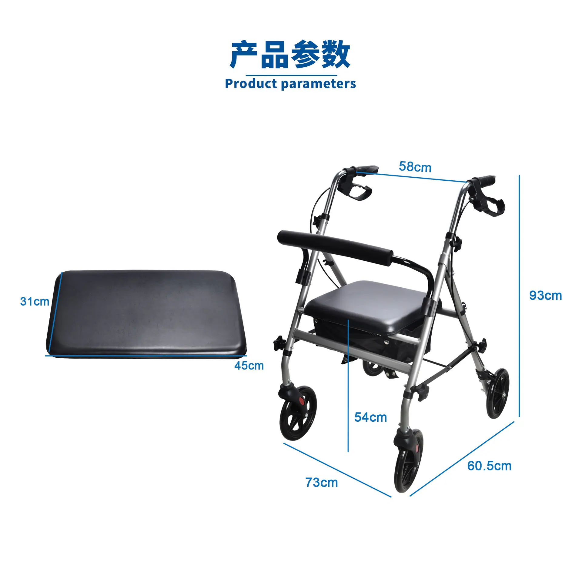 Andador carrito de compras para ancianos ayuda para caminar para discapacitados acero al carbono alto rehabilitación plegable con ruedas asiento andador
