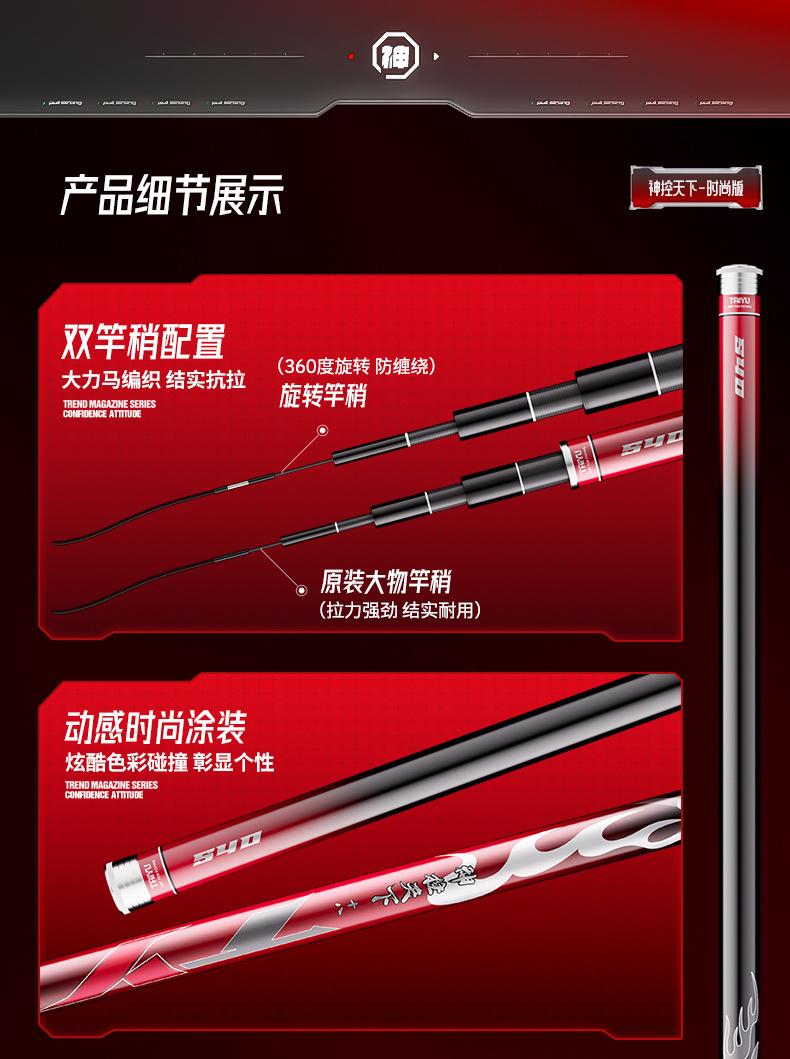 Recibirá; Compre cualquier caña de pescar en la tienda con una pequeña diferencia de precio para un cambio; Derechos, disfrute de una experiencia de pesca completamente nueva.